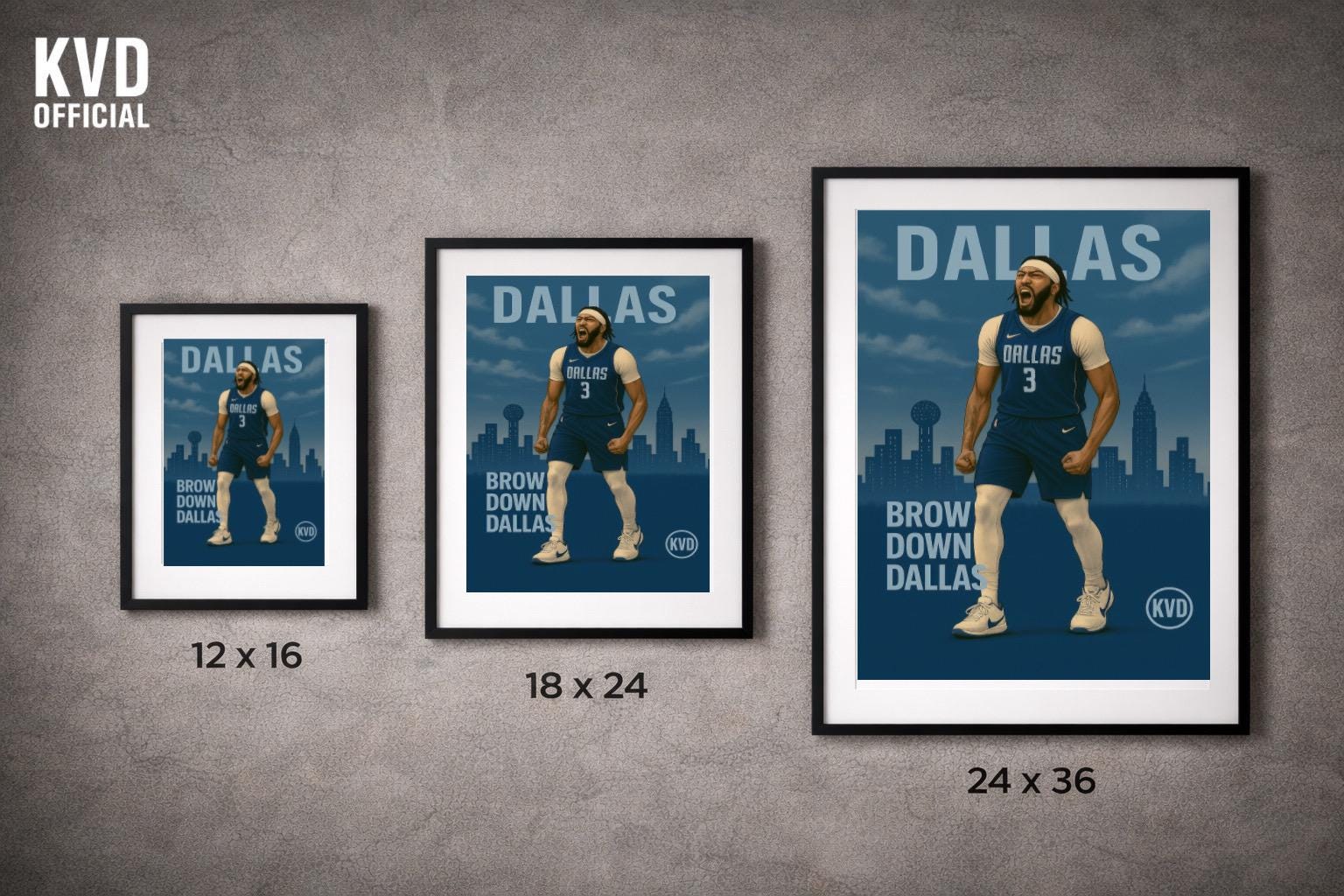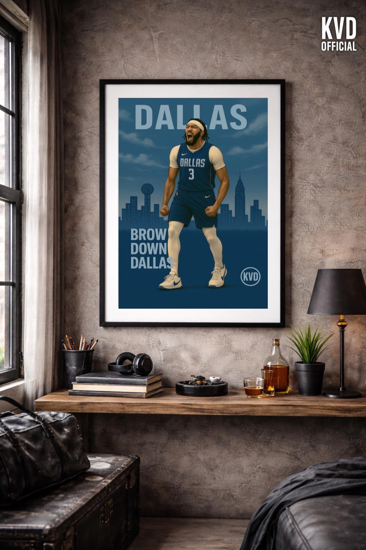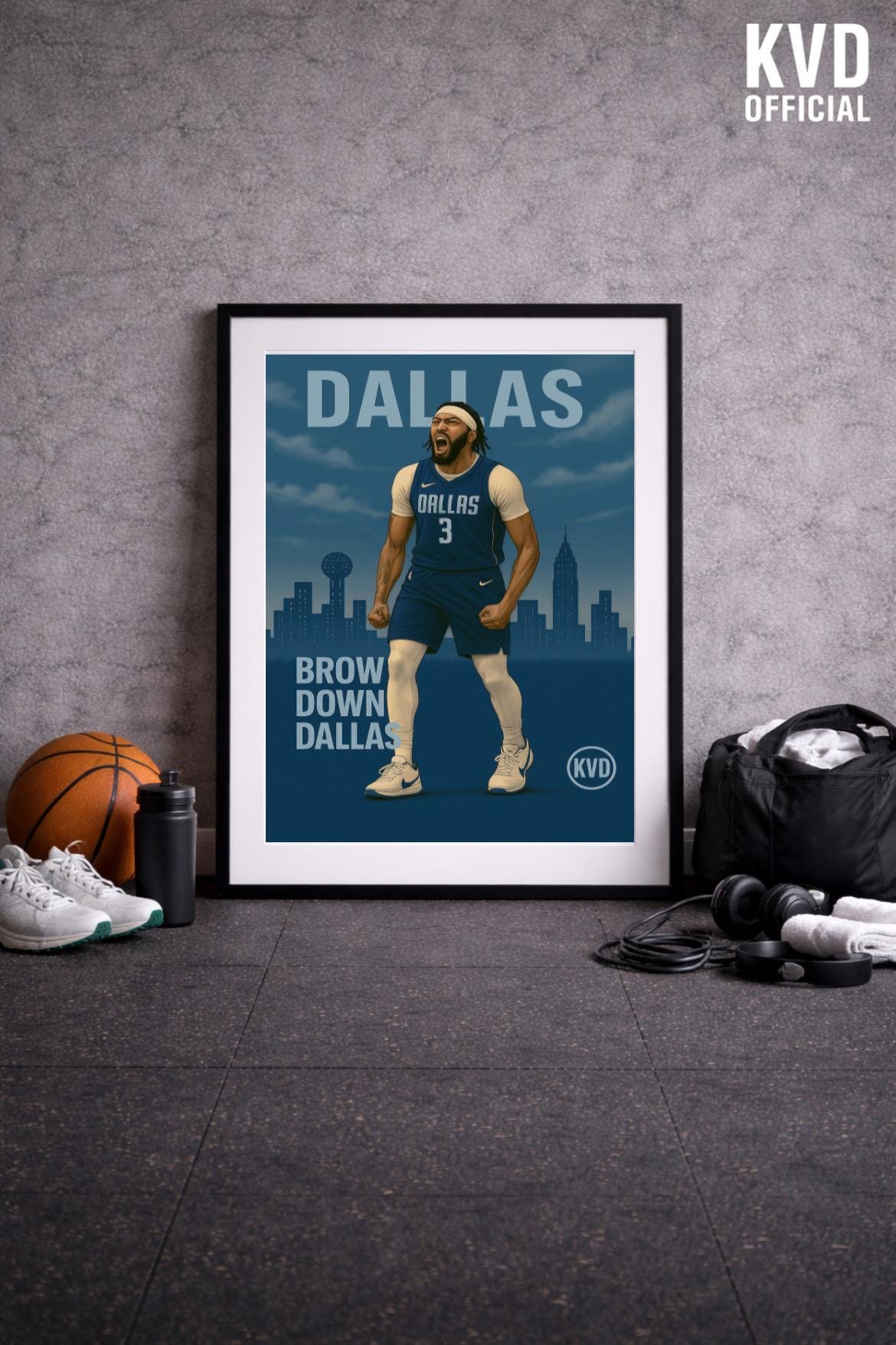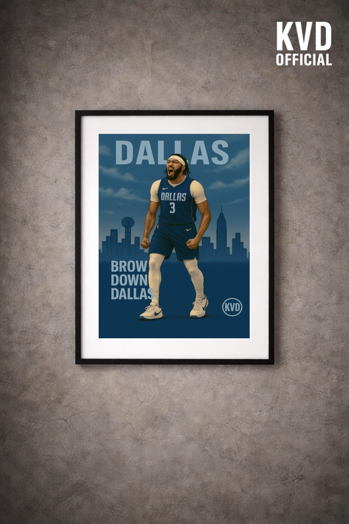 Bring your walls to life with this bold, illustrated poster featuring a basketball icon towering above the Dallas skyline. Designed with illustrated realism and cool-toned grit, this premium print captures presence, dominance, and the ice-cold energy of the Lone Star court.