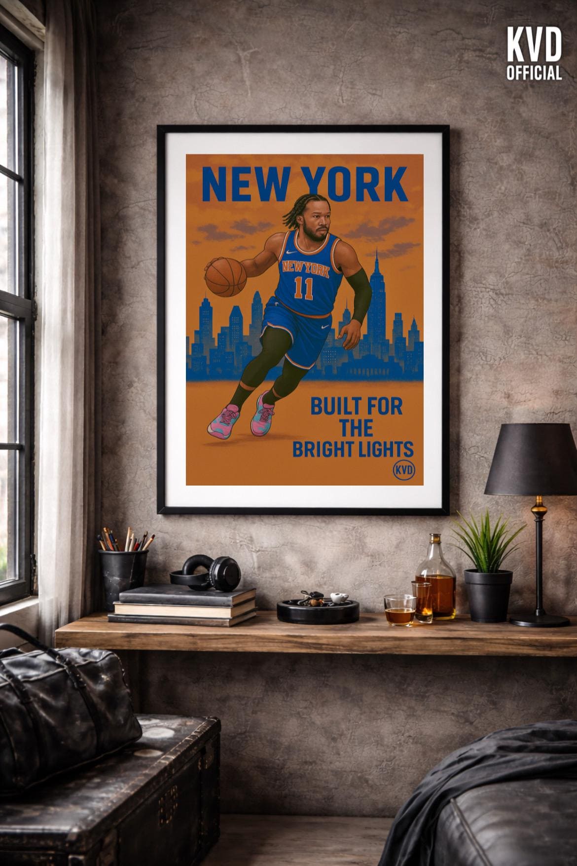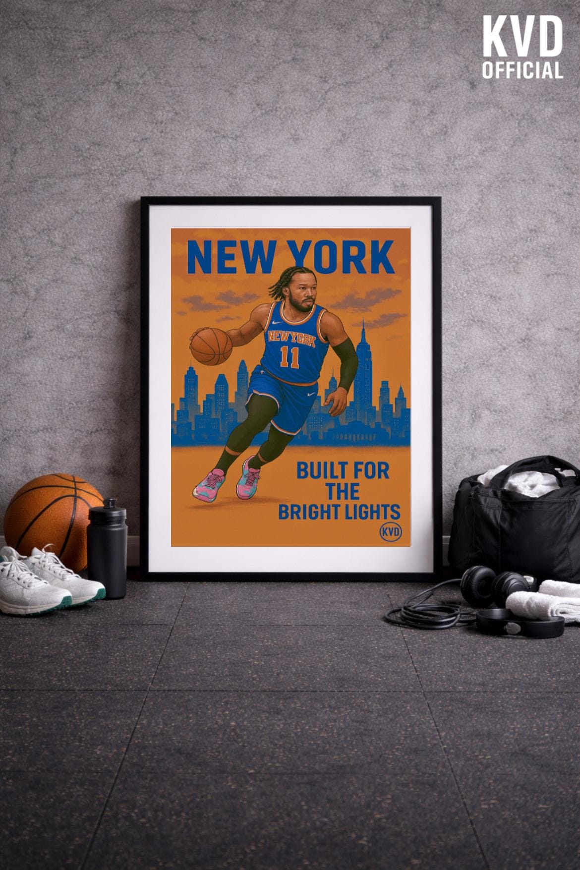 Bring your walls to life with this bold, illustrated poster featuring a poised, full-body pose above the New York skyline. Designed with illustrated realism and big-stage energy, this premium print captures the grit, calm, and confidence of a true floor general in the city that never sleeps.
