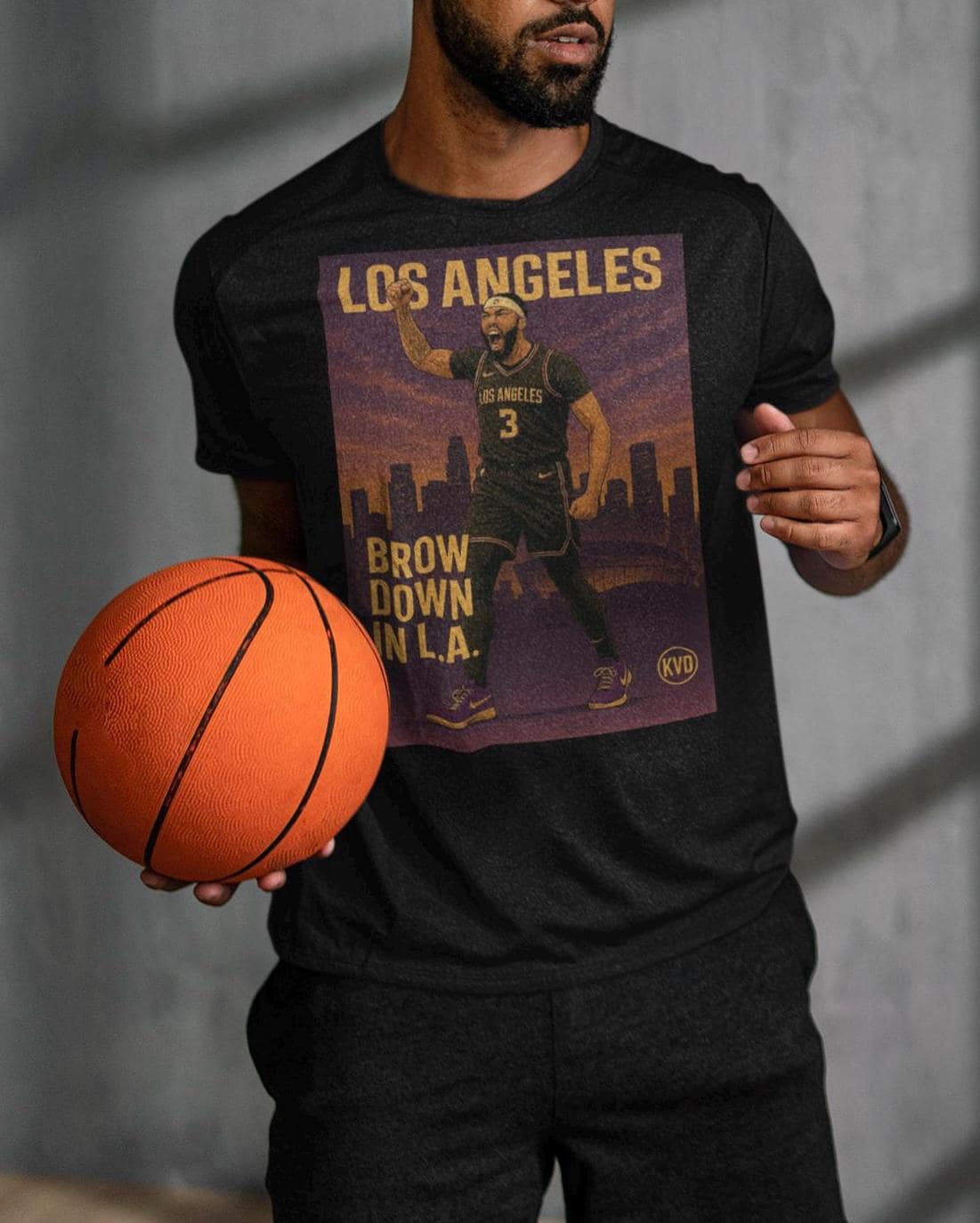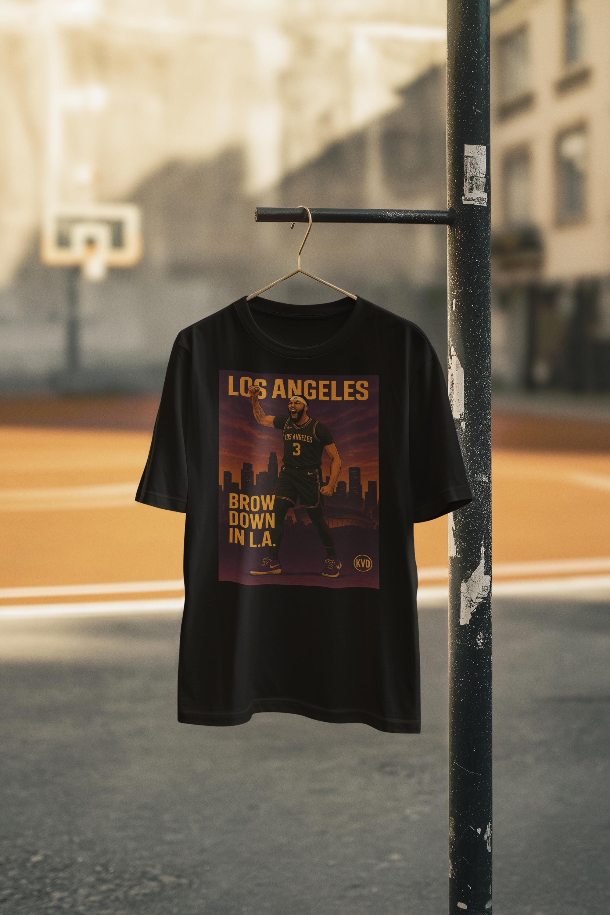 LAL – Los Angeles Basketball Graphic Tee – “Brow Down in LA” – Pro Hoops Streetwear T-Shirt • Urban Graphic Art • Sports Fan Gift