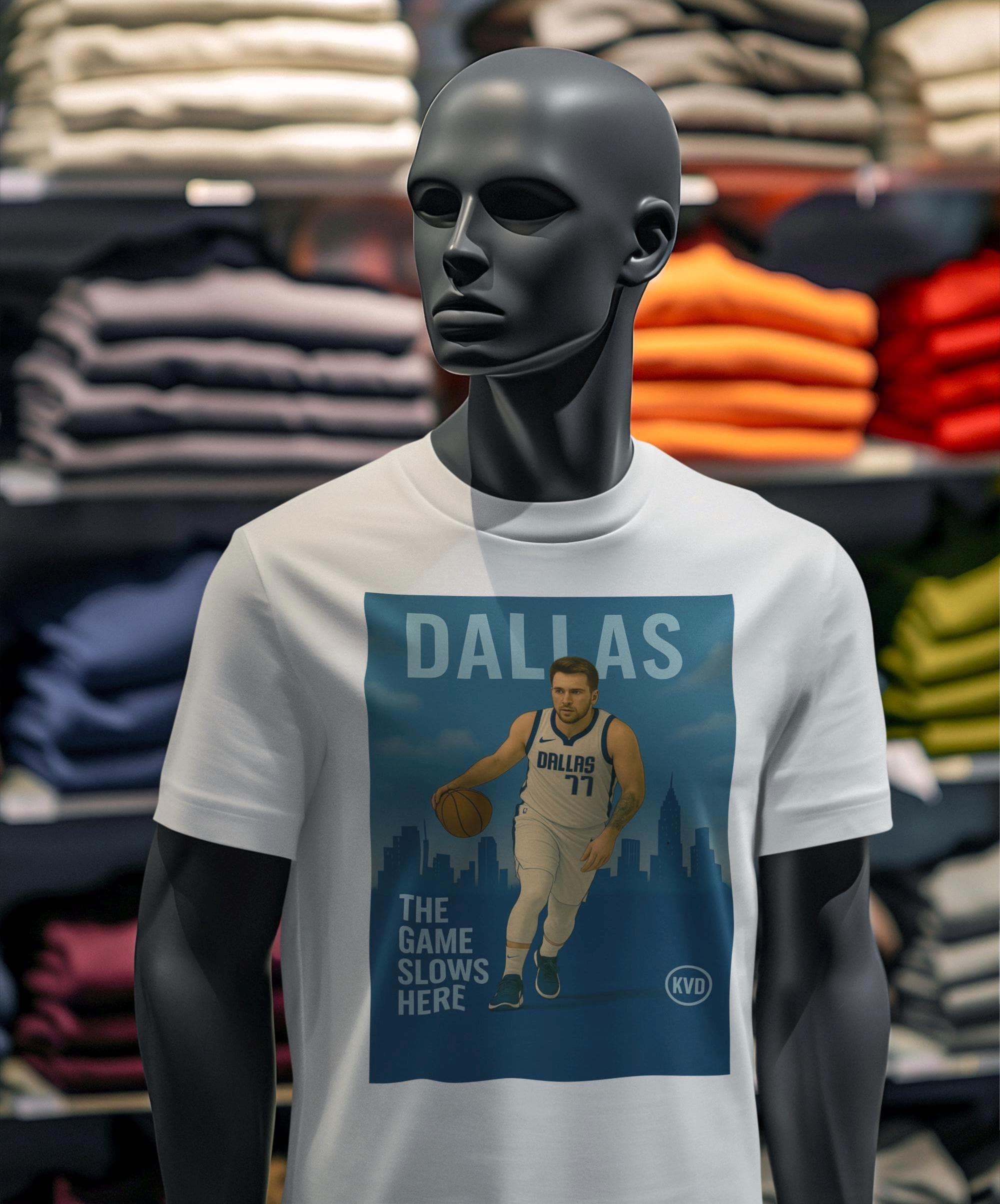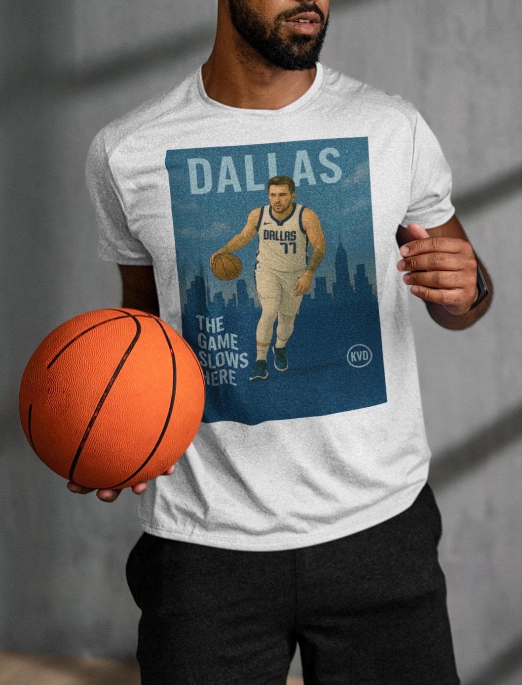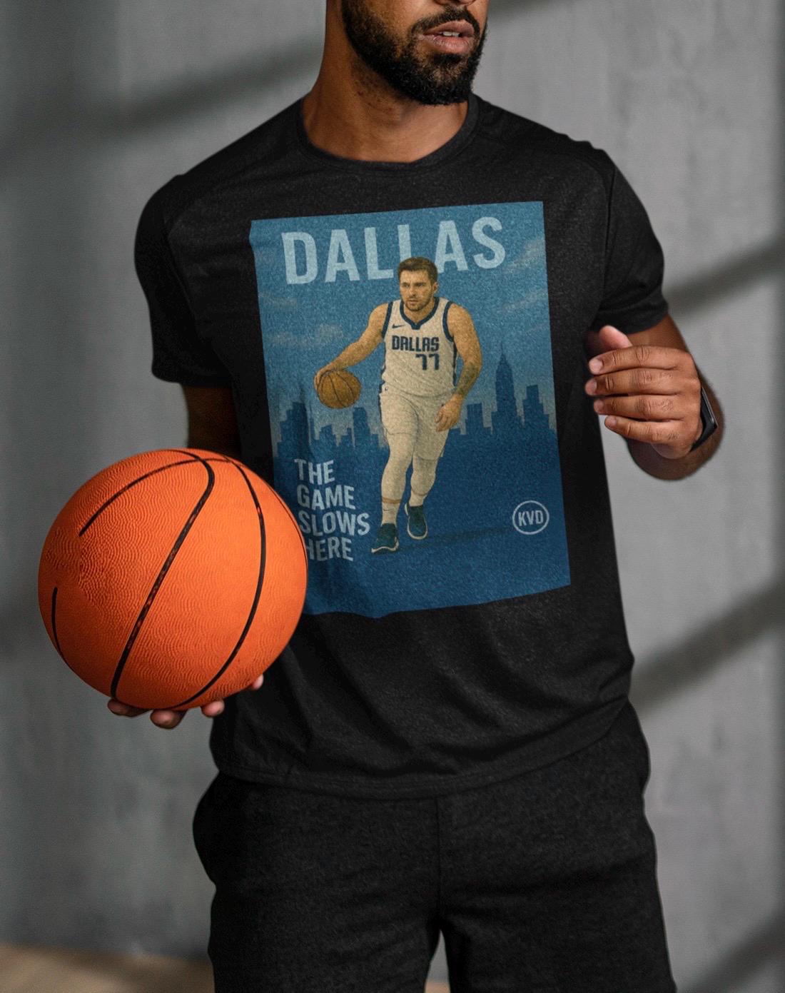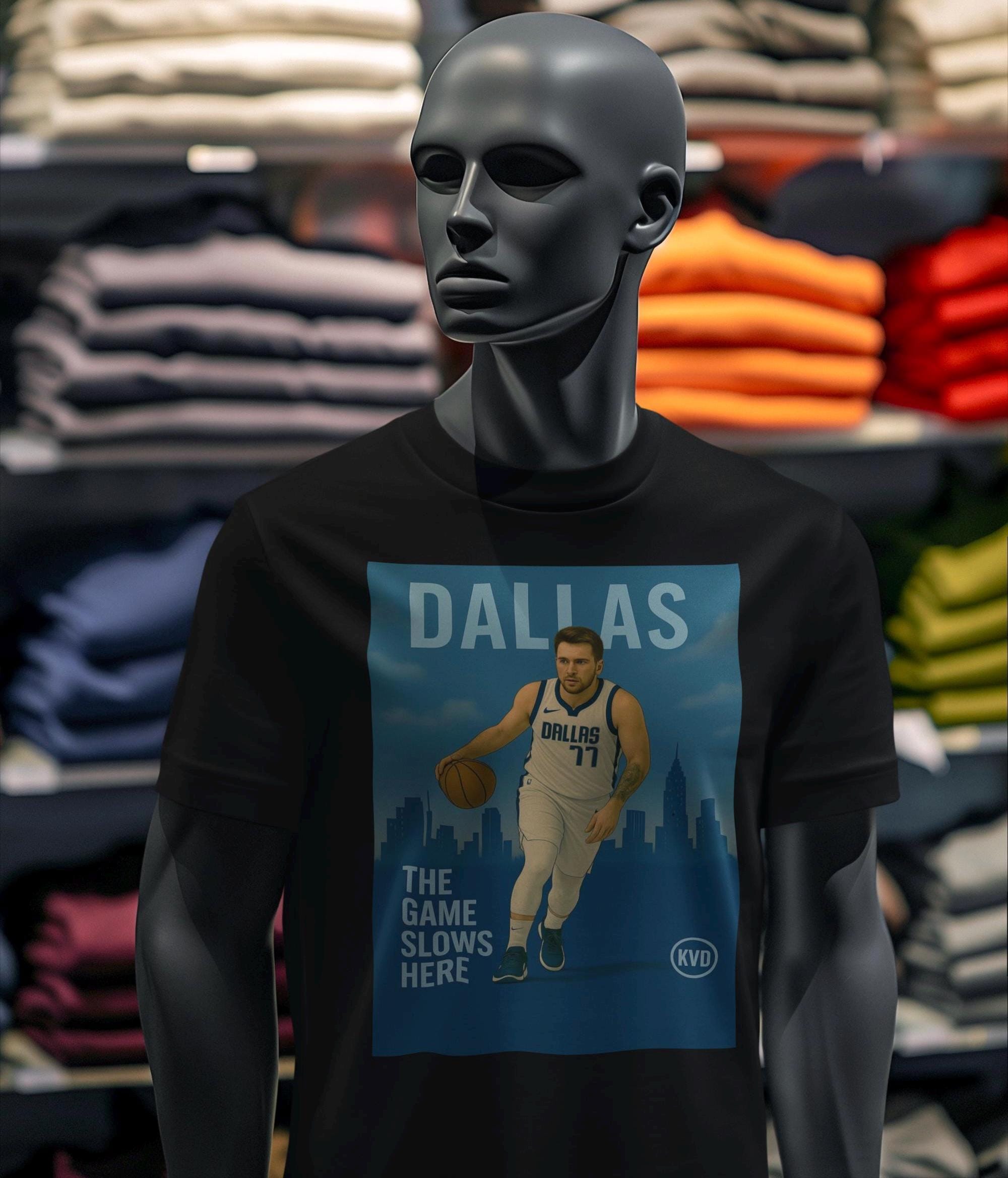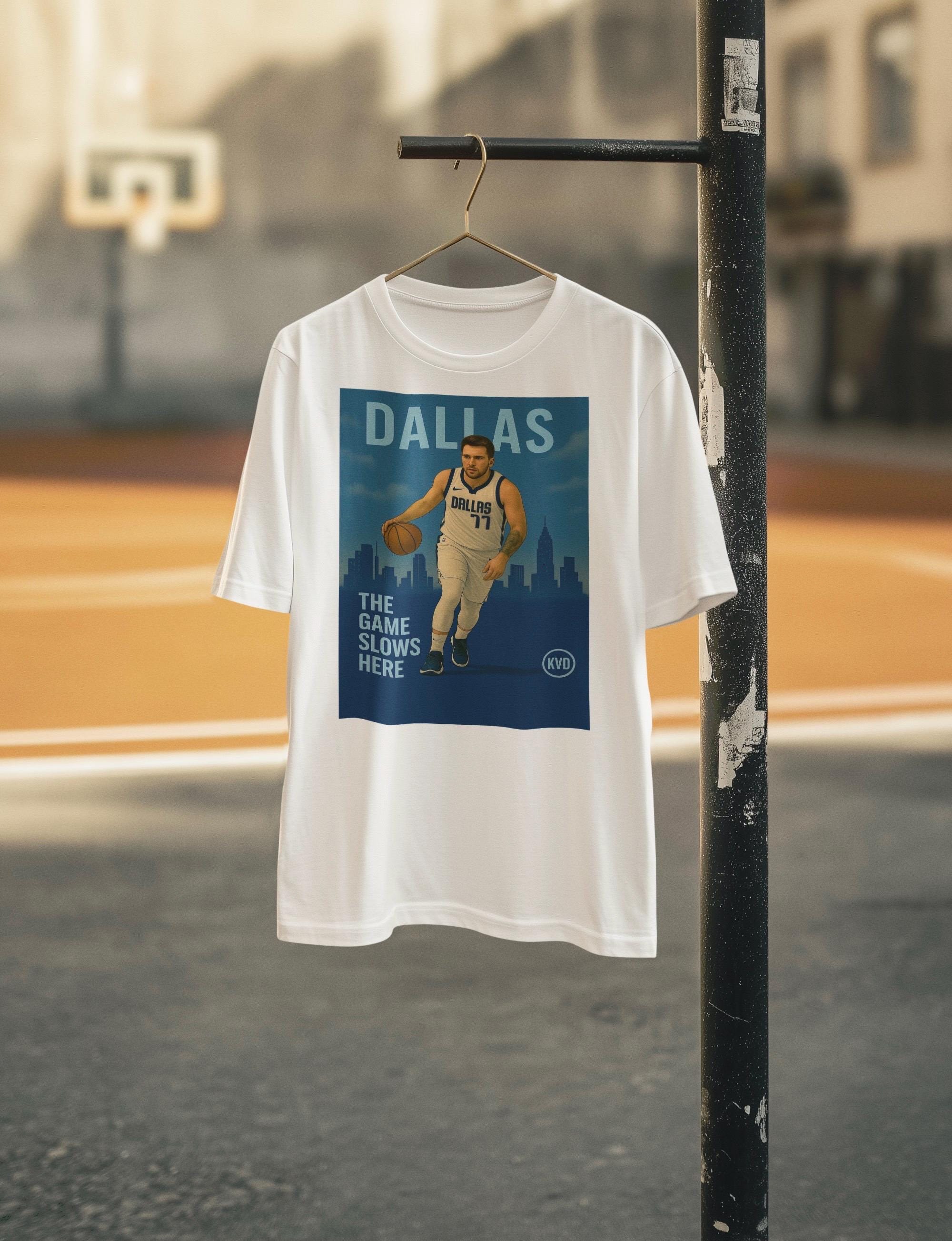 DAL – Dallas Basketball Graphic Tee – “The Game Slows Here” – Pro Hoops Streetwear T-Shirt • Urban Graphic Art • Sports Fan Gift