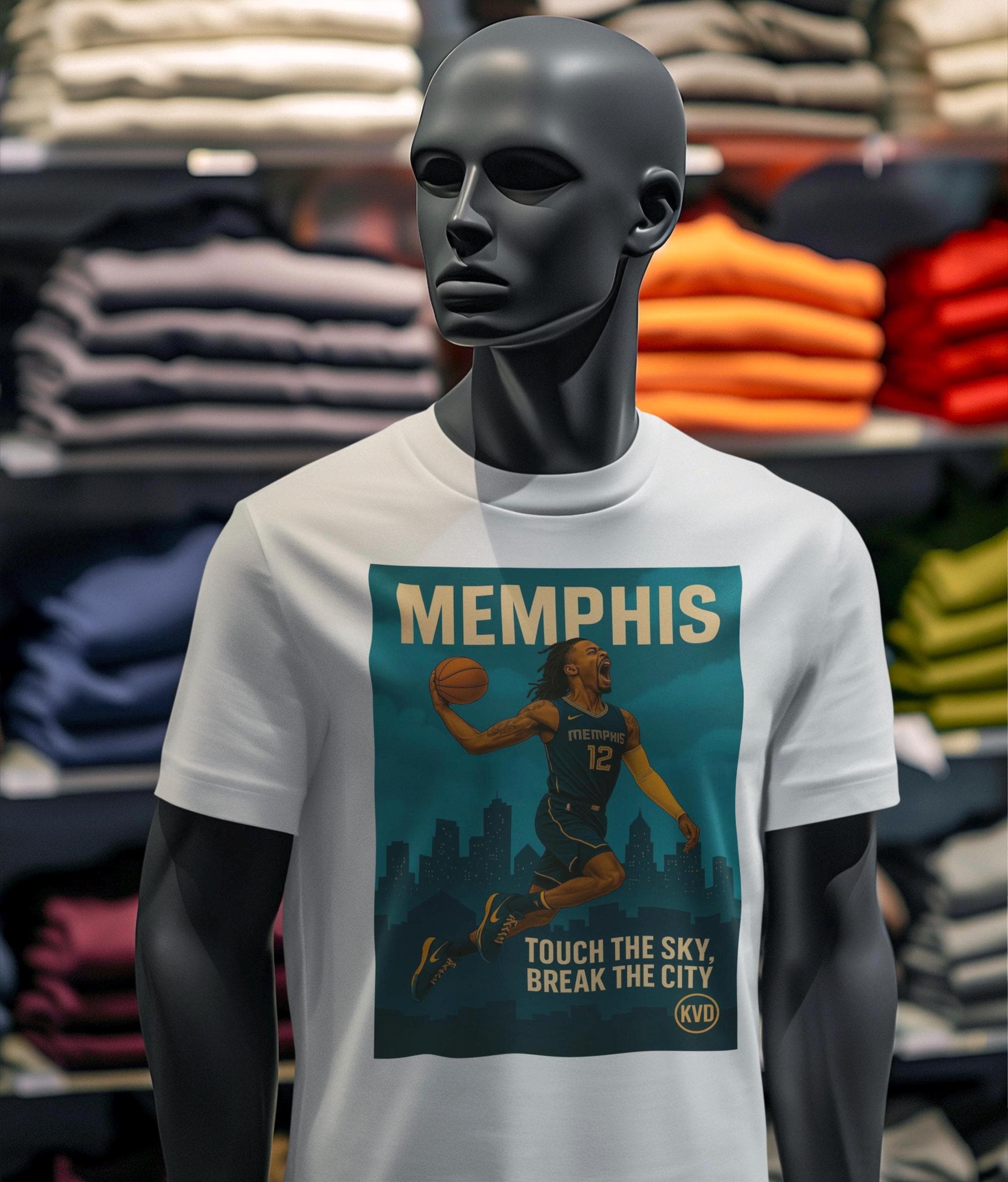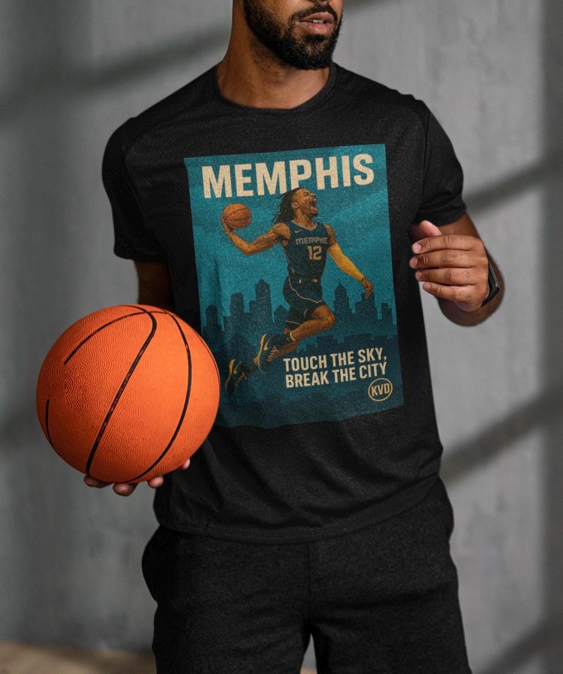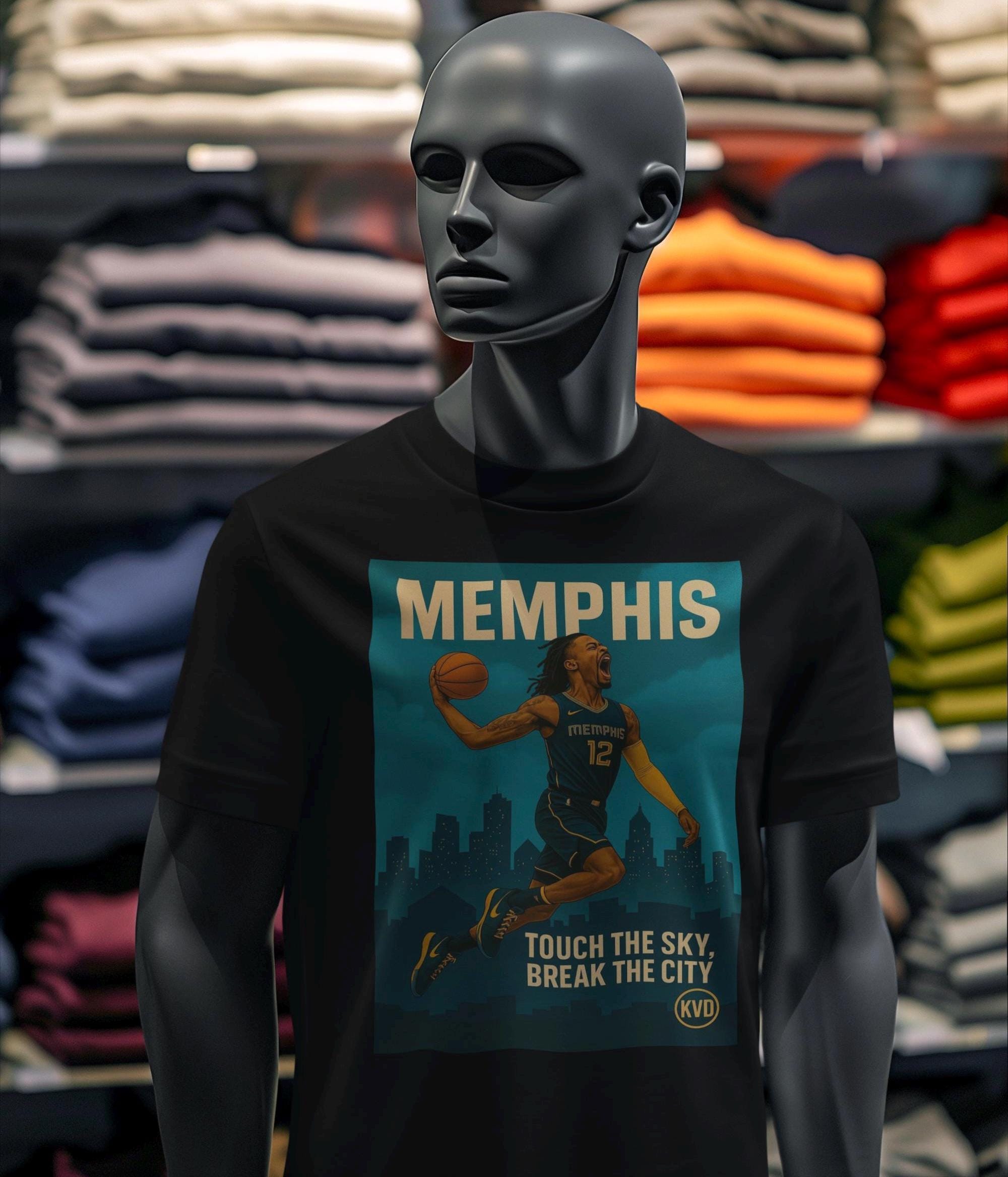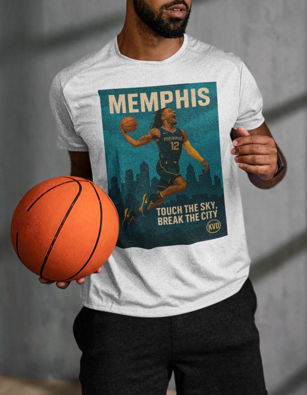 Details: 💥 Slogan: TOUCH THE SKY, BREAK THE CITY 🏙️ City: Memphis (MEM) 👕 T-shirt Colors: White or Black 📏 Sizes: S–2XL 🎨 Style: Illustrated skyline, poster-style realism 🎨 Artwork: Original by KVD