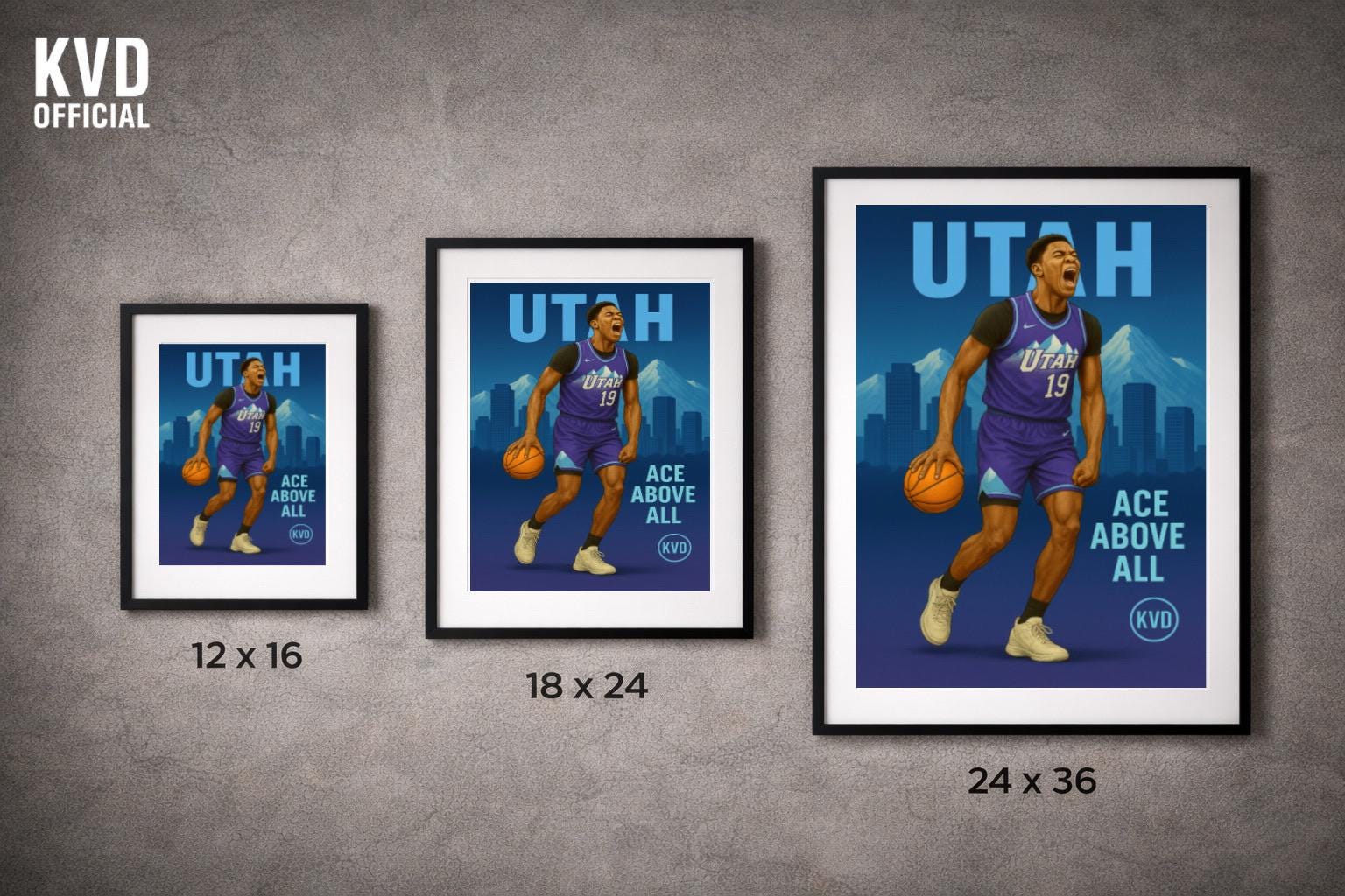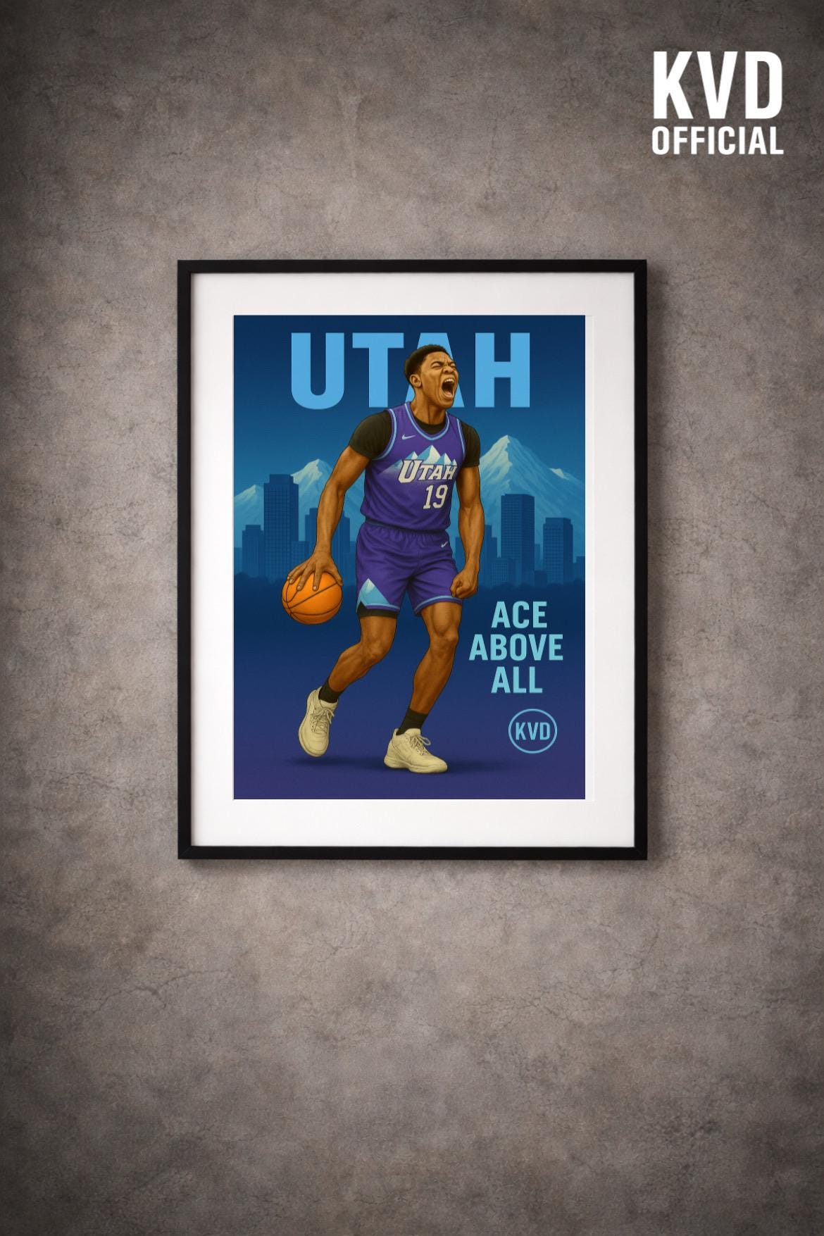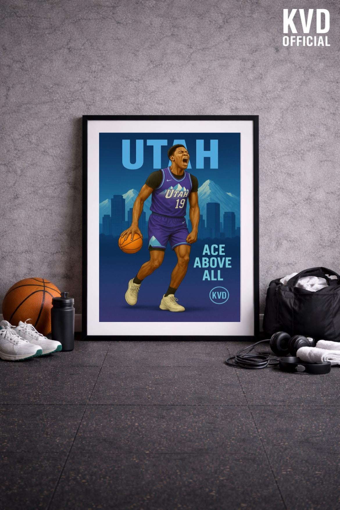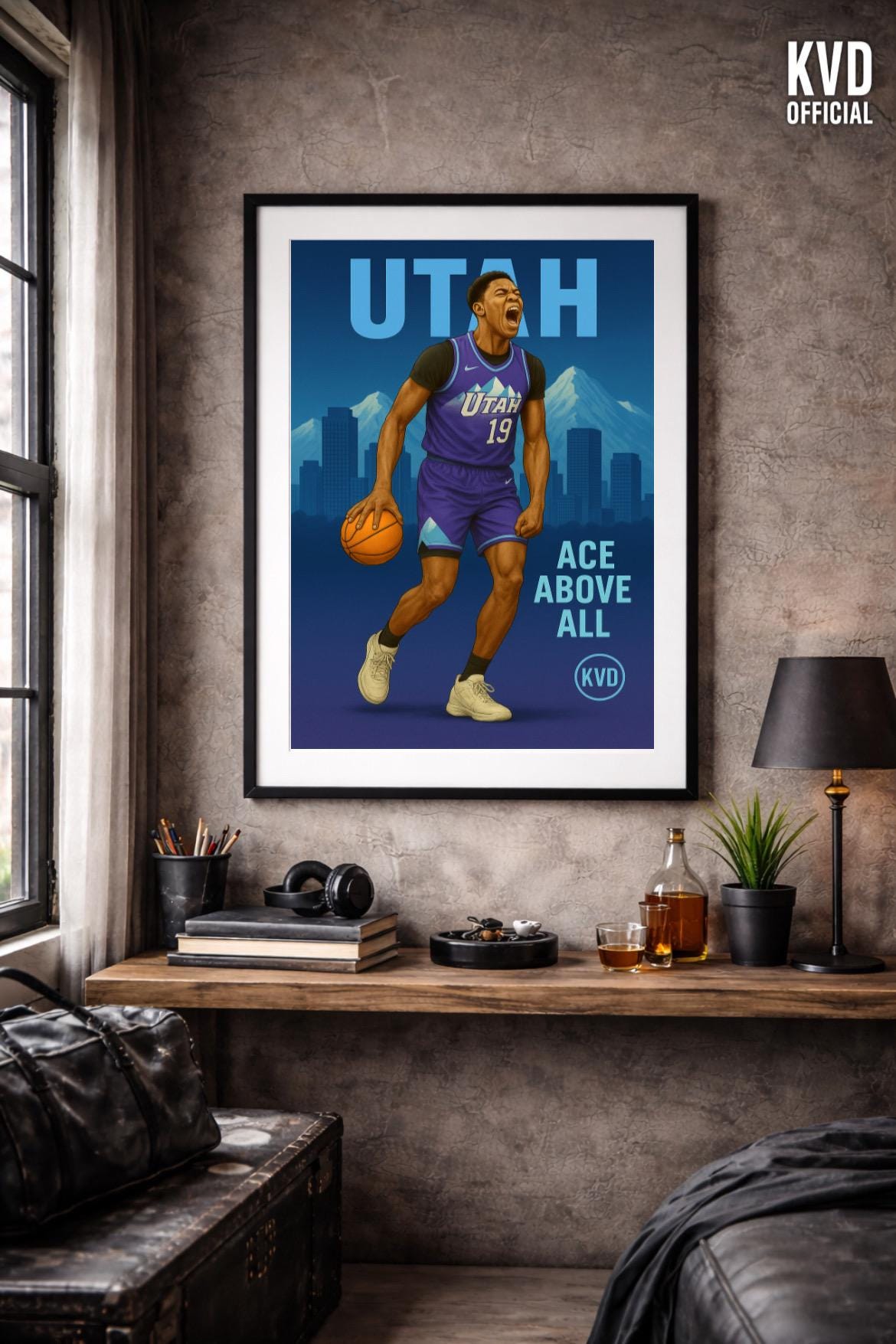 Wearing the deep purple Utah uniform with No. 19, Ace is captured mid-roar in full illustrated realism — a statement of dominance and hunger.