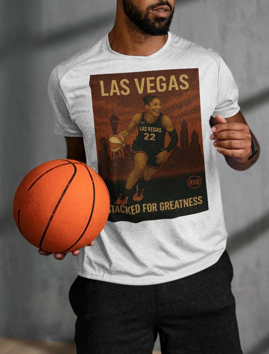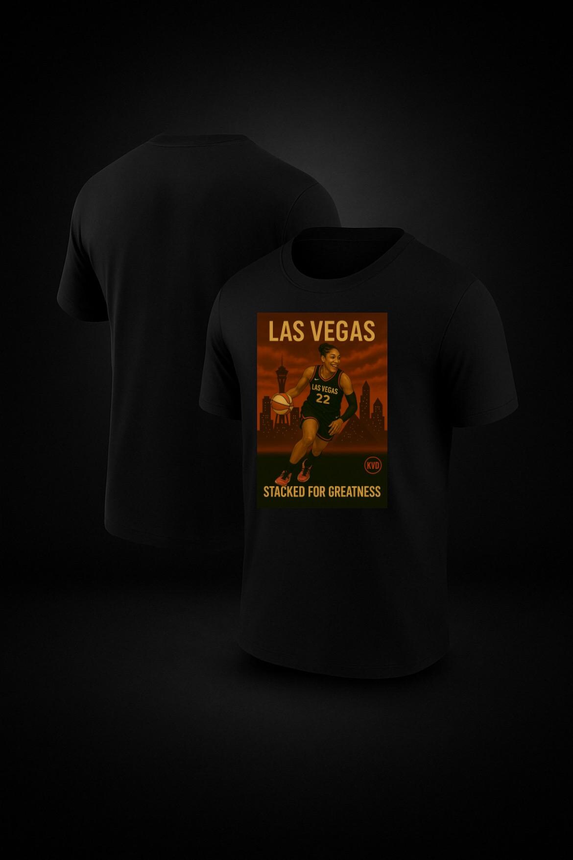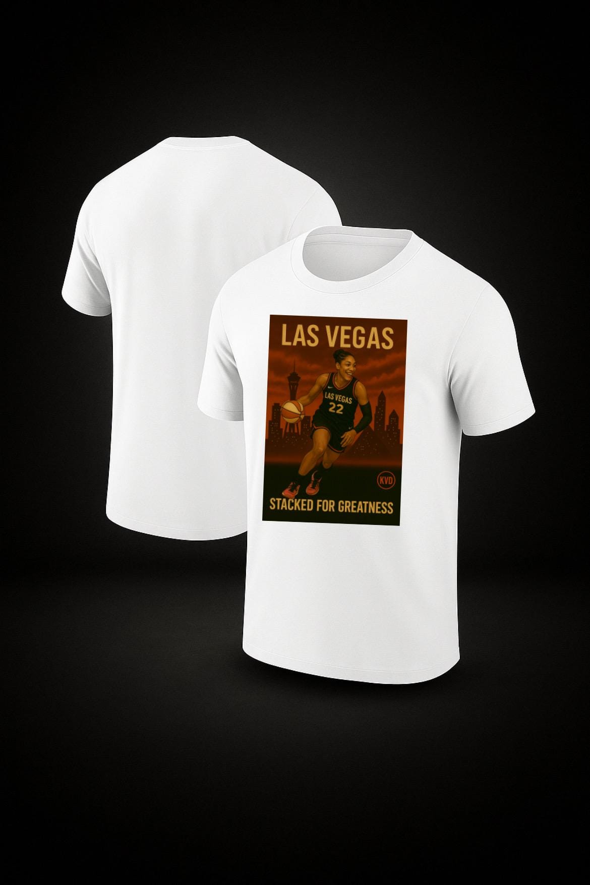 Carry the energy of a champion. This premium tee features A’ja Wilson rising over the Las Vegas skyline in bold illustrated detail — part of the KVD Skyline Collection: Women’s Hoops Edition. _