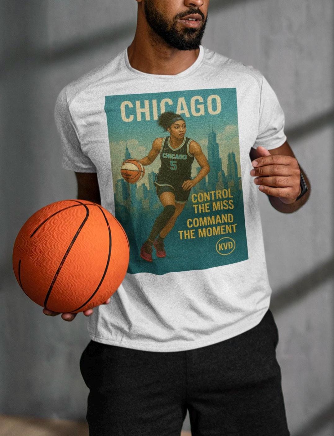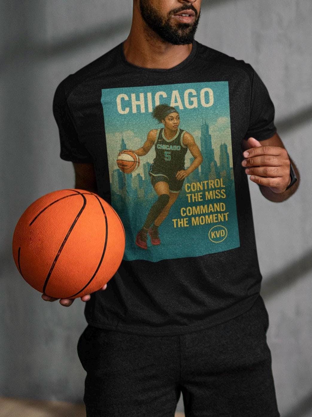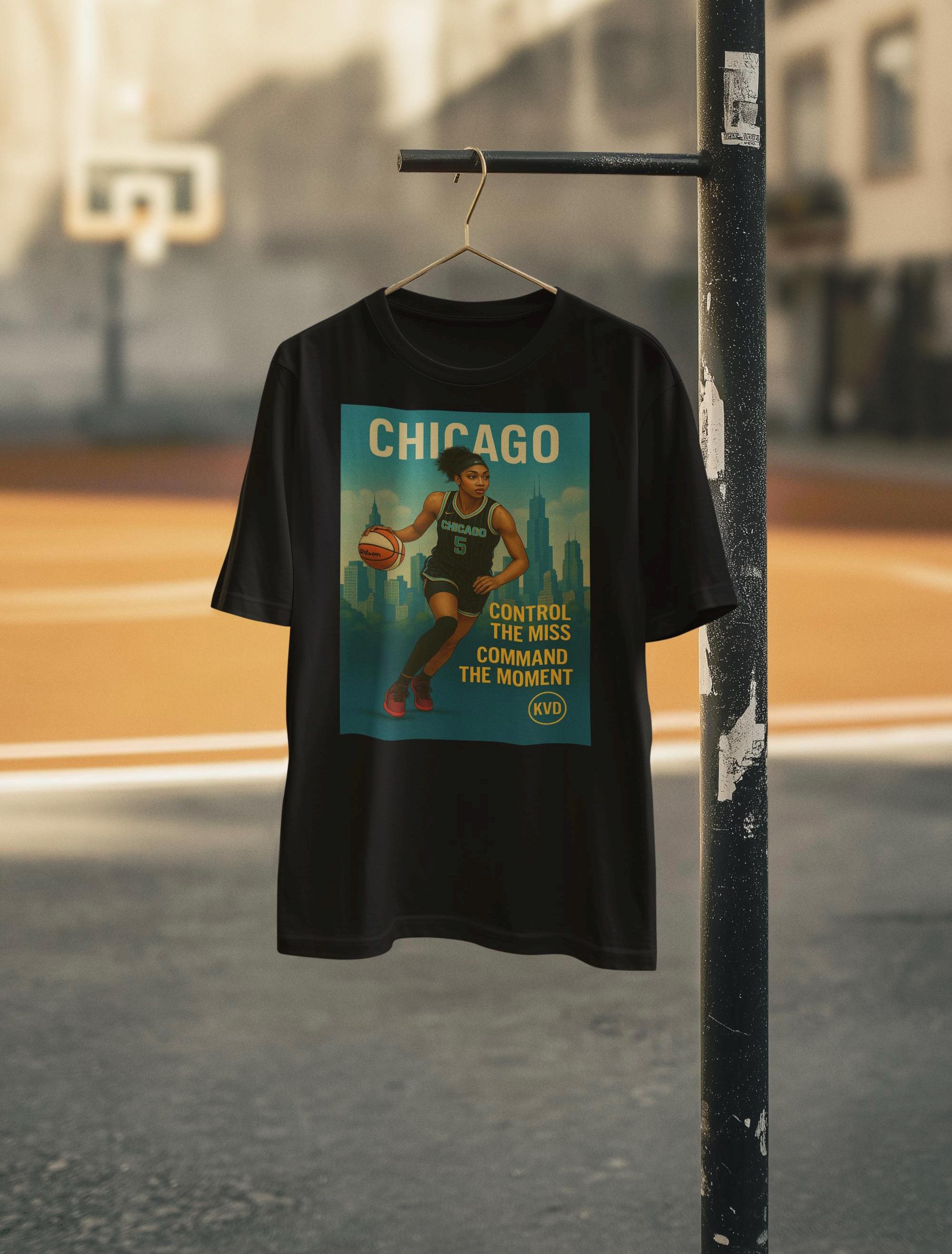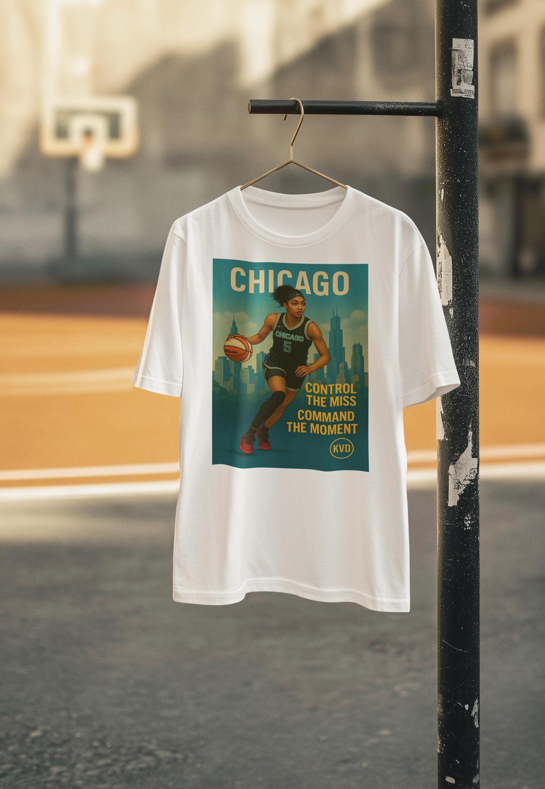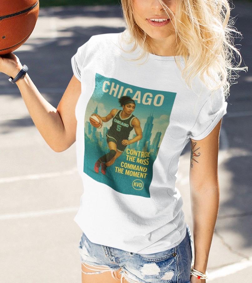Rep the Queen of the Boards with this bold tee from the KVD Skyline Collection – Women’s Hoops Edition. Featuring Angel Reese over the Chicago skyline in full illustrated realism, this shirt is built for fans who move with purpose. _