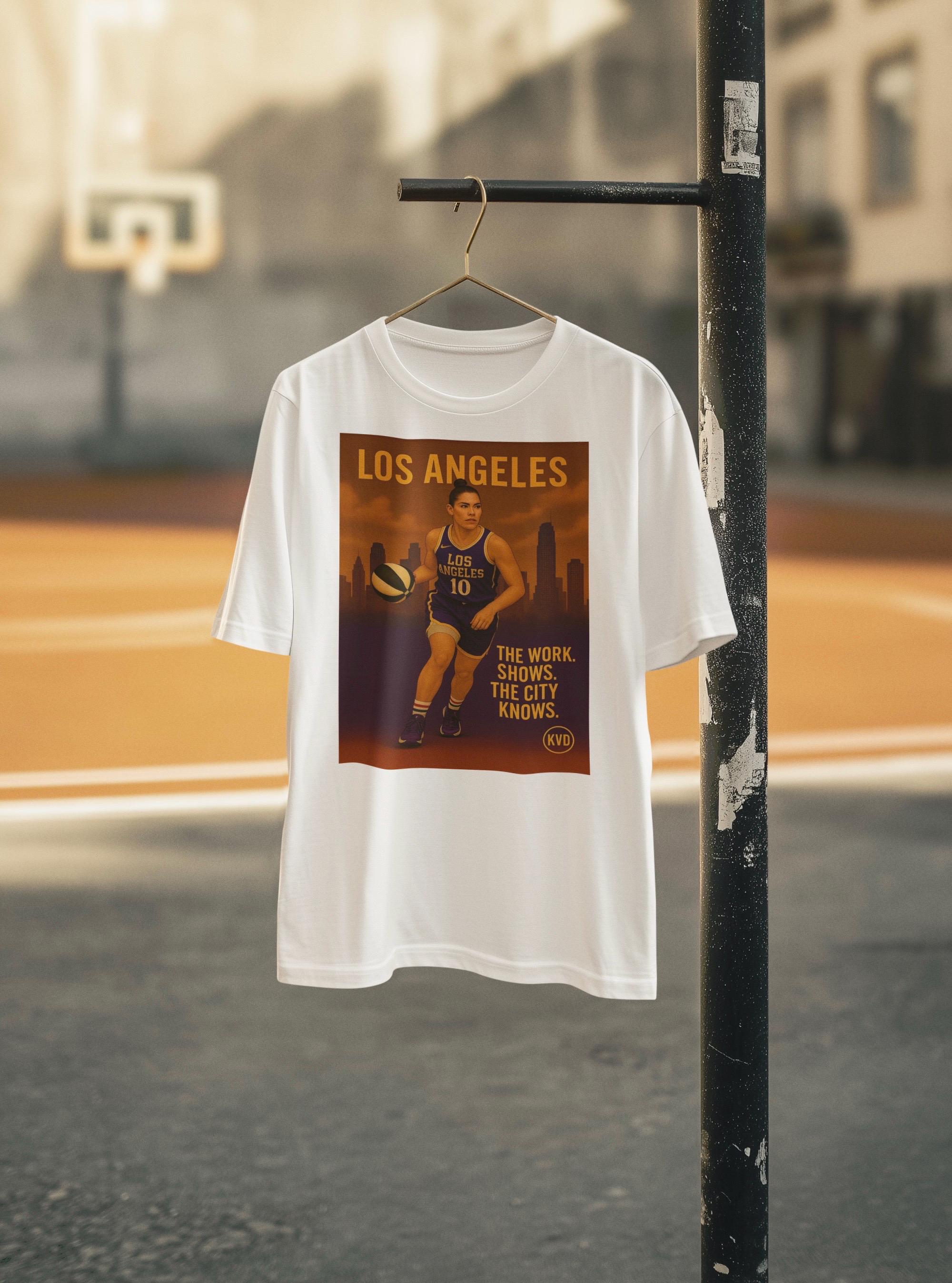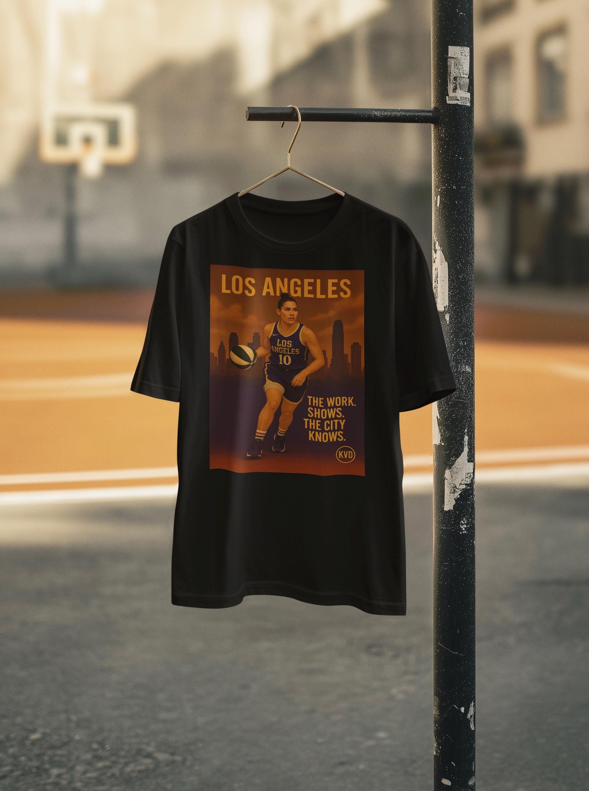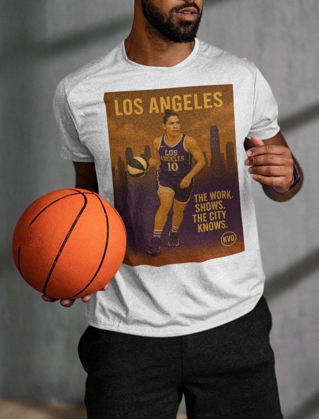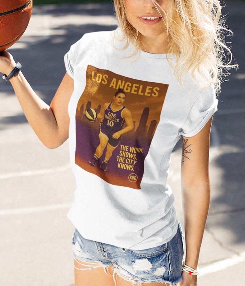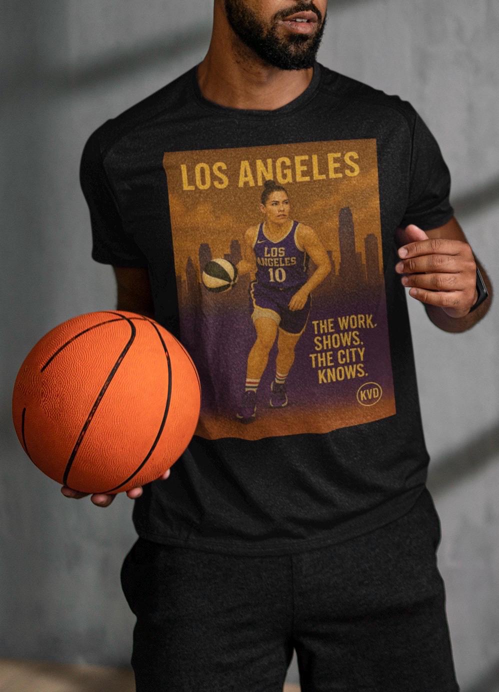 Kelsey Plum is putting in work — and now she’s doing it for LA. This premium Skyline collection tee blends illustrated realism and city energy in a wearable design that reps both the grind and the glory. _