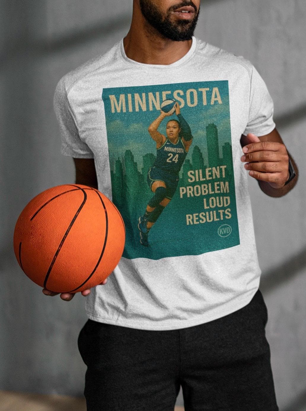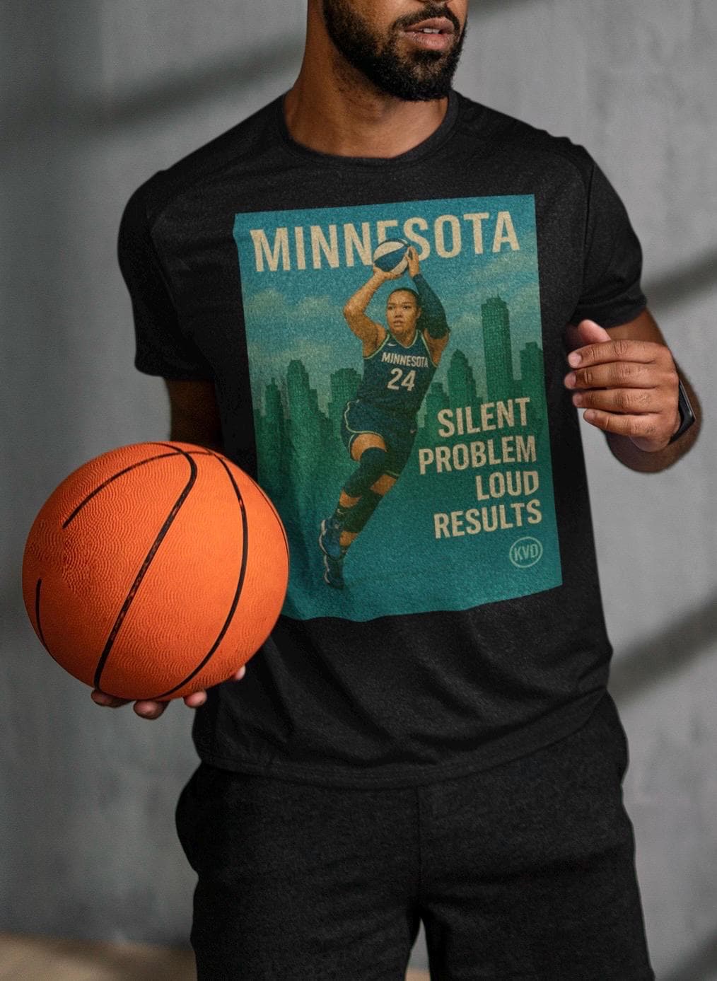 Rep Napheesa’s quiet dominance with this premium illustrated tee. From the KVD Skyline Collection – Women’s Hoops Edition, this shirt features Collier in full-body illustrated realism, rising above the Minnesota skyline with focus and fire. _