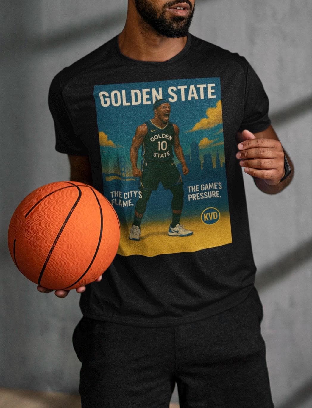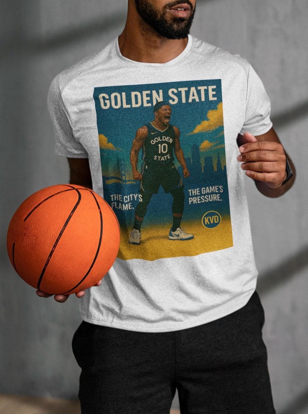 ✅ 100% combed ring-spun cotton 🟦 KVD Skyline Collection – Hoops Edition 🟡 Slogan: “The City’s Flame, The Game’s Pressure.” 🧼 Printed to last – no peeling, no fading 🖤 Available in Black, White