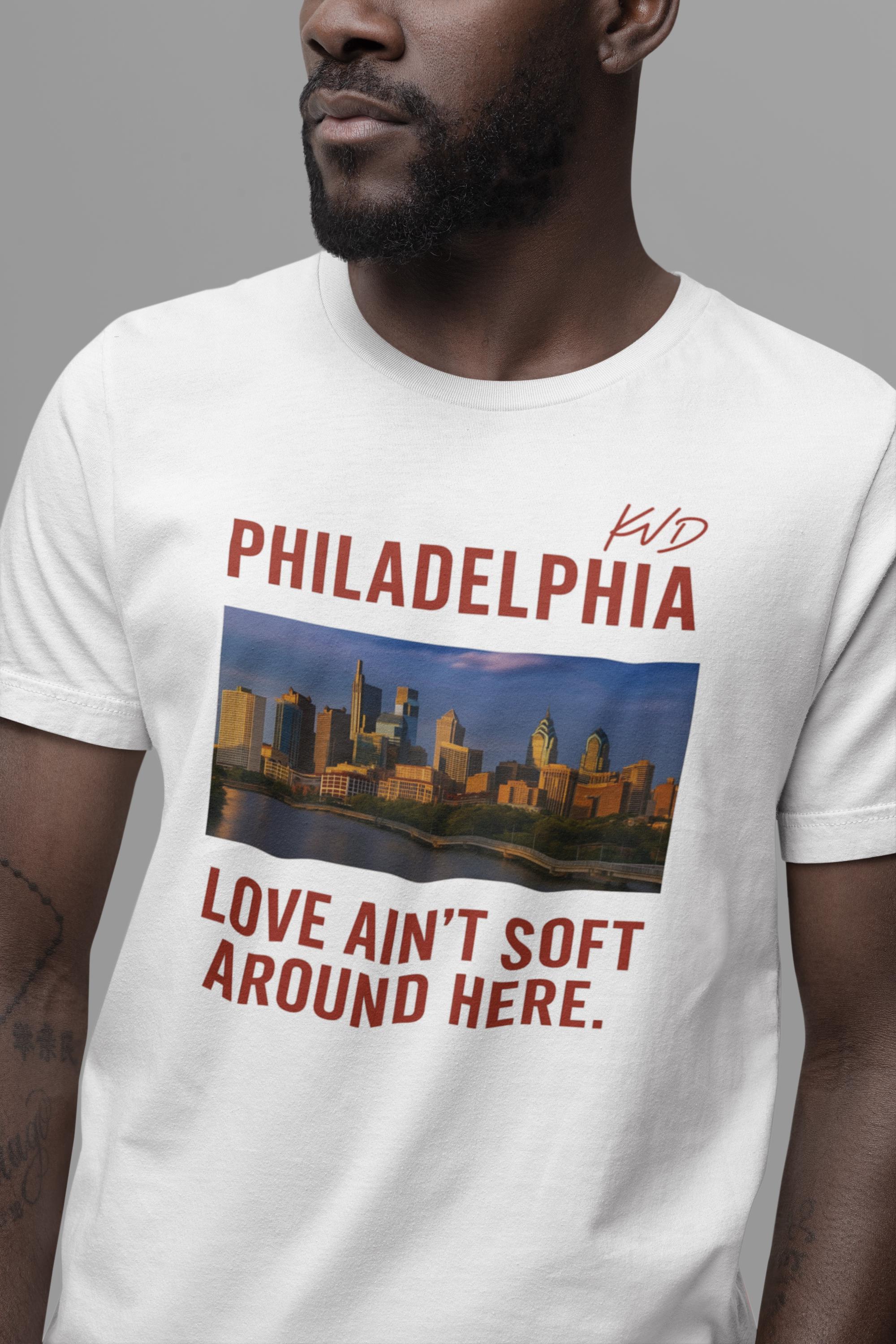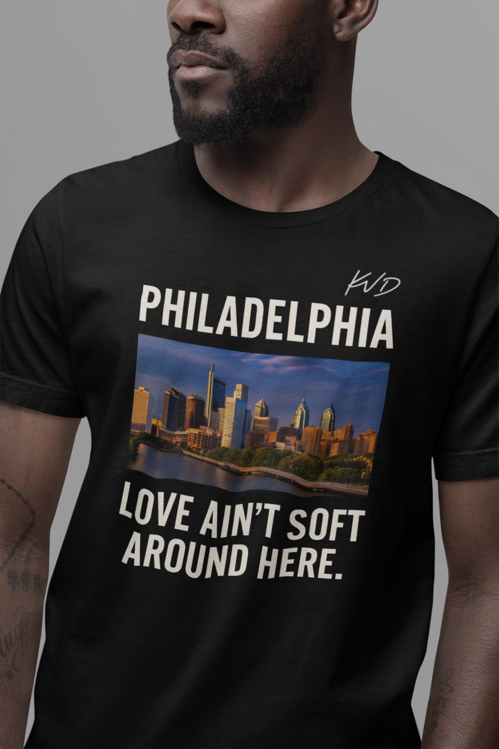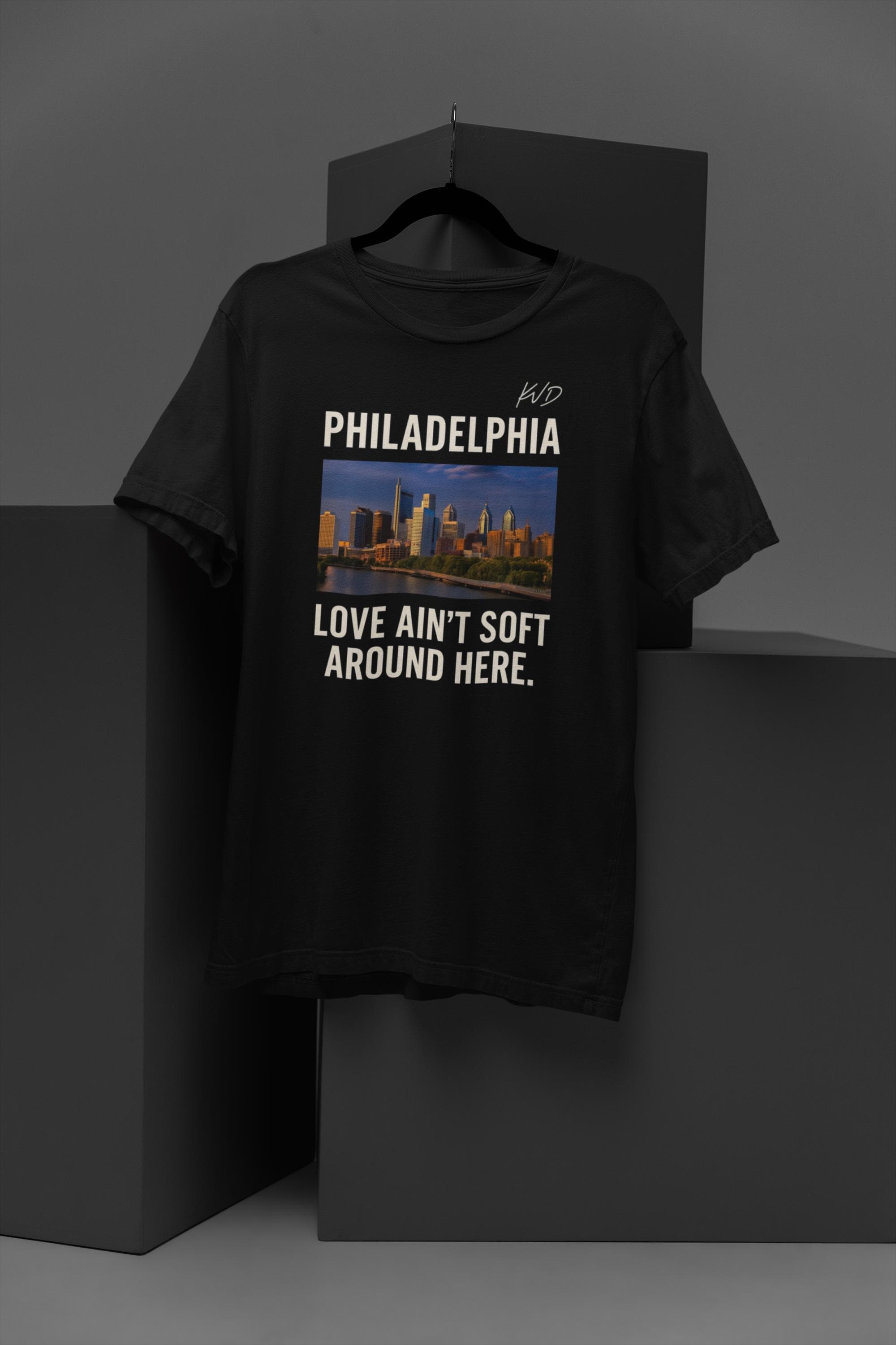 Rep Your City Graphic Tee – PHILADELPHIA – “Love Ain’t Soft Around Here.” City Pride Streetwear T-Shirt • Urban Graphic Tee