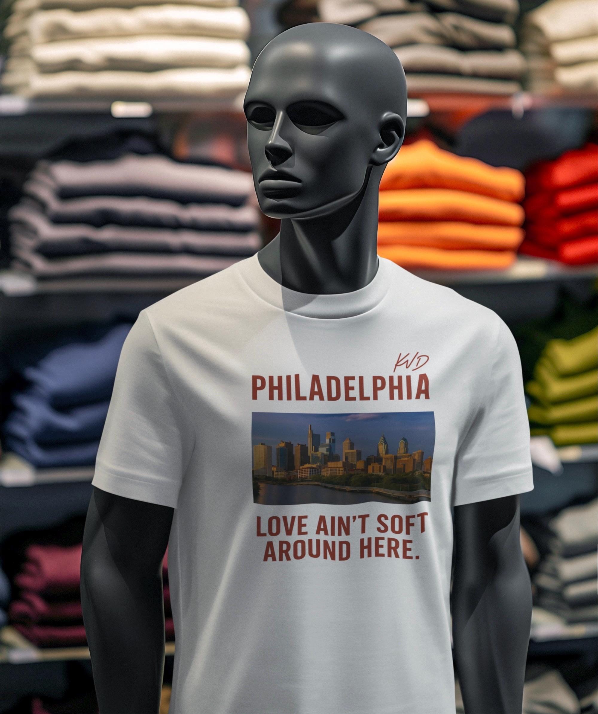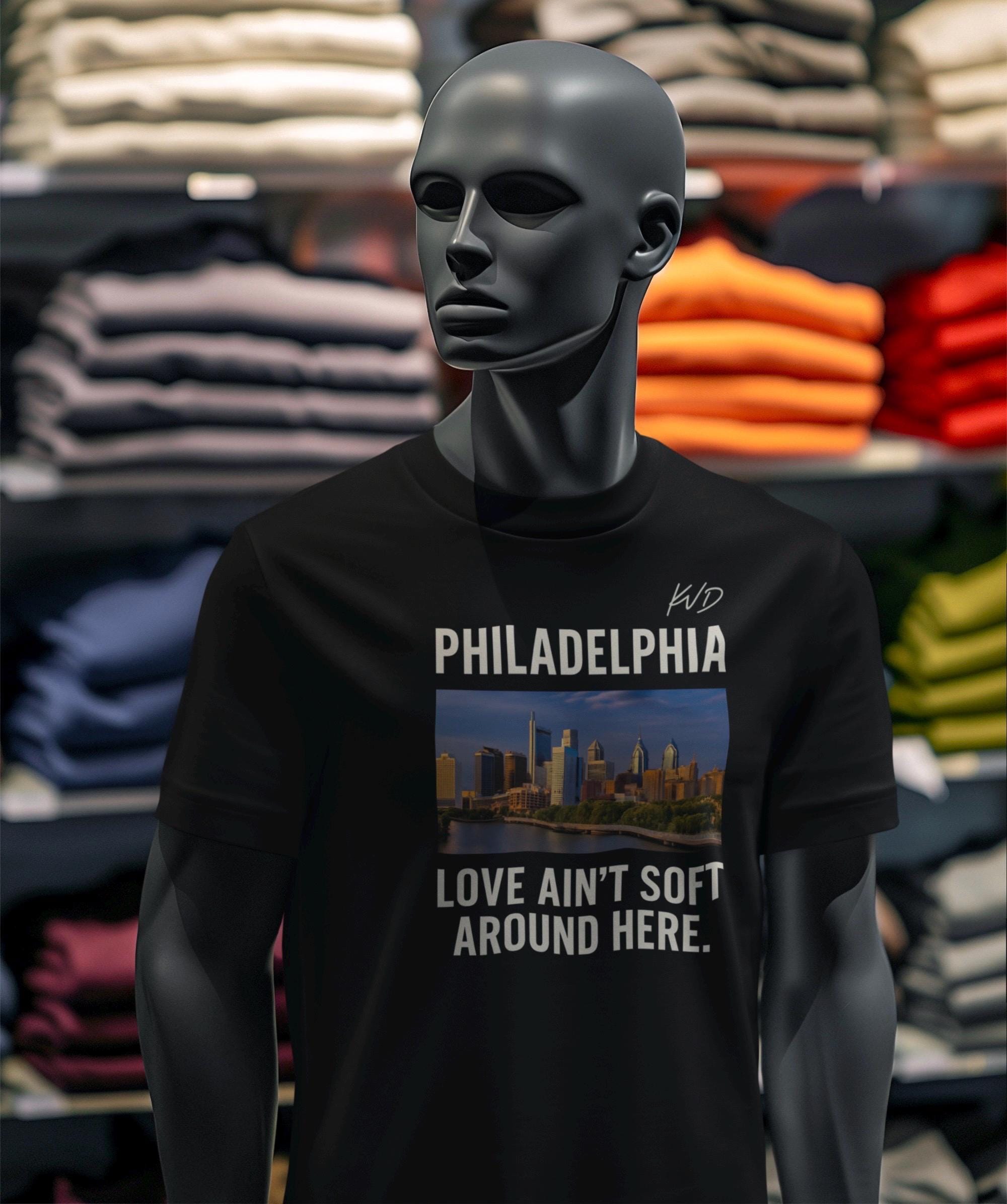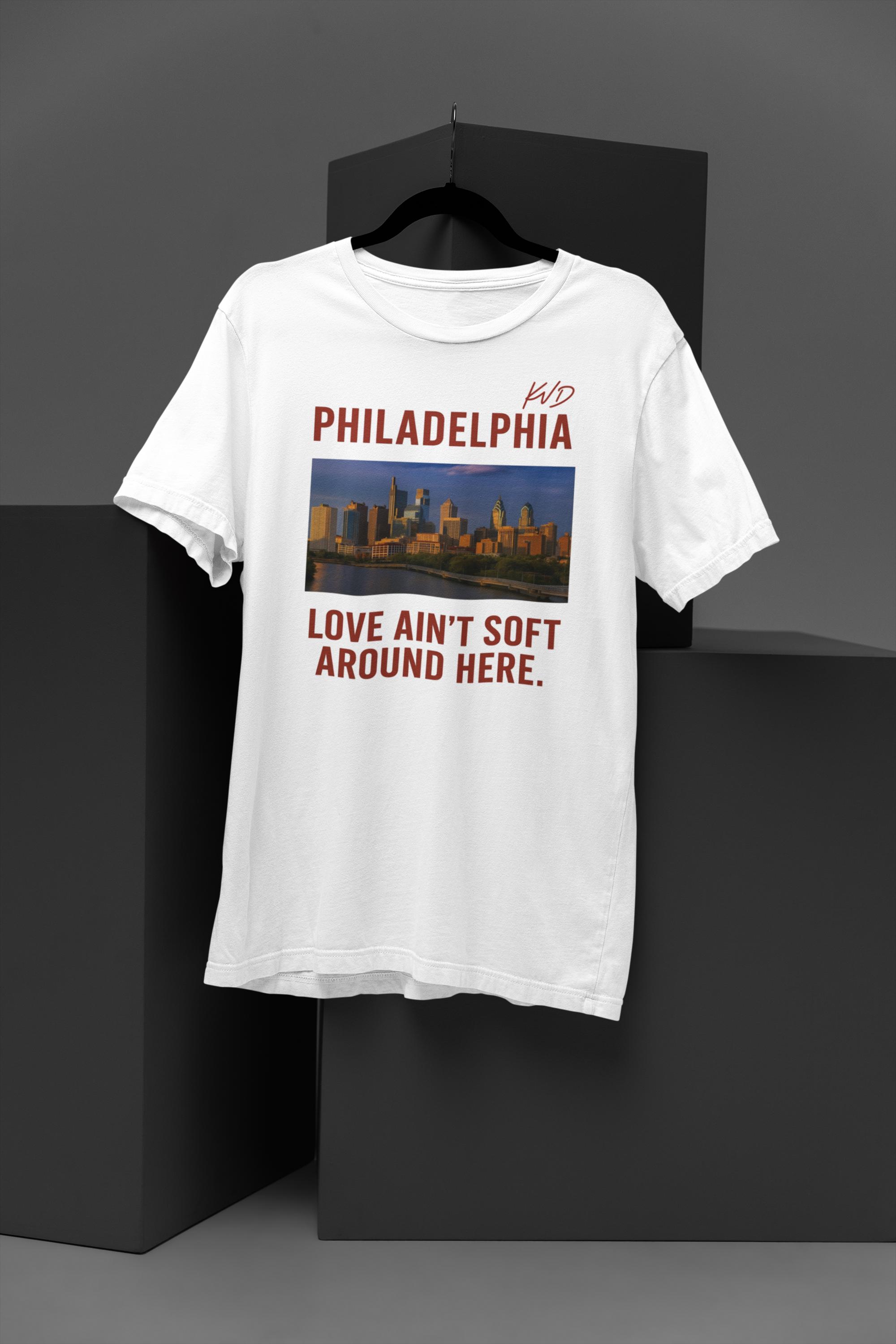 Rep Your City Graphic Tee – PHILADELPHIA – “Love Ain’t Soft Around Here.” City Pride Streetwear T-Shirt • Urban Graphic Tee