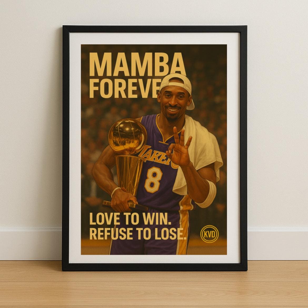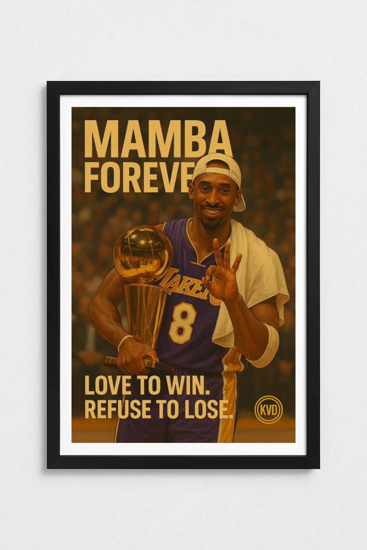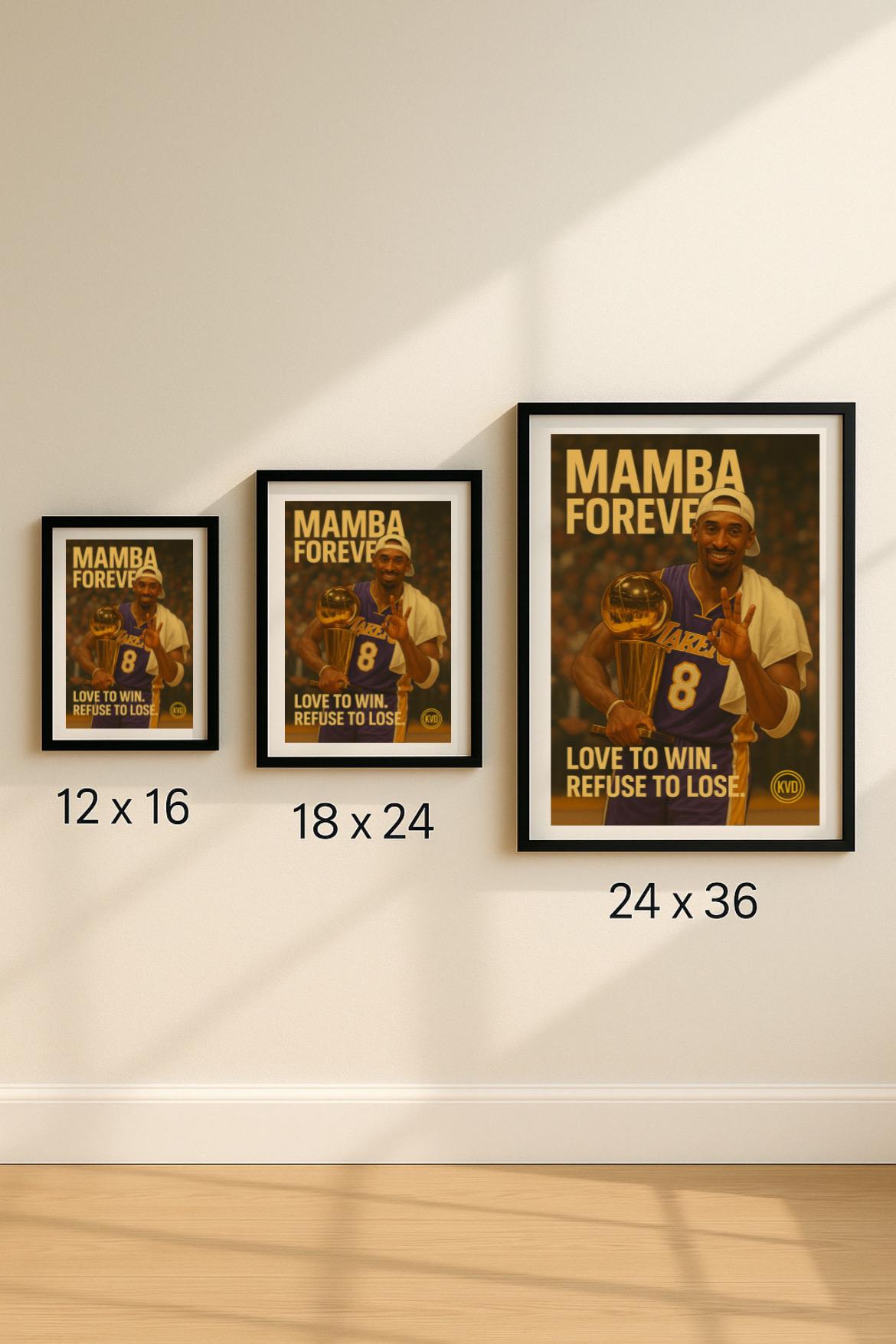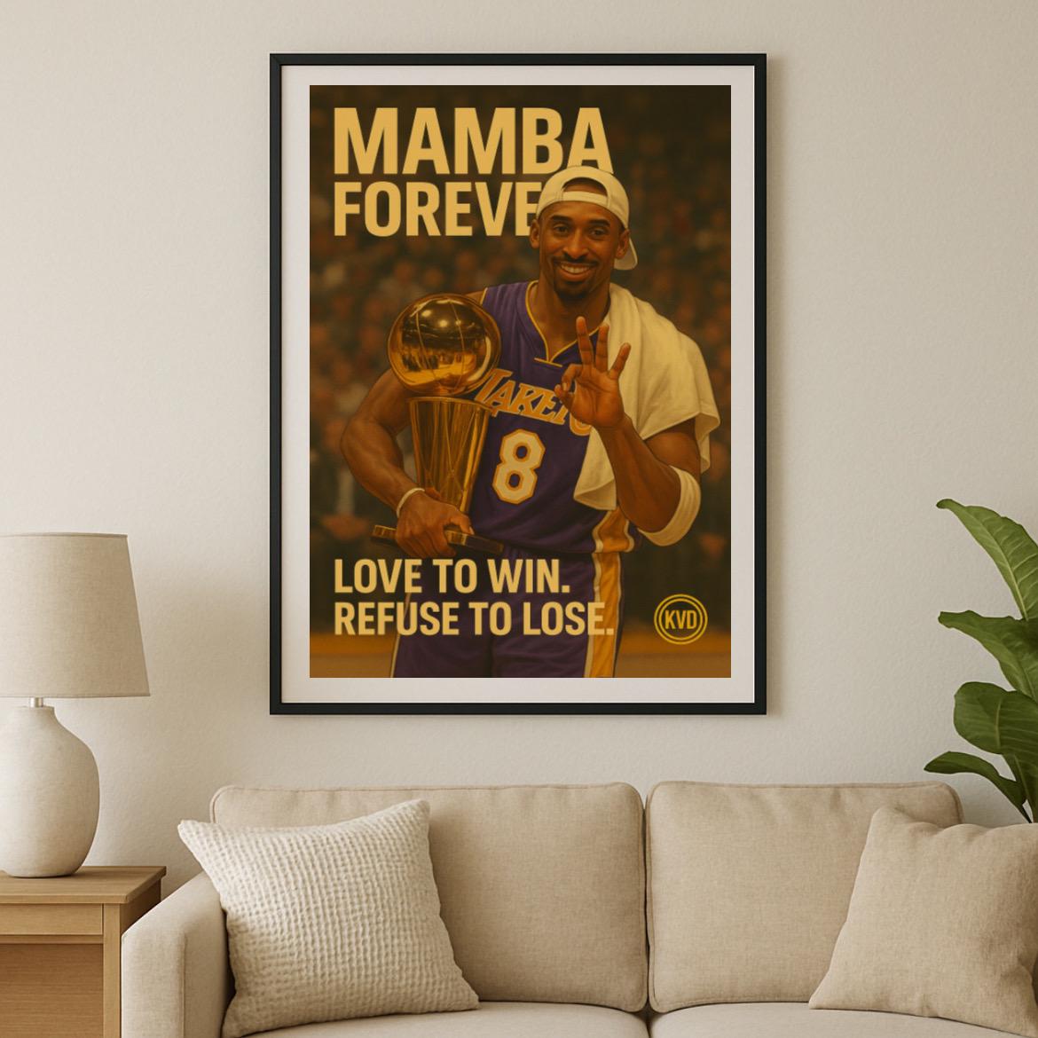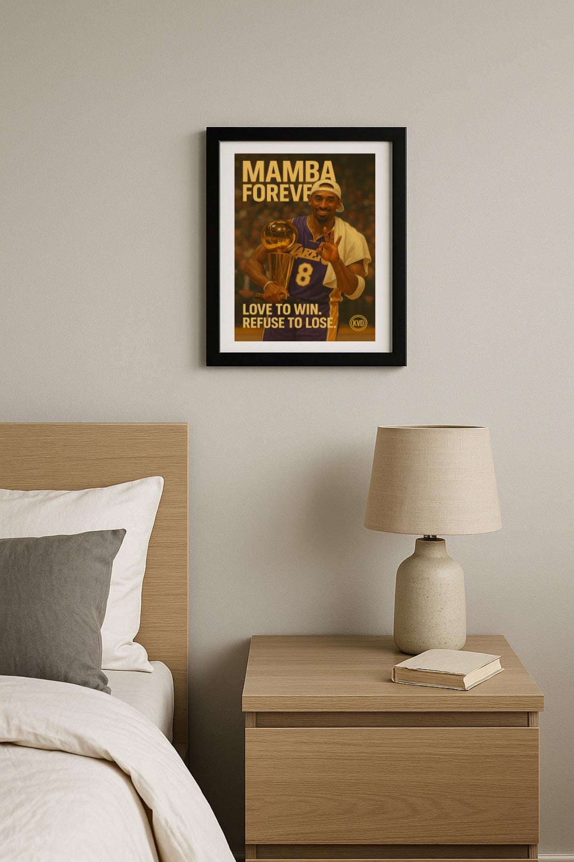 Mamba Forever Basketball Wall Art “Love to Win. Refuse to Lose.” | Legend Tribute Sports Decor | Basketball Fan Gift | Modern Room Art