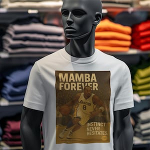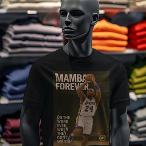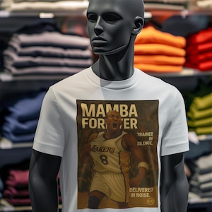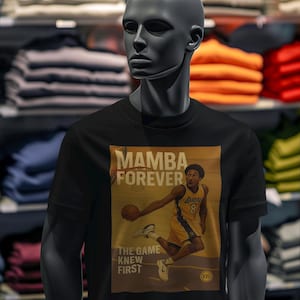 Step into the Mamba Forever Collection with this sports graphic tee. A legend basketball shirt designed with illustrated realism artwork, built for athletes and fans.
