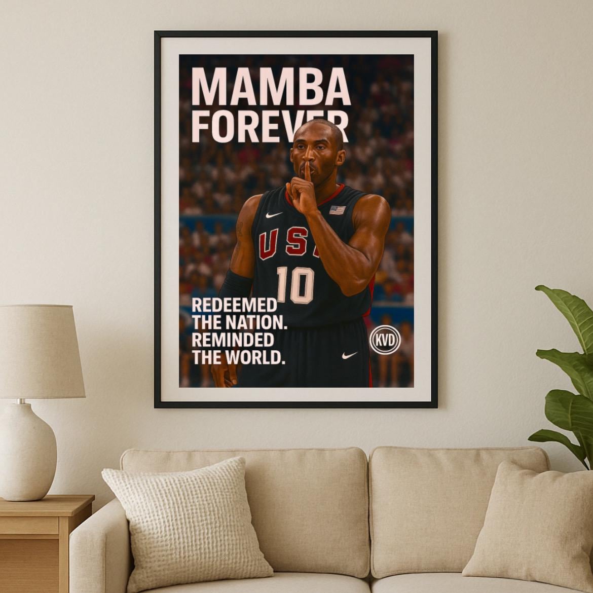 Mamba Forever Basketball Wall Art “Redeemed the Nation. Reminded the World.” | Legend Tribute Sports Decor | Basketball Fan Gift