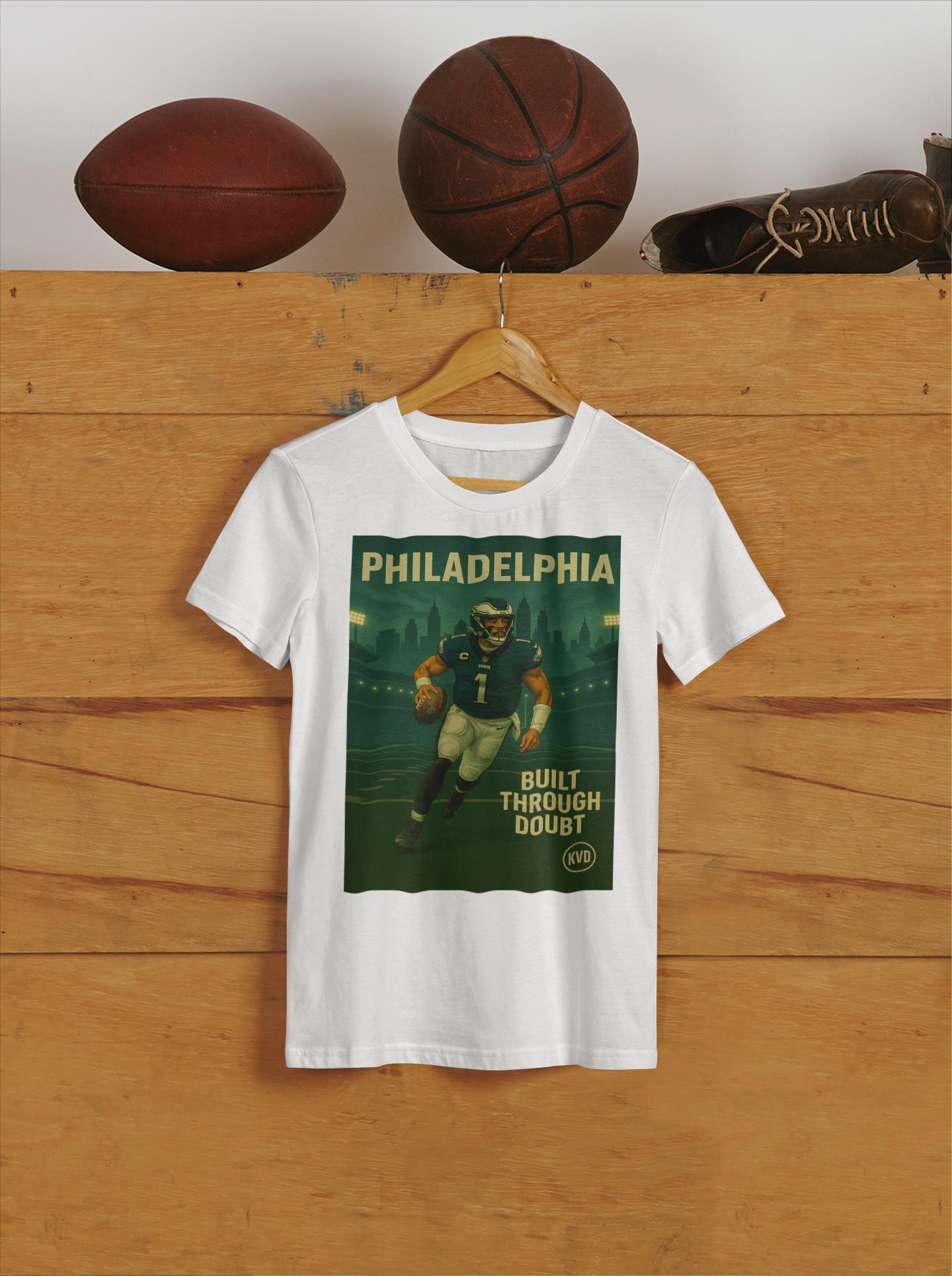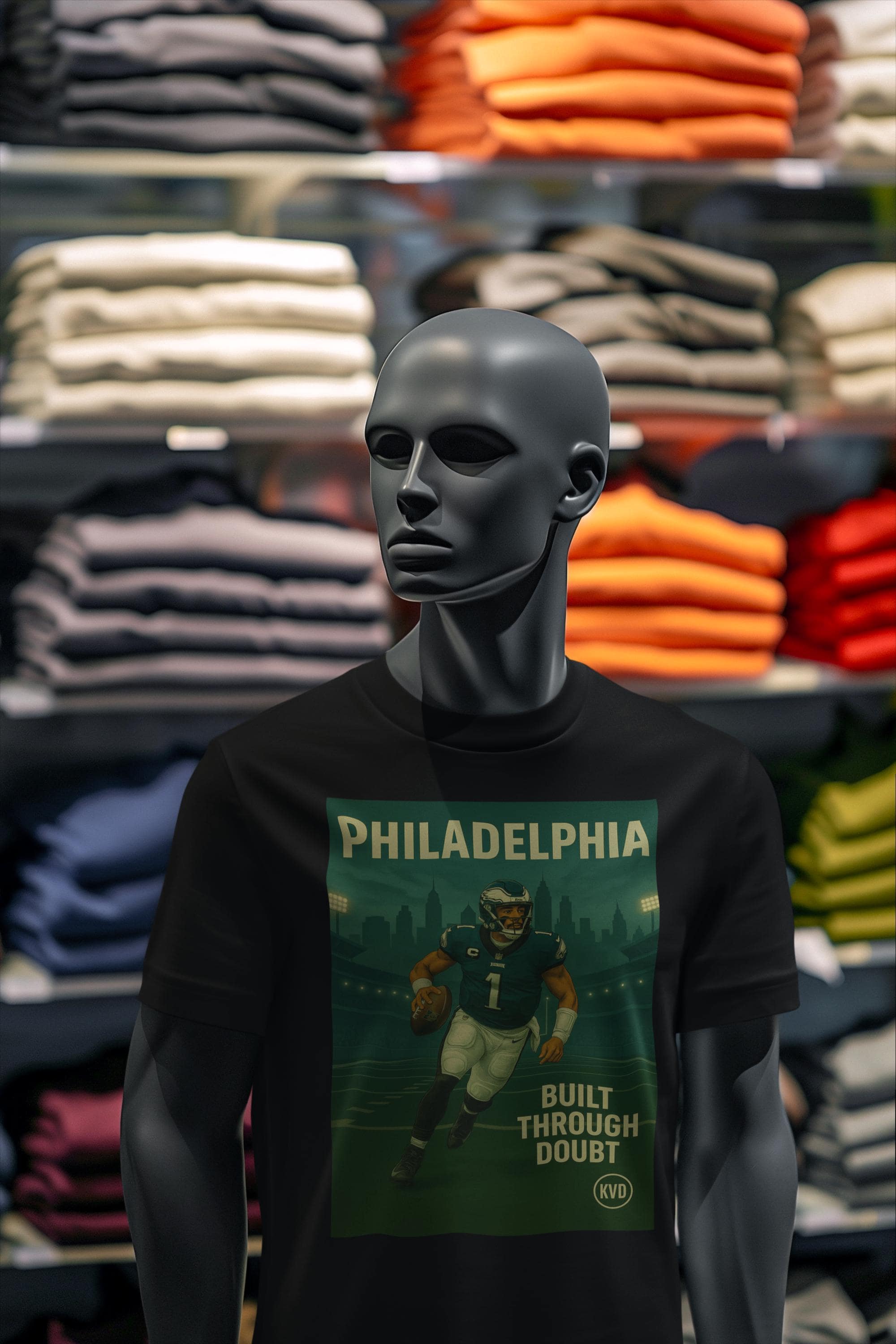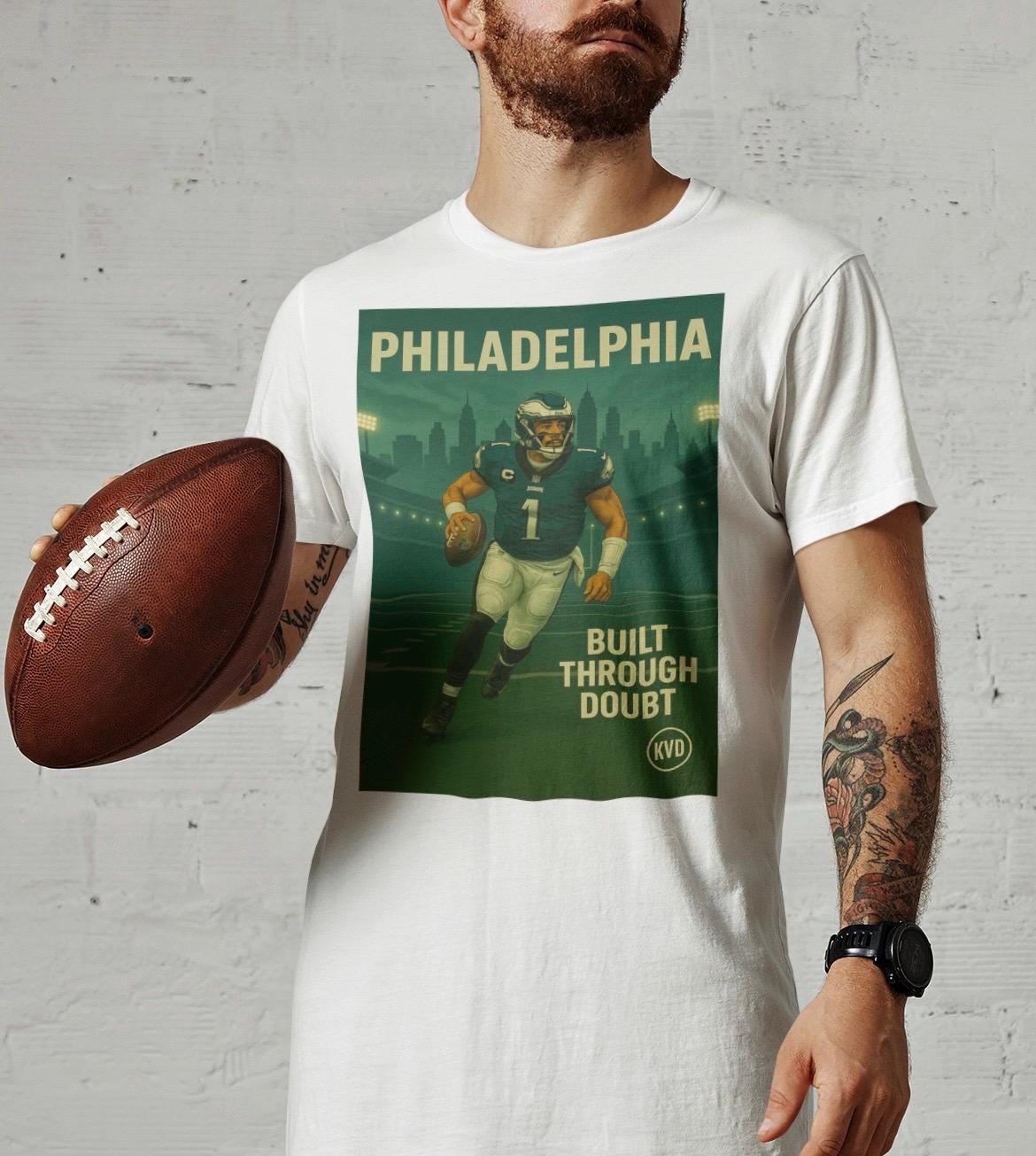 PHI – Philadelphia Football Graphic Tee – “Built Through Doubt” – Pro Gridiron Streetwear T-Shirt • Football Fan Gift