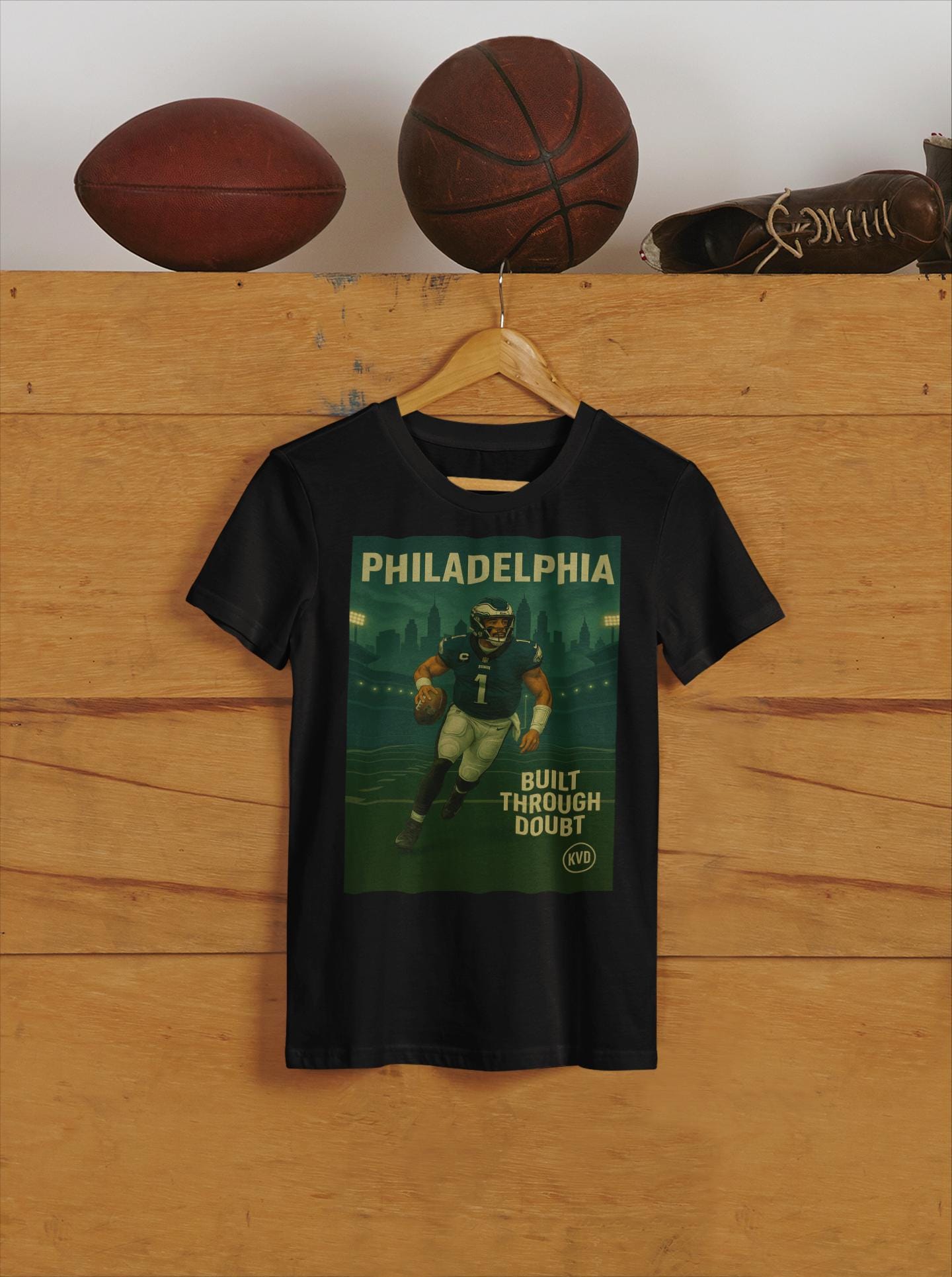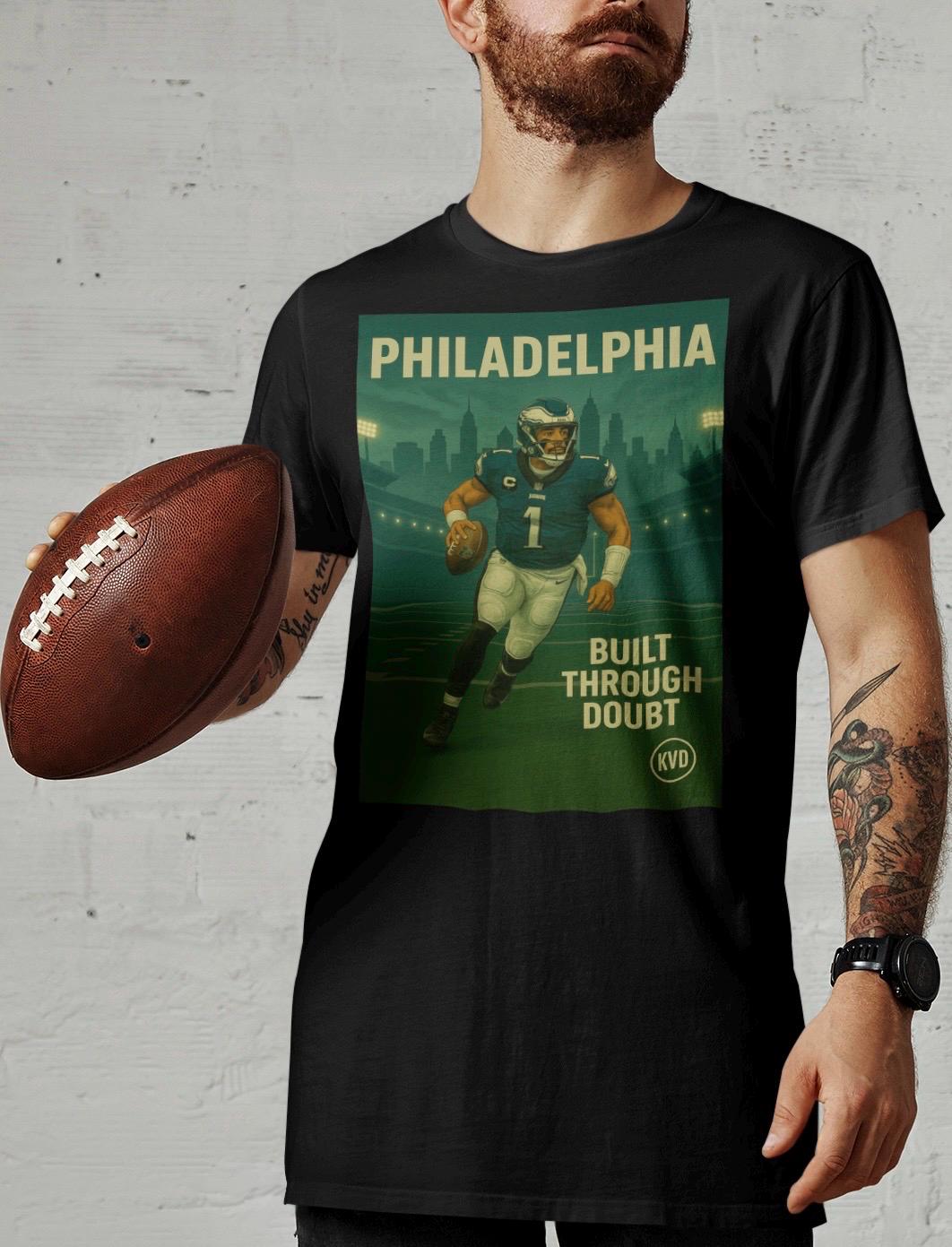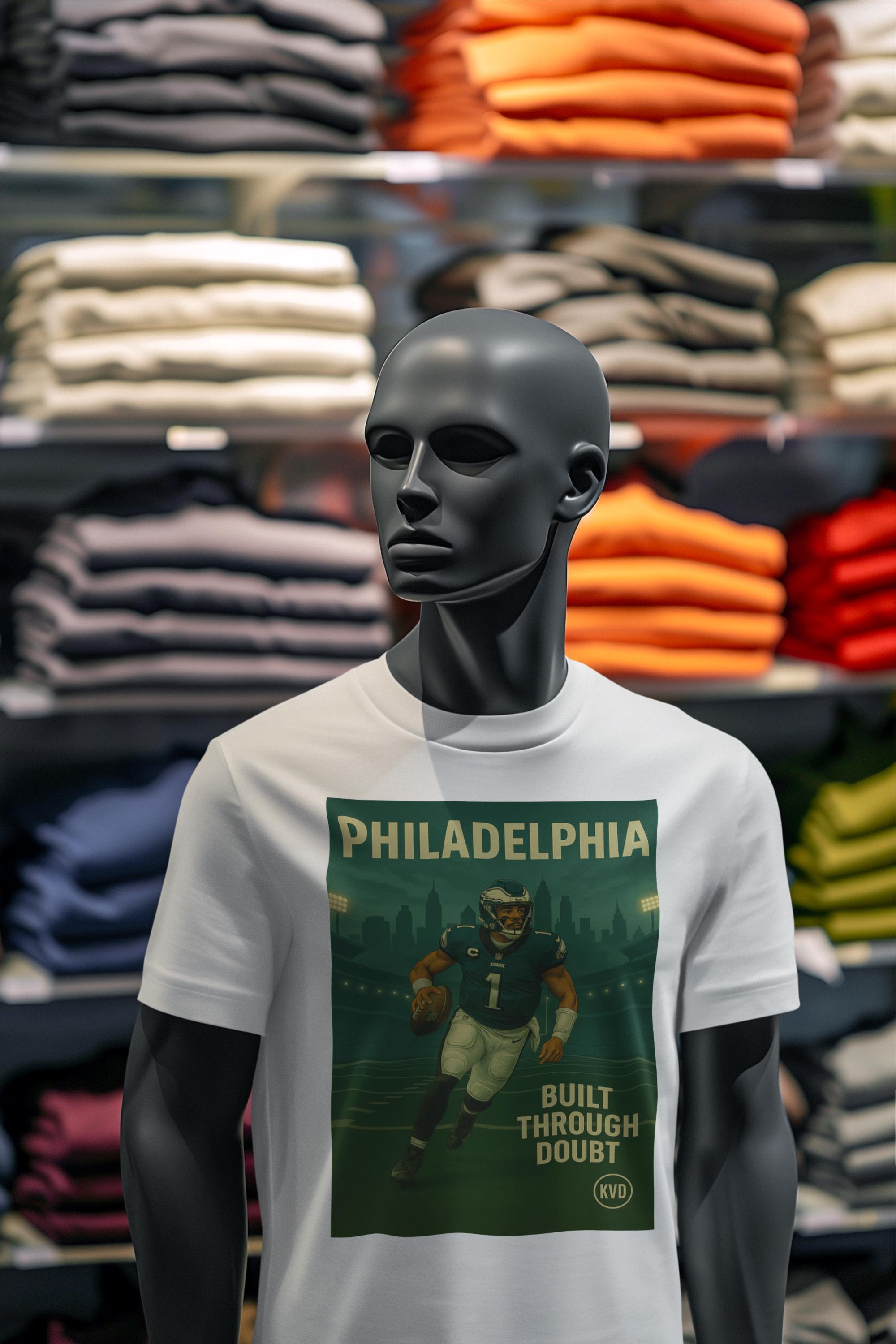 PHI – Philadelphia Football Graphic Tee – “Built Through Doubt” – Pro Gridiron Streetwear T-Shirt • Football Fan Gift