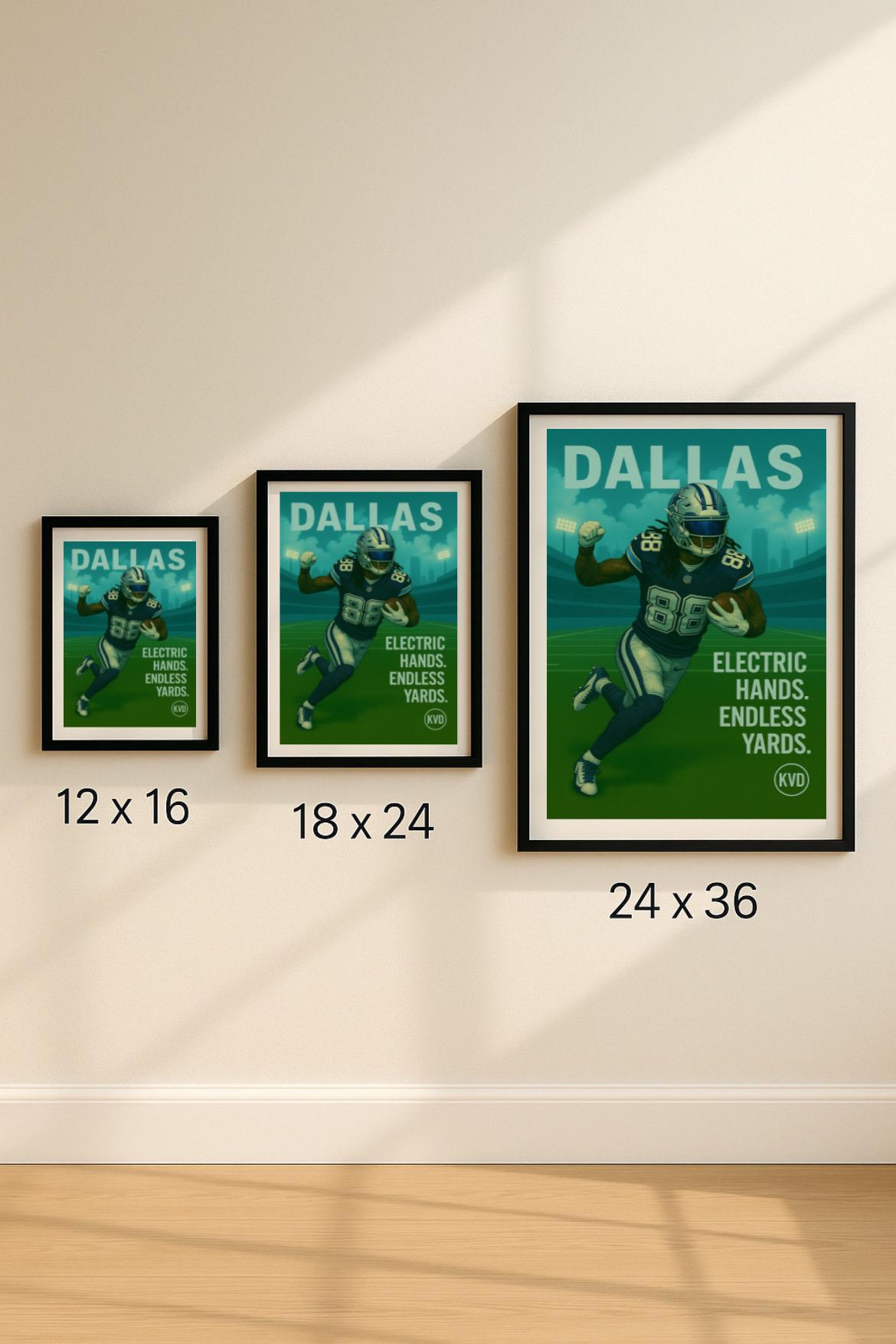 DAL – Dallas Pro Football Wall Art “Electric Hands. Endless Yards.” | Pro Football Sports Decor | Sports Fan Gift | Modern Room Art