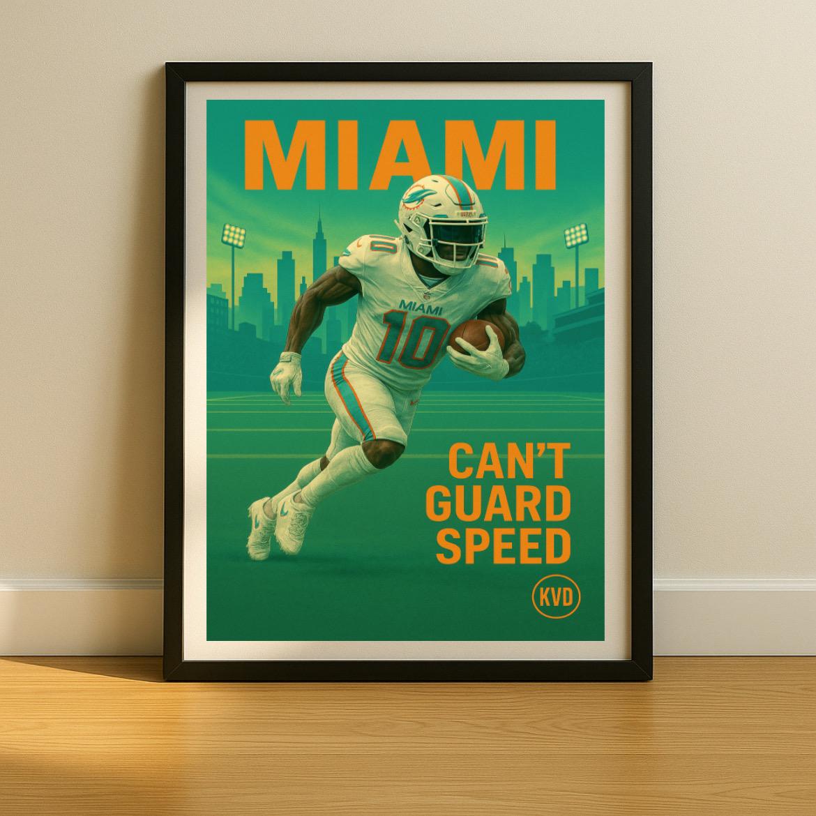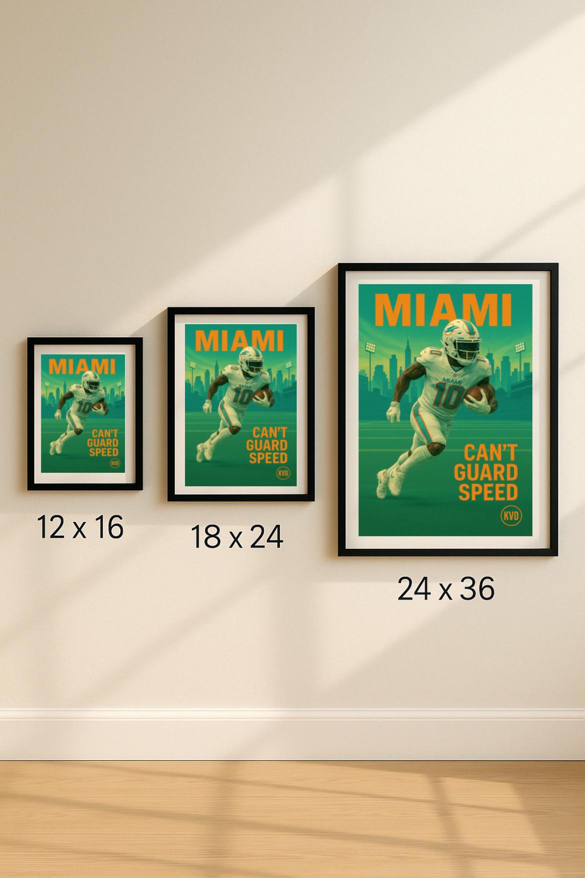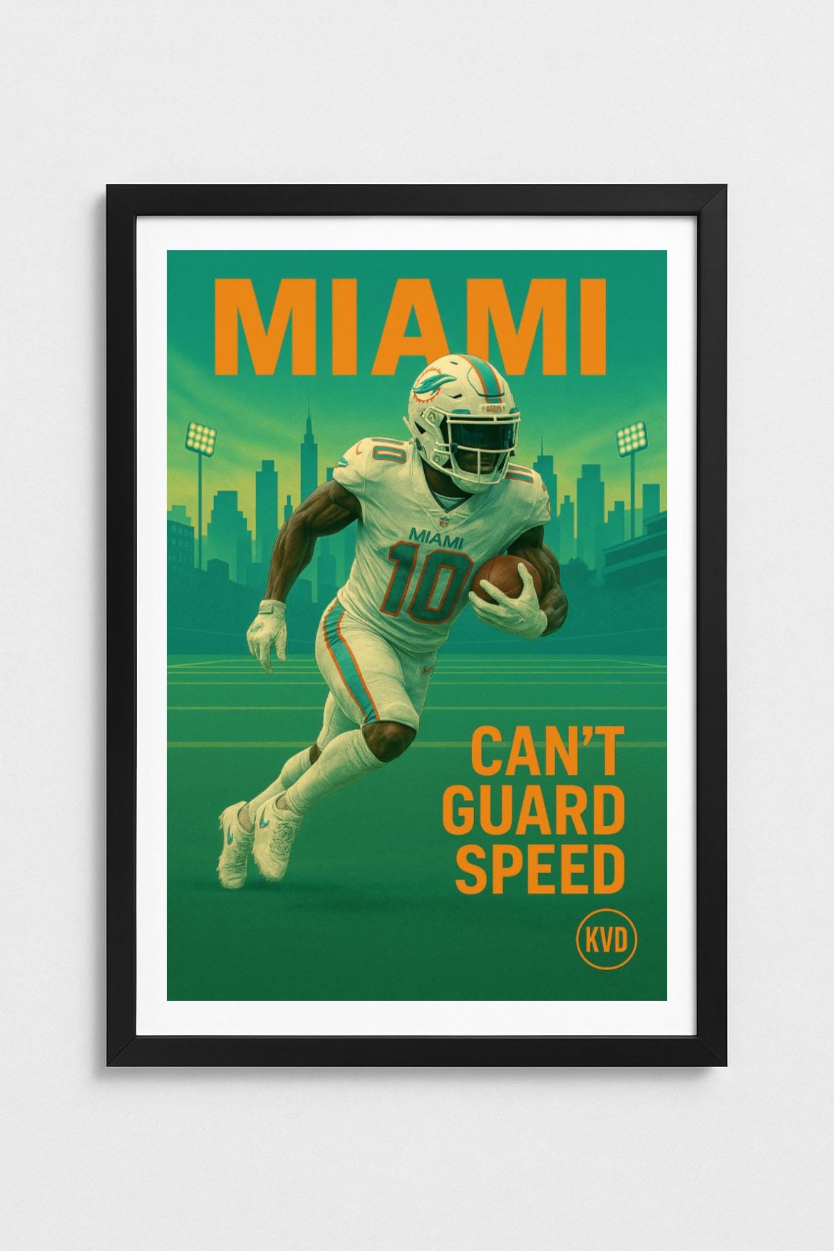MIA – Miami Pro Football Wall Art “Can’t Guard Speed.” | Pro Football Sports Decor | Sports Fan Gift | Modern Room Art