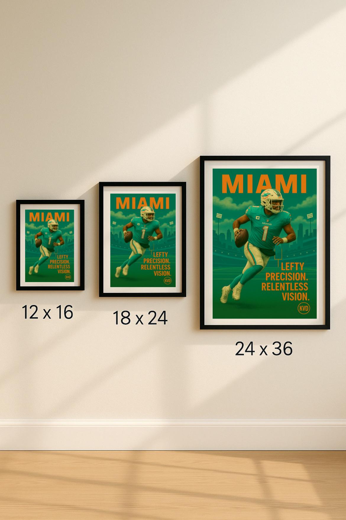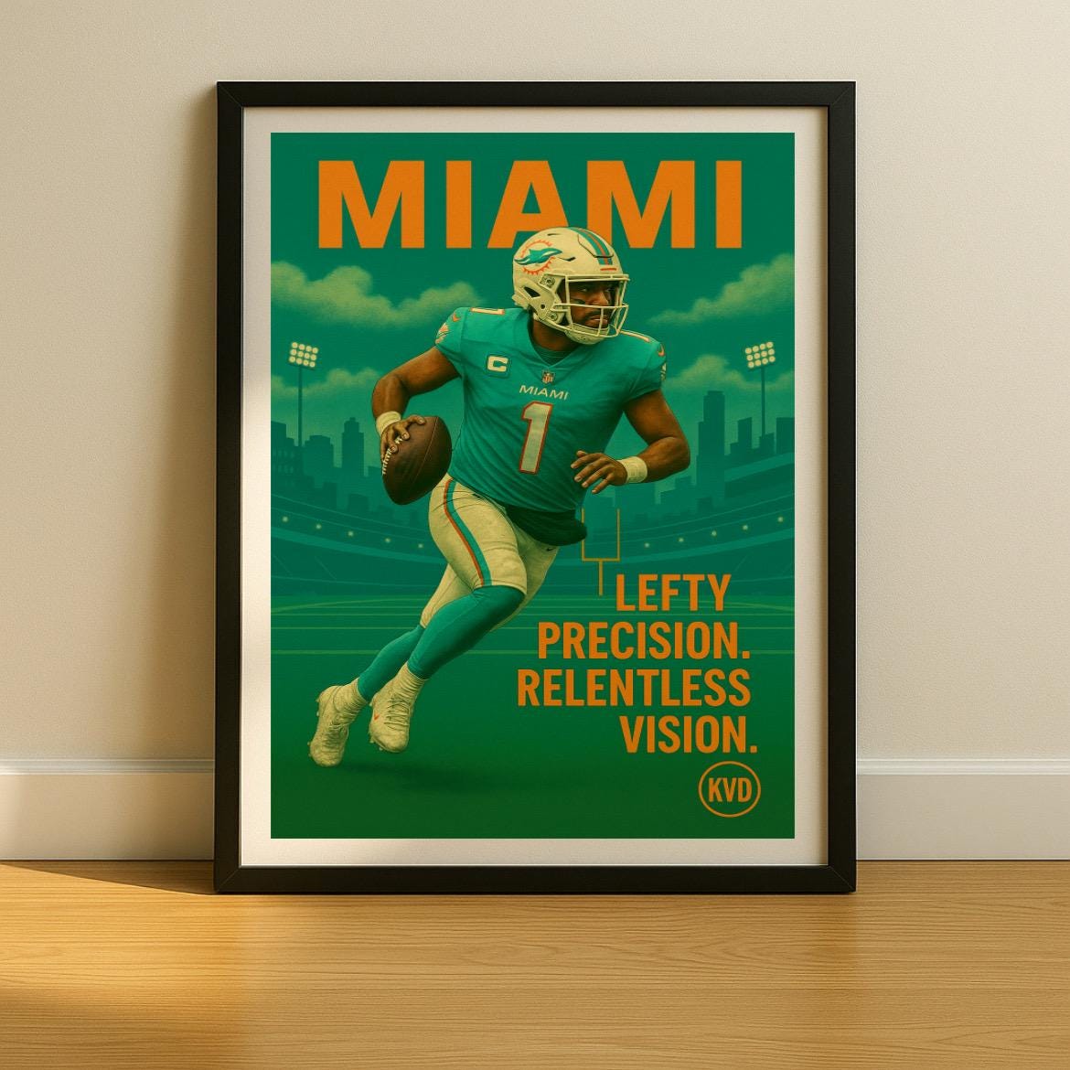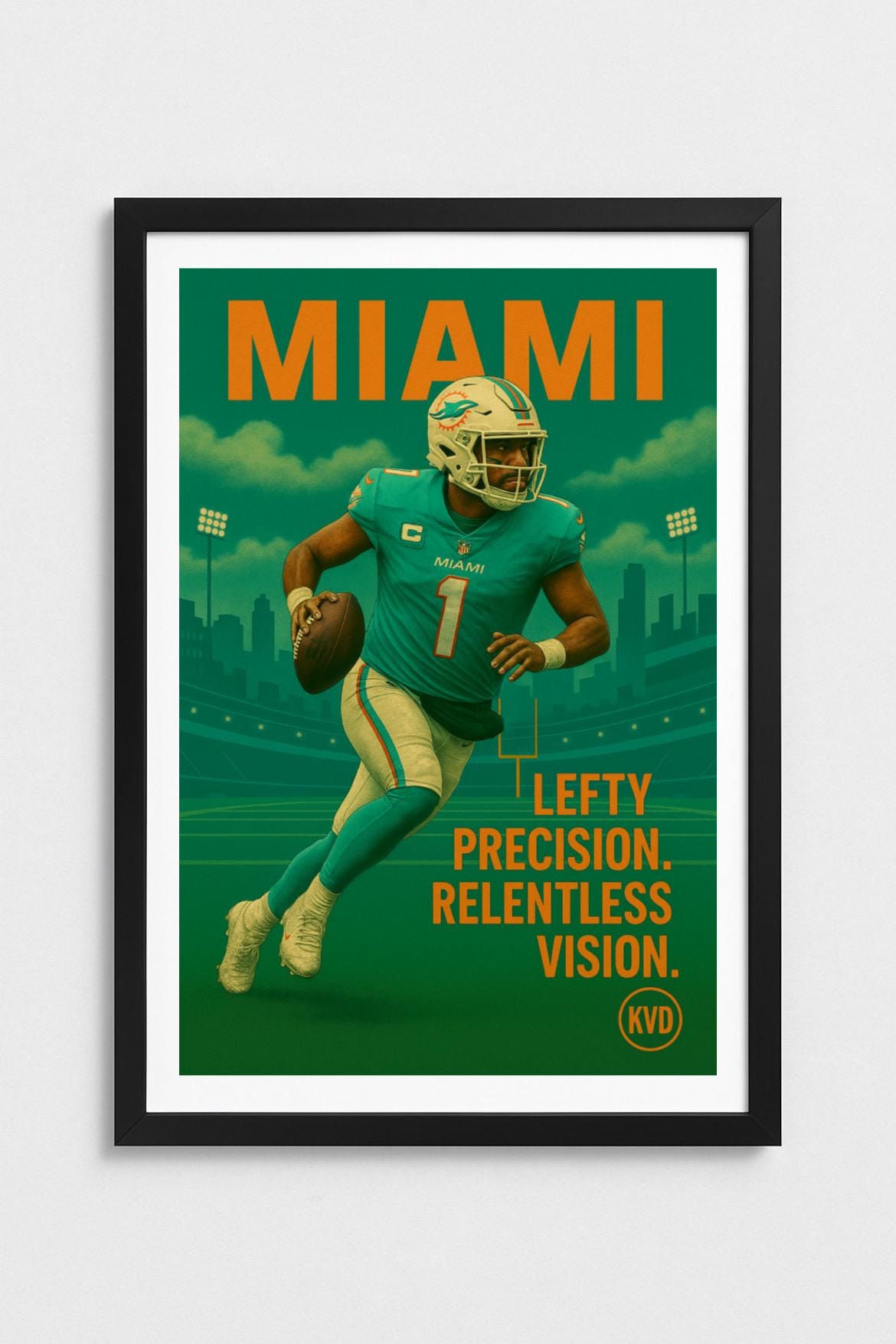 MIA – Miami Pro Football Wall Art “Lefty Precision. Relentless Vision.” | Pro Football Sports Decor | Sports Fan Gift | Modern Room Art
