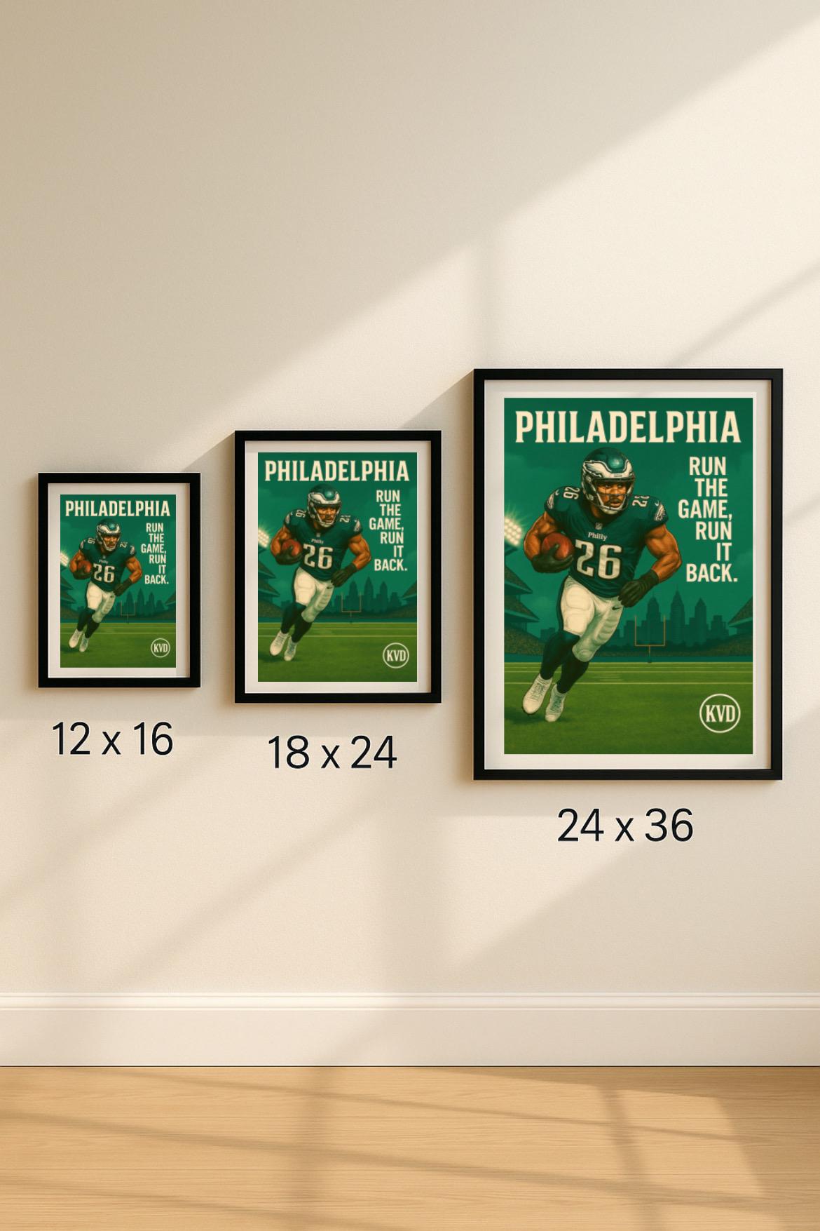 PHI – Philadelphia Pro Football Wall Art “Run the Game. Run It Back.” | Pro Football Sports Decor | Sports Fan Gift | Modern Room Art
