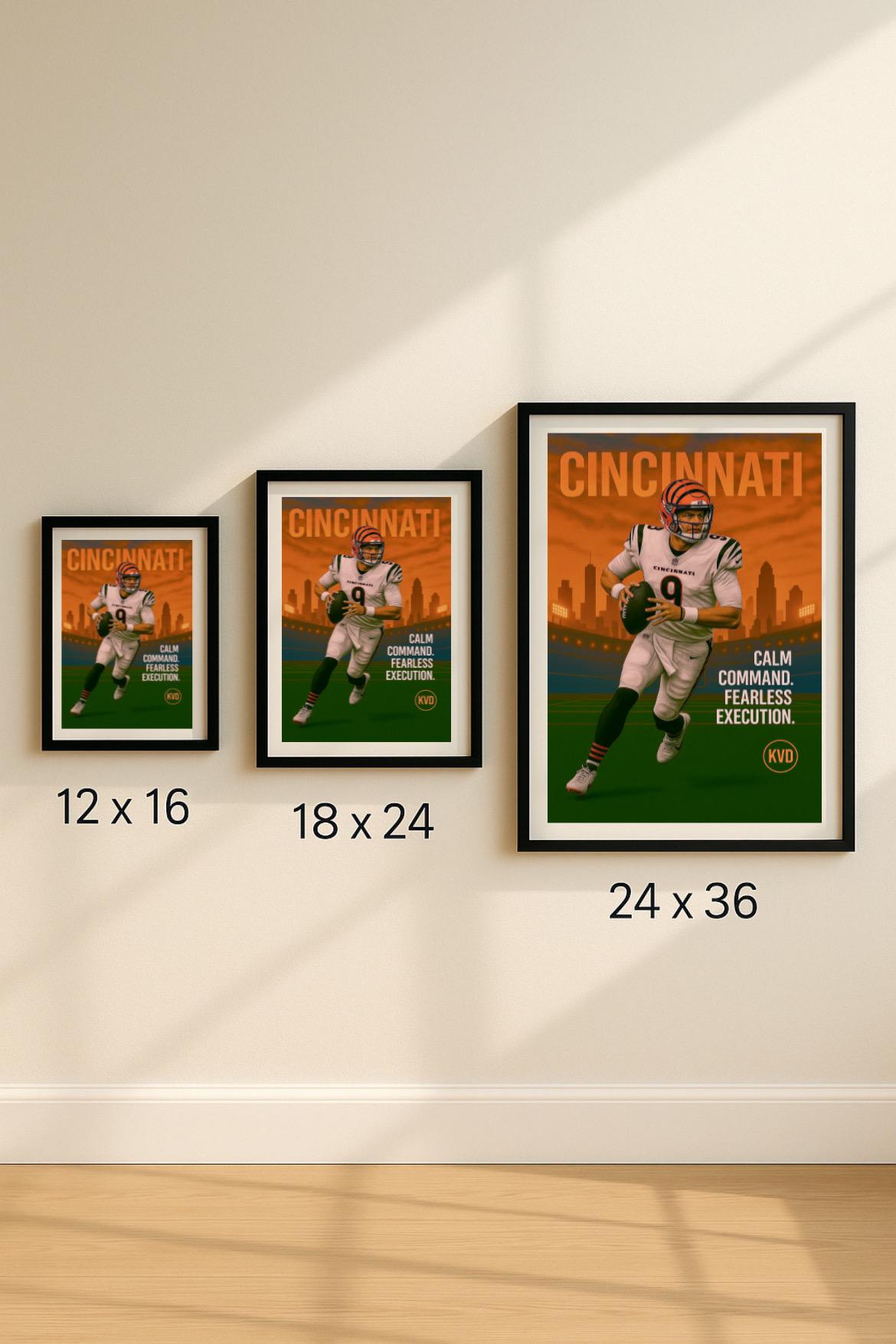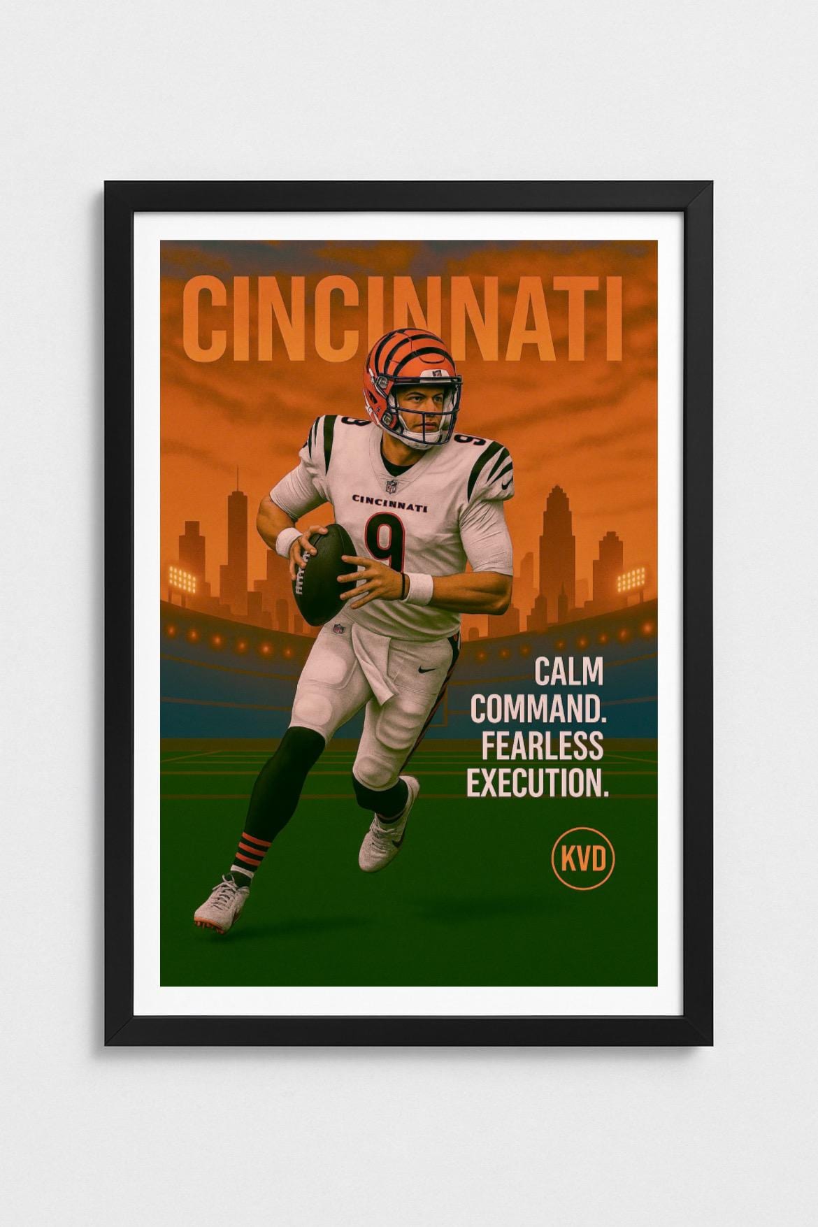 CIN – Cincinnati Pro Football Wall Art “Calm Command. Fearless Execution.” | Pro Football Sports Decor | Sports Fan Gift | Modern Room Art