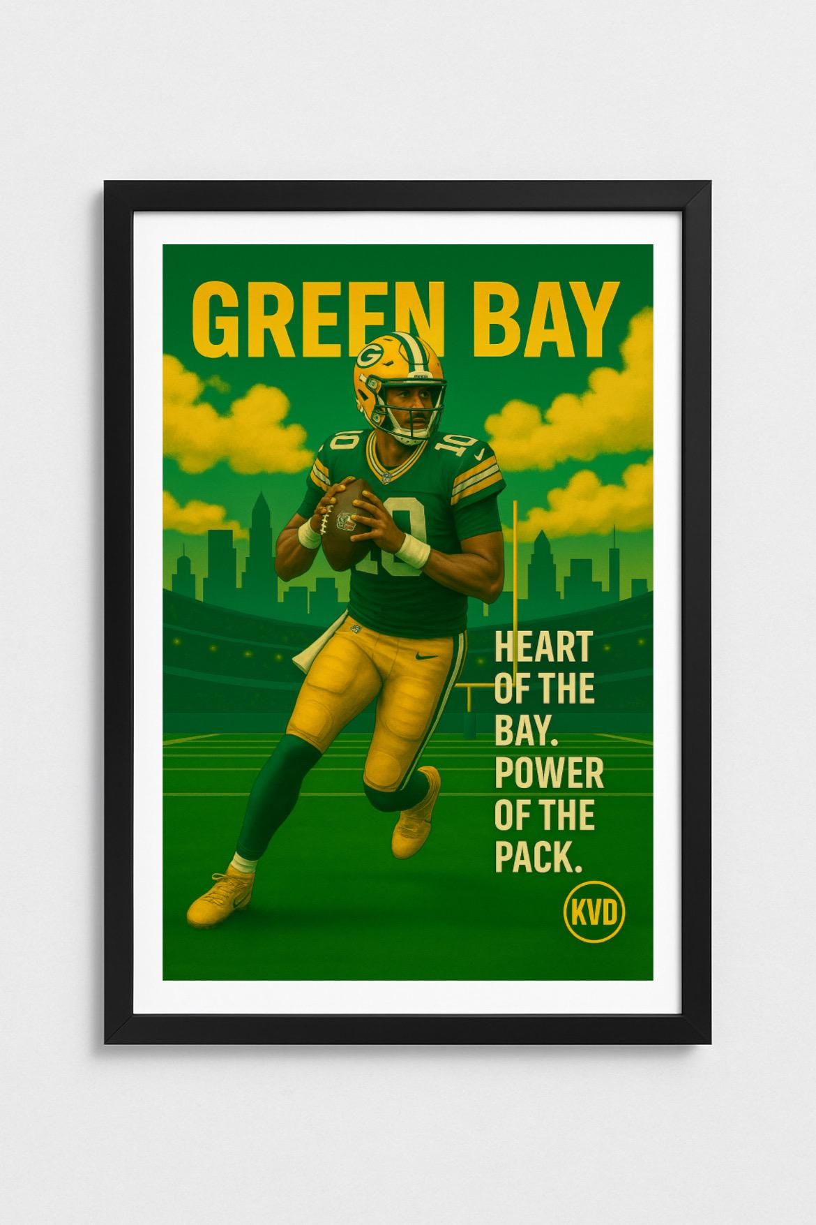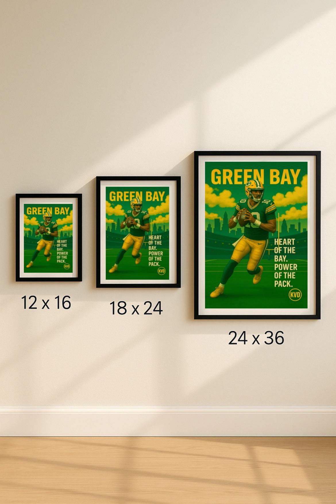 GB – Green Bay Pro Football Wall Art “Heart of the Bay. Power of the Pack.” | Pro Football Sports Decor | Sports Fan Gift | Modern Room Art