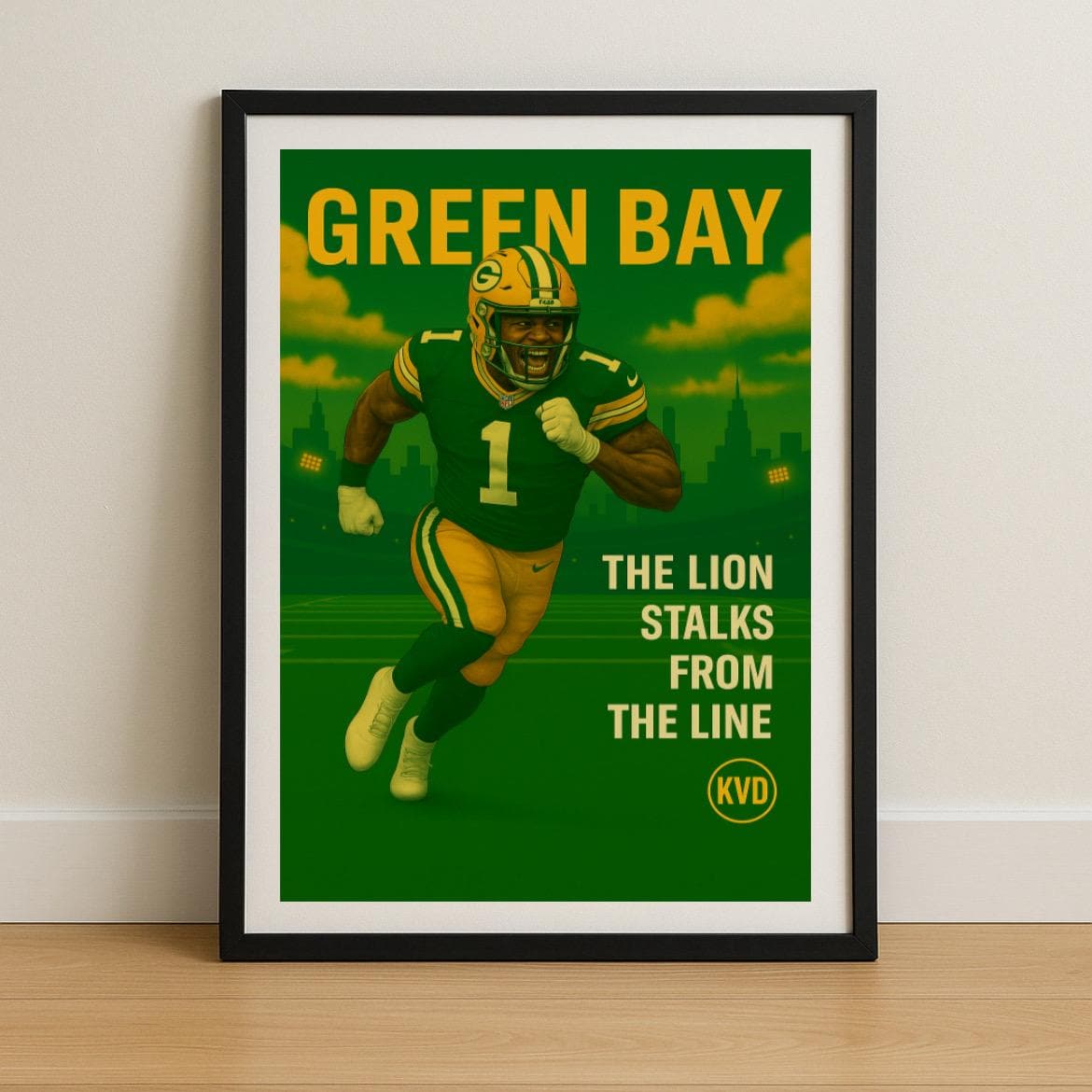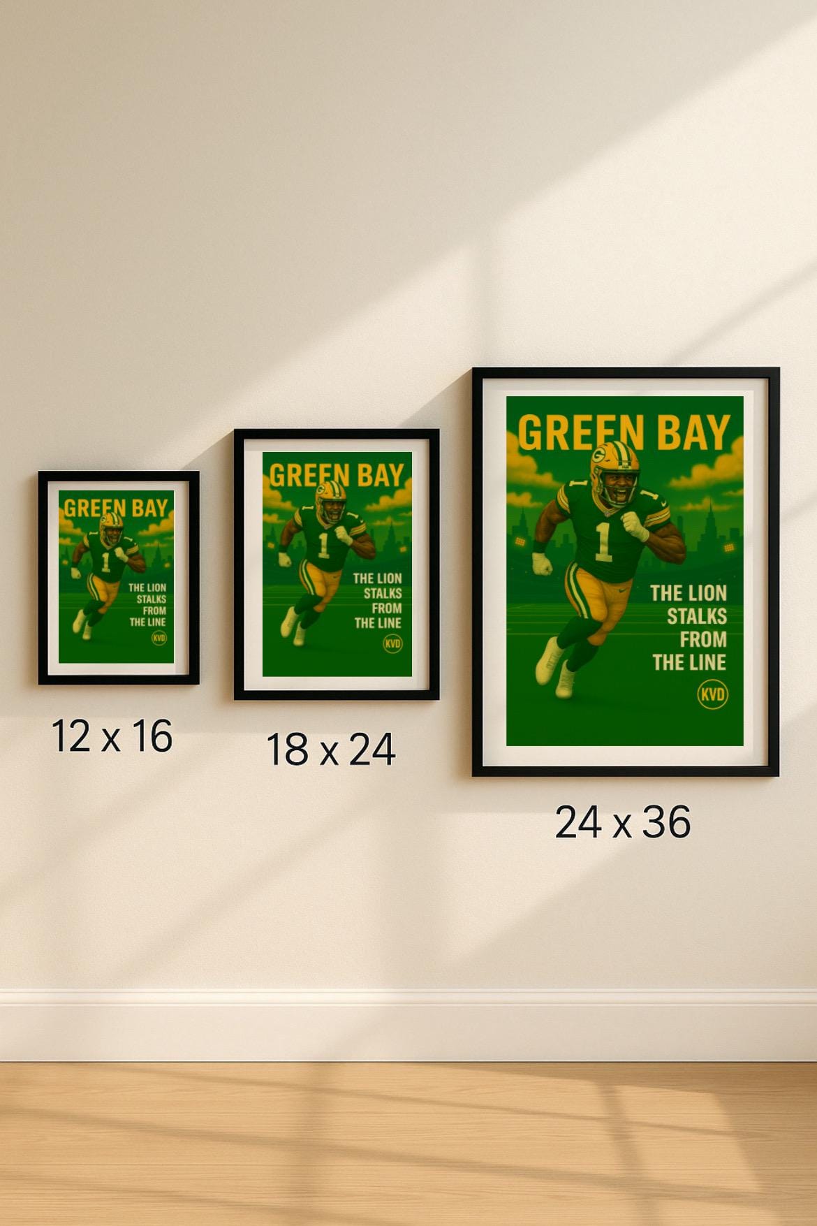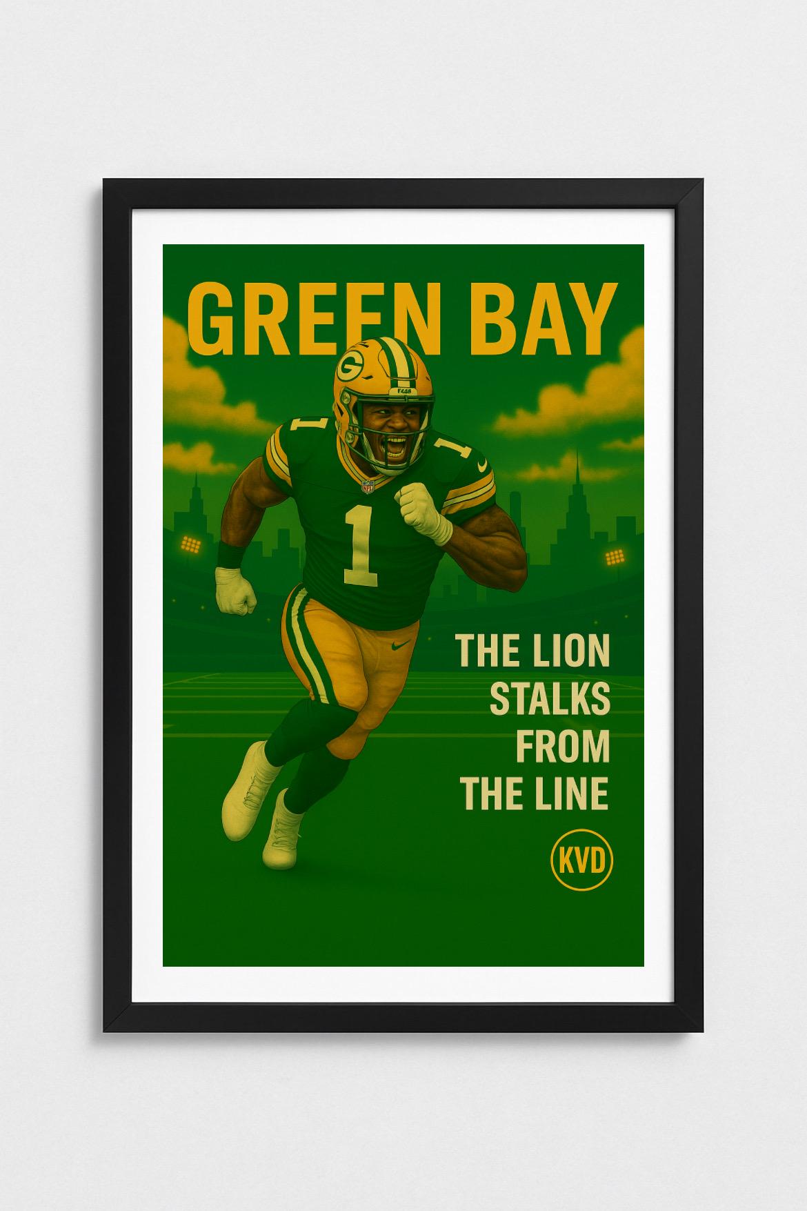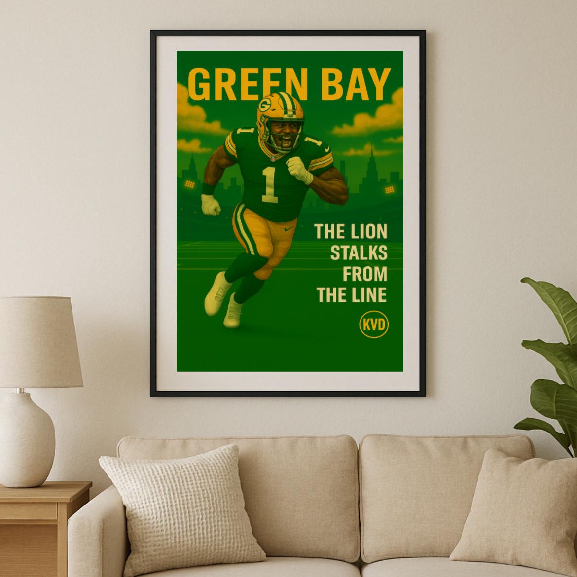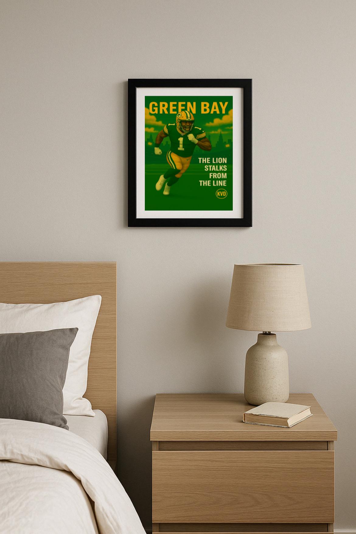 GB – Green Bay Pro Football Wall Art “The Lion Stalks from the Line.” | Pro Football Sports Decor | Sports Fan Gift | Modern Room Art