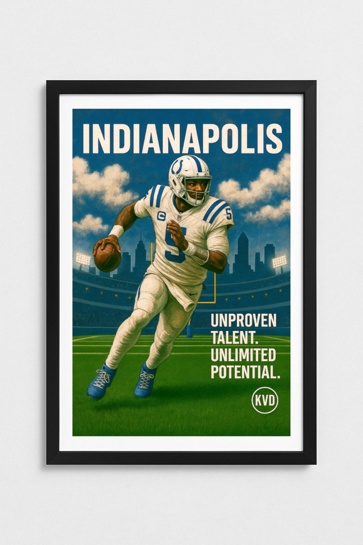 IND – Indianapolis Football Wall Art “Unproven Talent. Unlimited Potential.” | Pro Football Sports Decor | Sports Fan Gift | Modern Room Art
