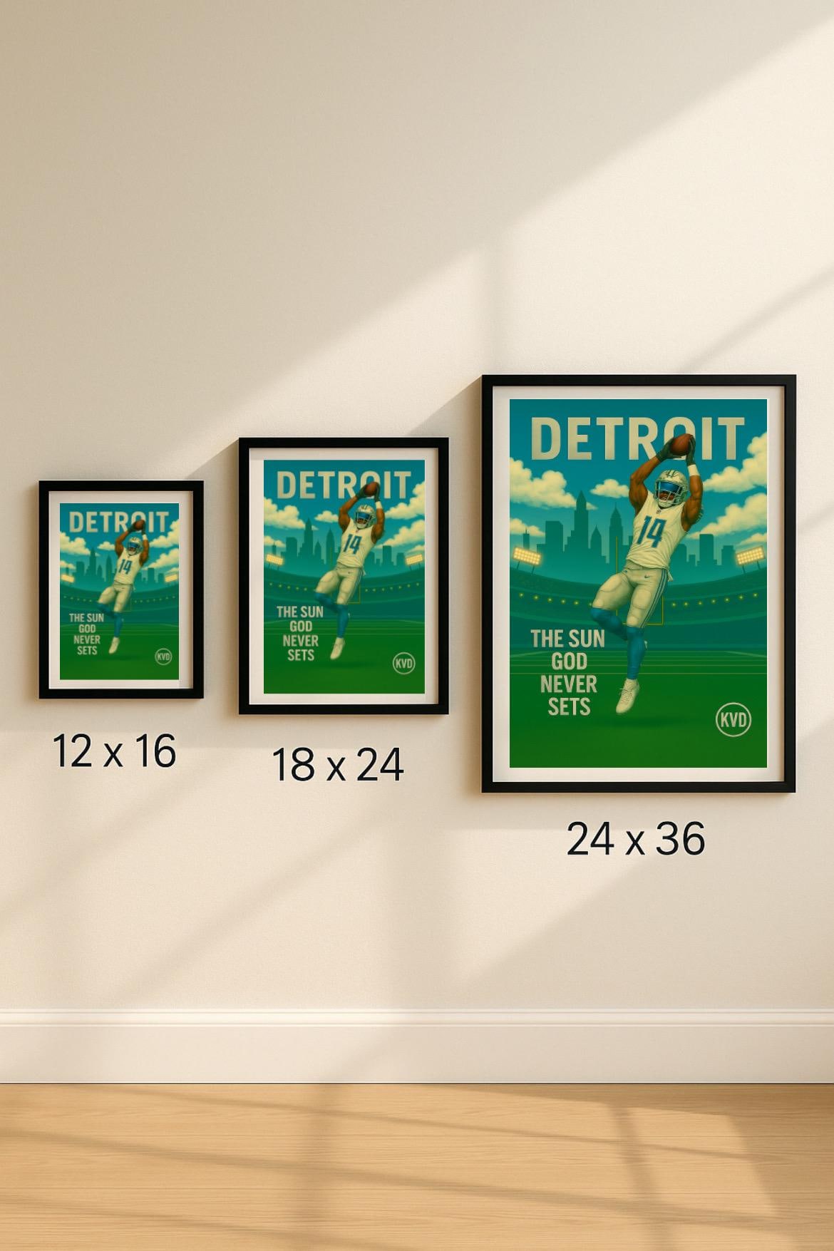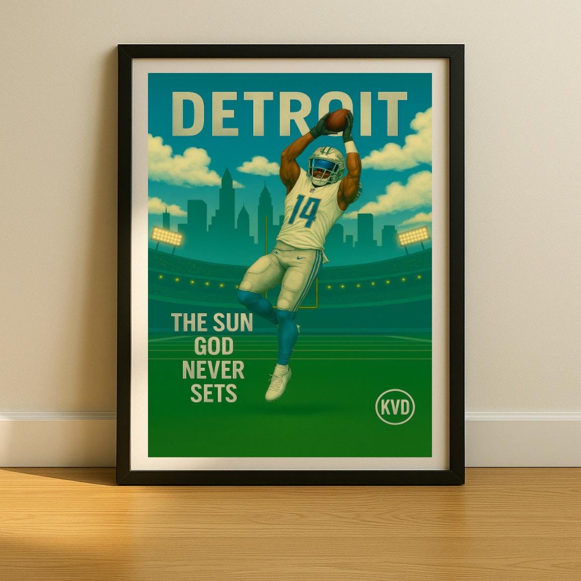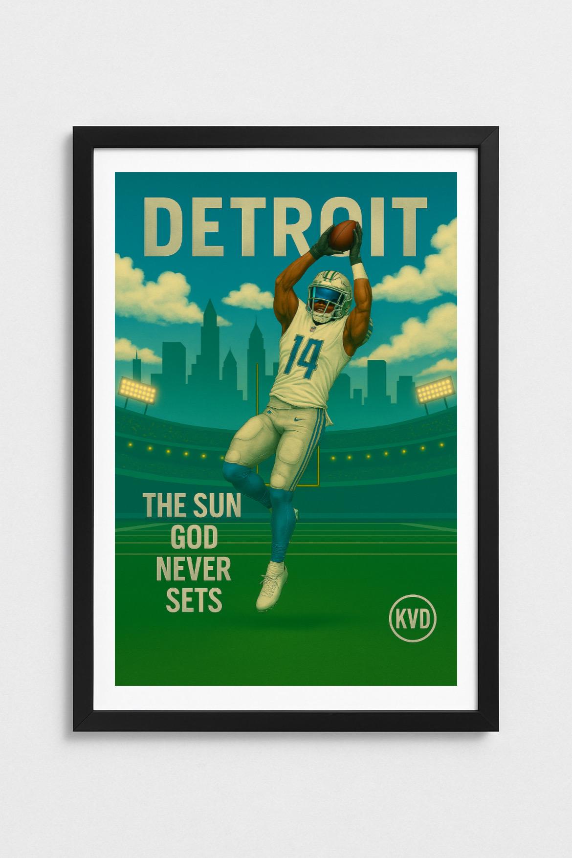 DET – Detroit Pro Football Wall Art “The Sun God Never Sets.” | Pro Football Sports Decor | Sports Fan Gift | Modern Room Art