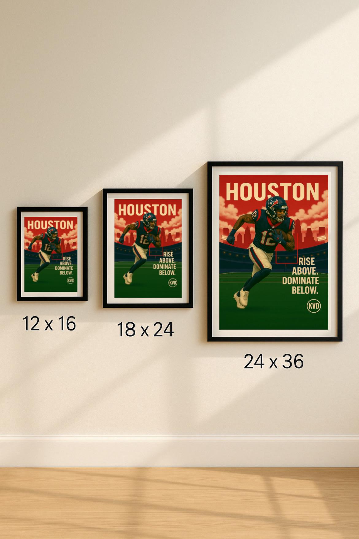 HOU – Houston Pro Football Wall Art “Rise Above. Dominate Below.” | Pro Football Sports Decor | Sports Fan Gift | Modern Room Art