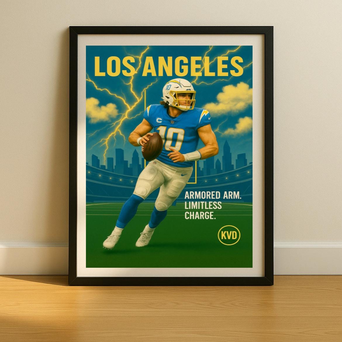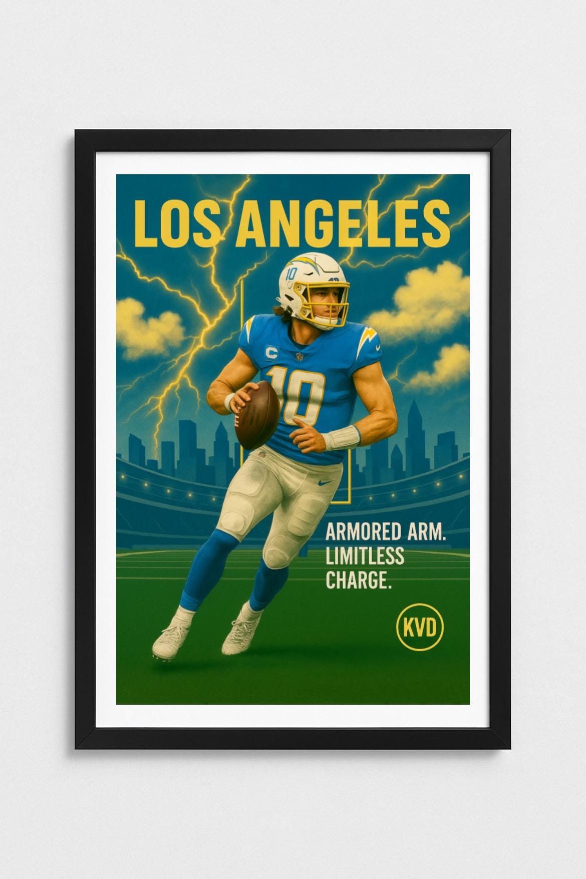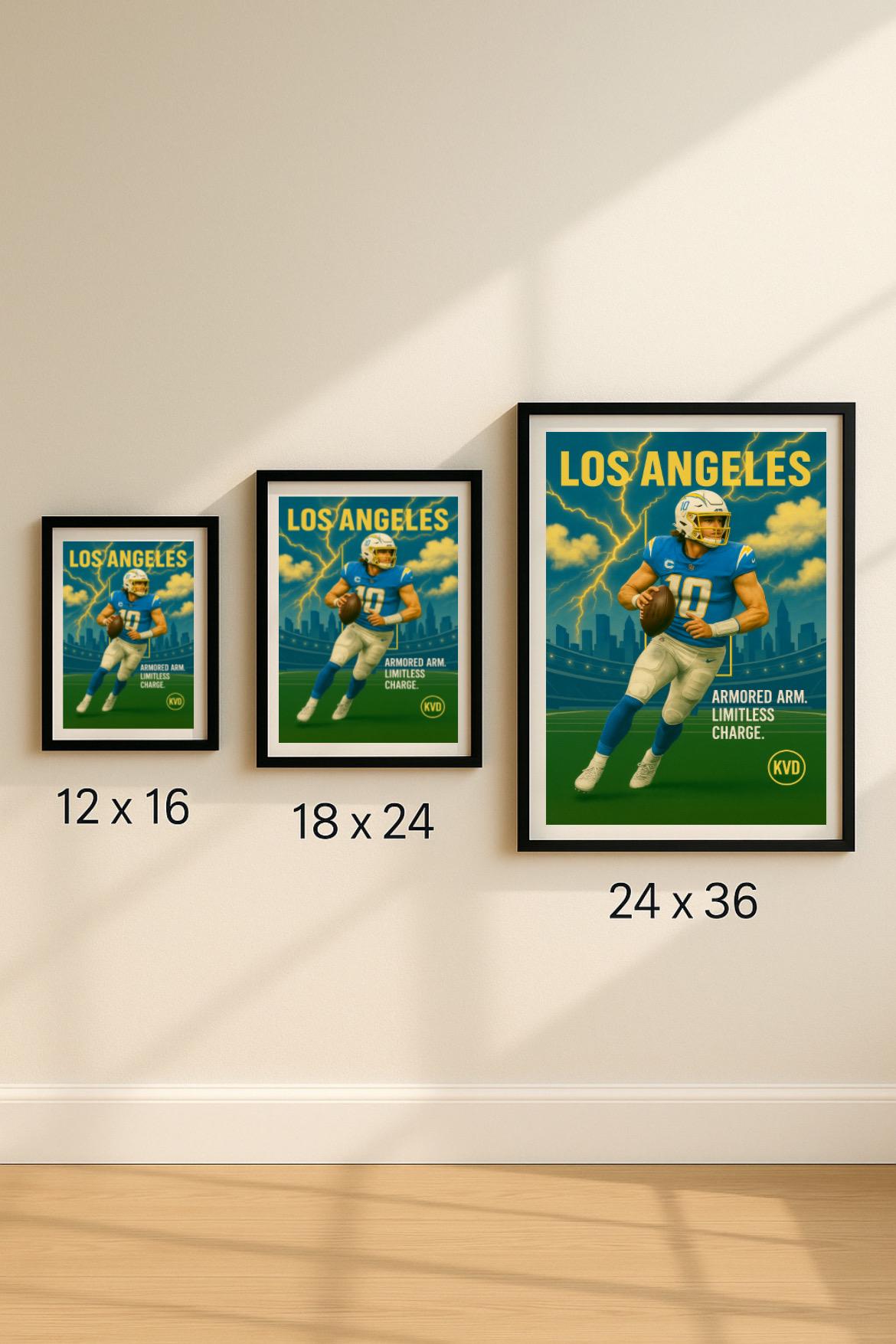 LAC – Los Angeles Pro Football Wall Art “Armored Arm. Limitless Charge.” | Pro Football Sports Decor | Sports Fan Gift | Modern Room Art