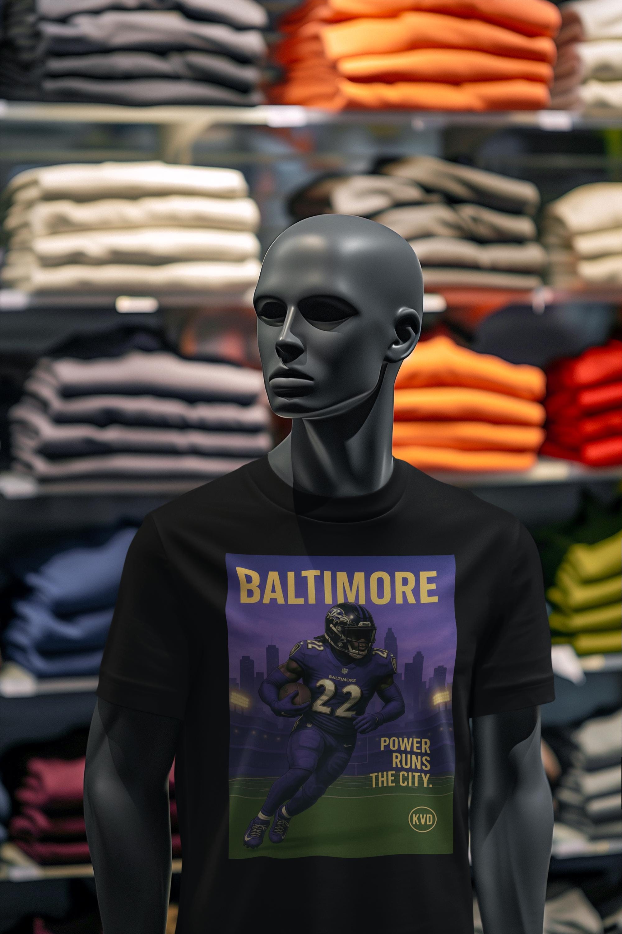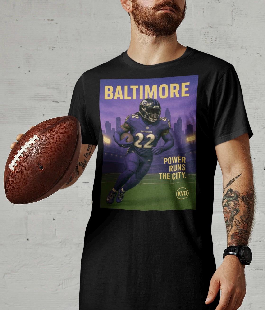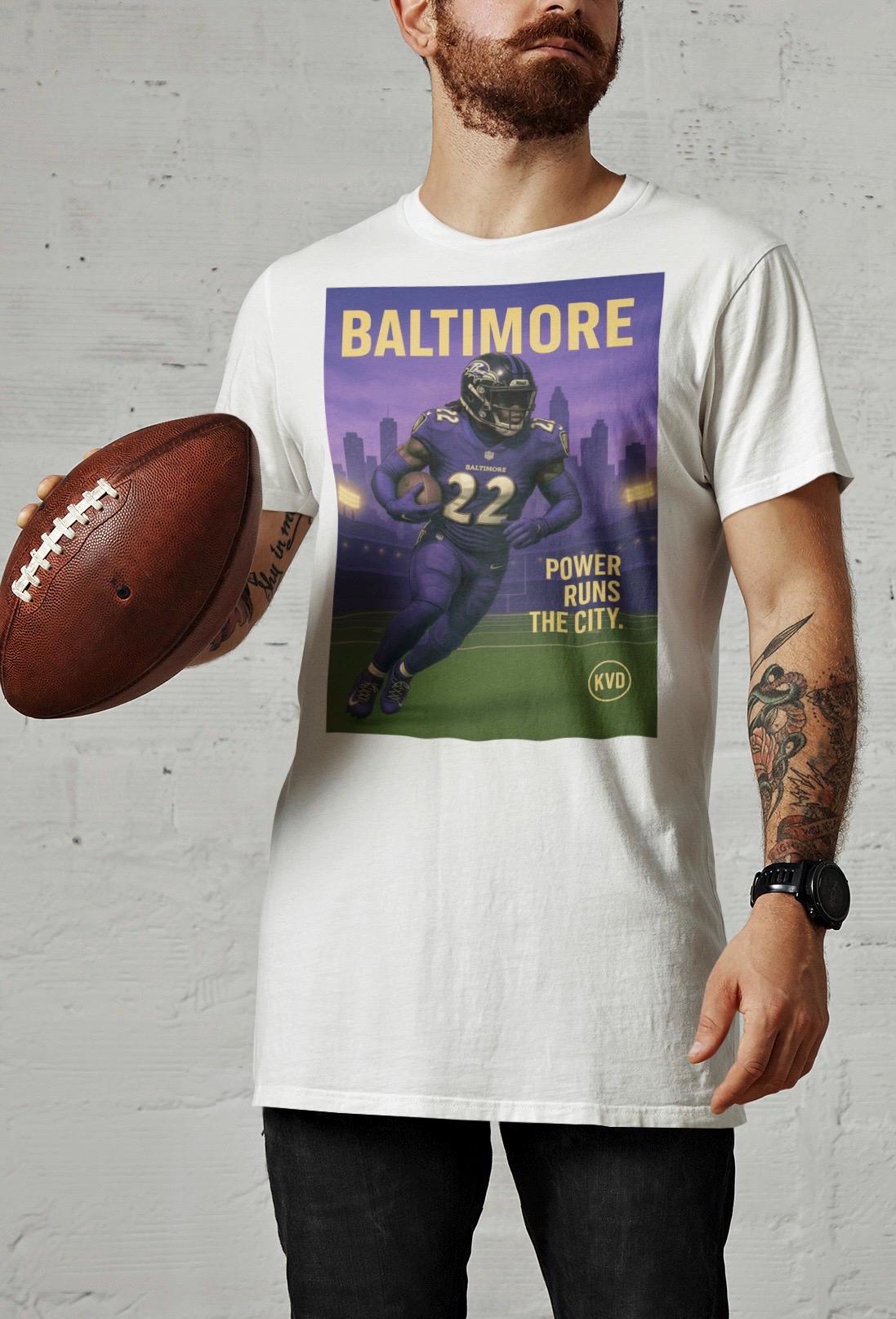 BAL – Baltimore Pro Football Graphic Tee – “Power Runs the City” – Pro Gridiron Streetwear T-Shirt • Urban Graphic Art • Sports Fan Gift