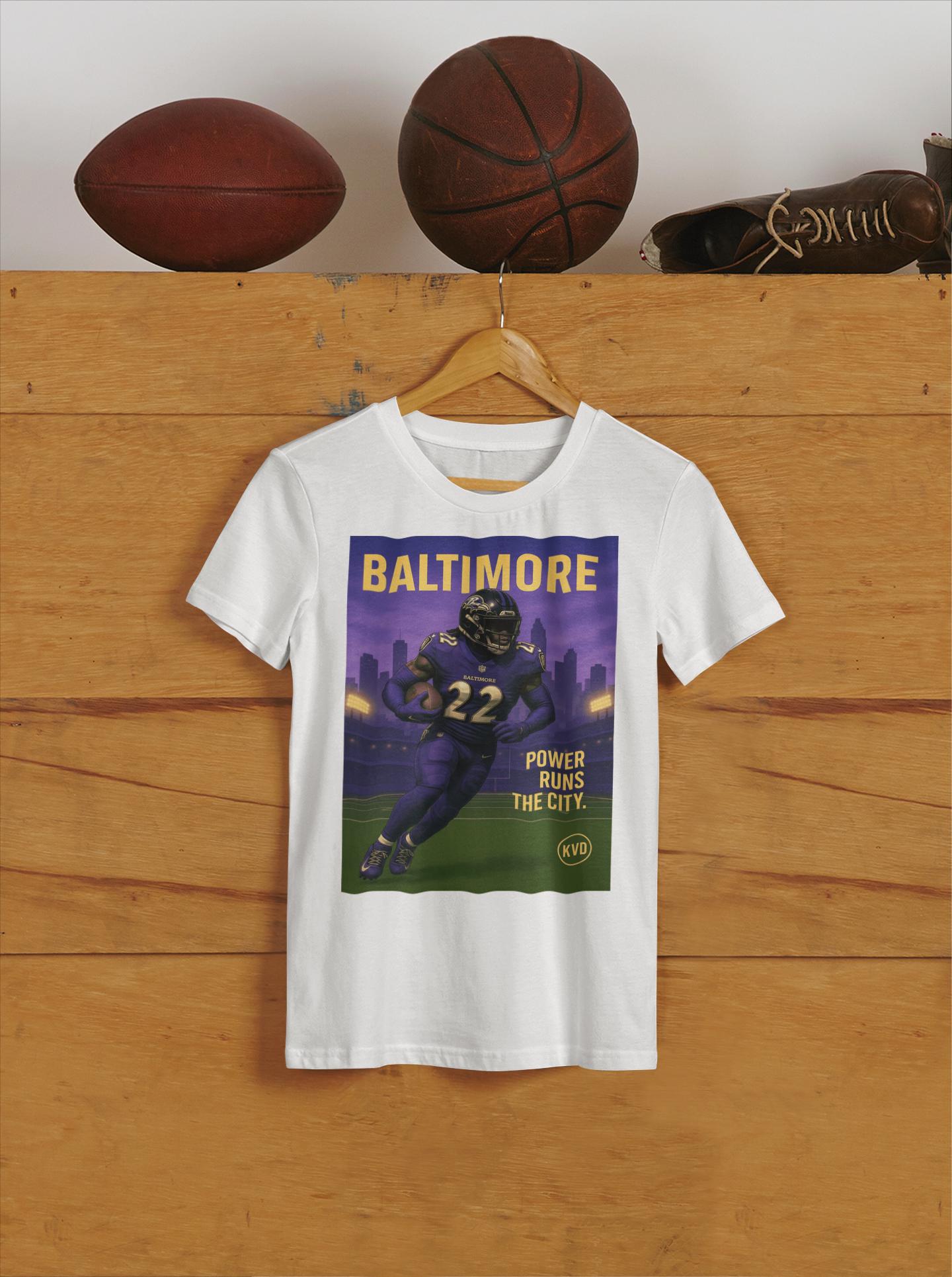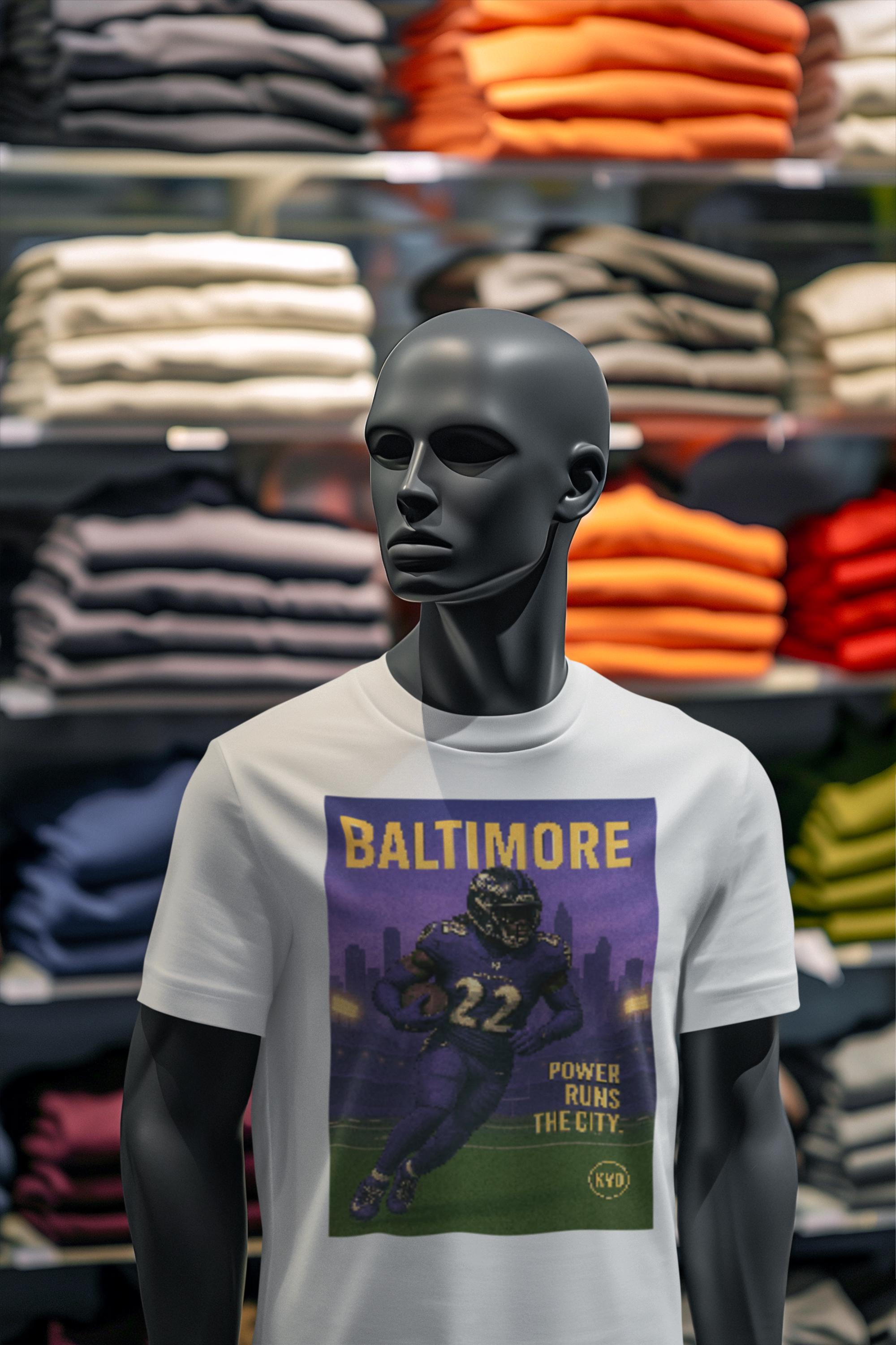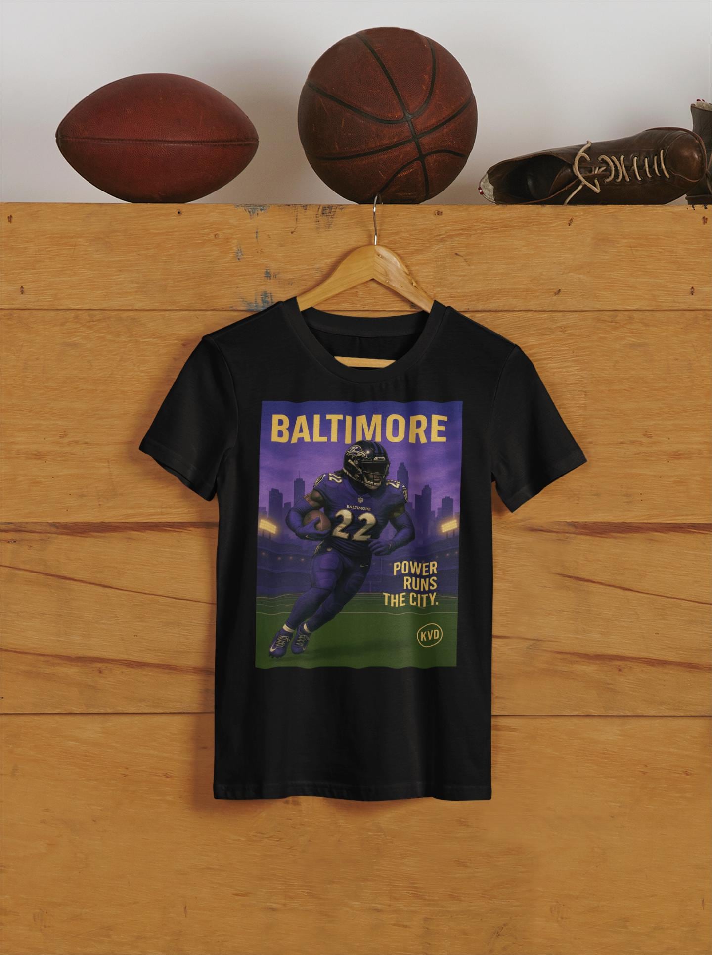 BAL – Baltimore Pro Football Graphic Tee – “Power Runs the City” – Pro Gridiron Streetwear T-Shirt • Urban Graphic Art • Sports Fan Gift