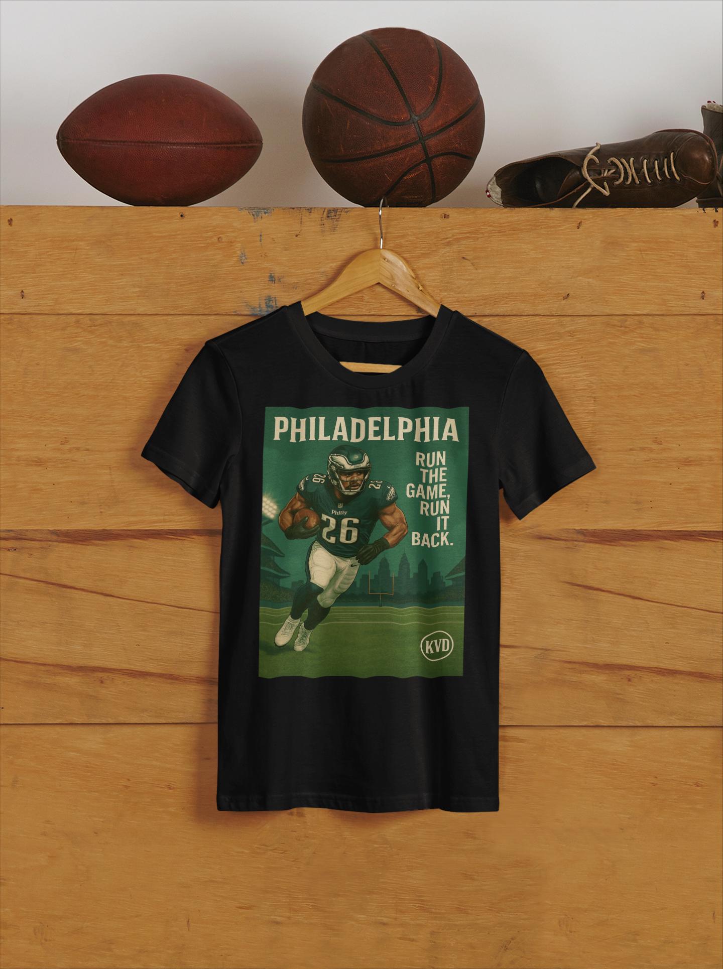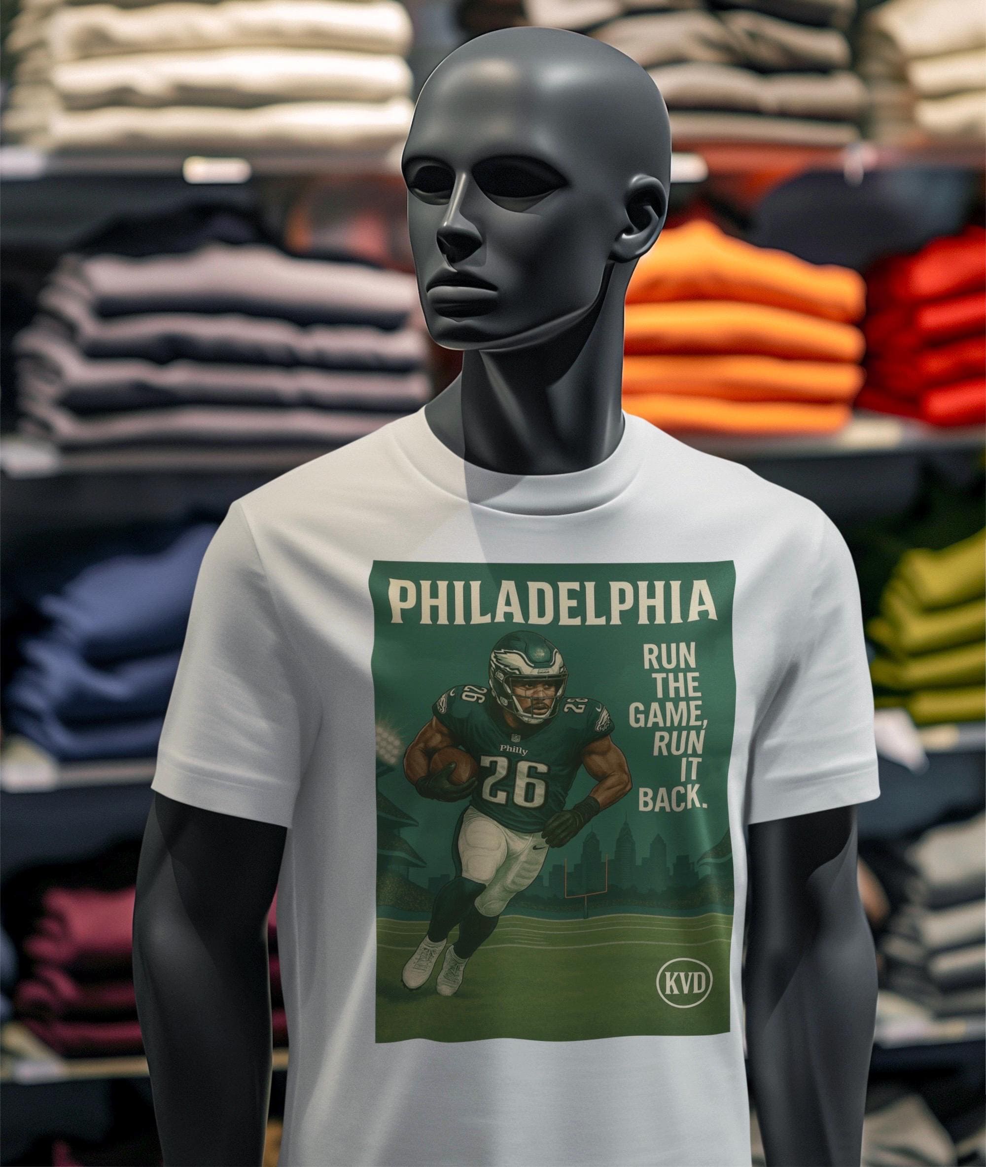PHI – Philadelphia Football Graphic Tee – “Run the Game, Run It Back” – Pro Gridiron Streetwear T-Shirt • Football Fan Gift