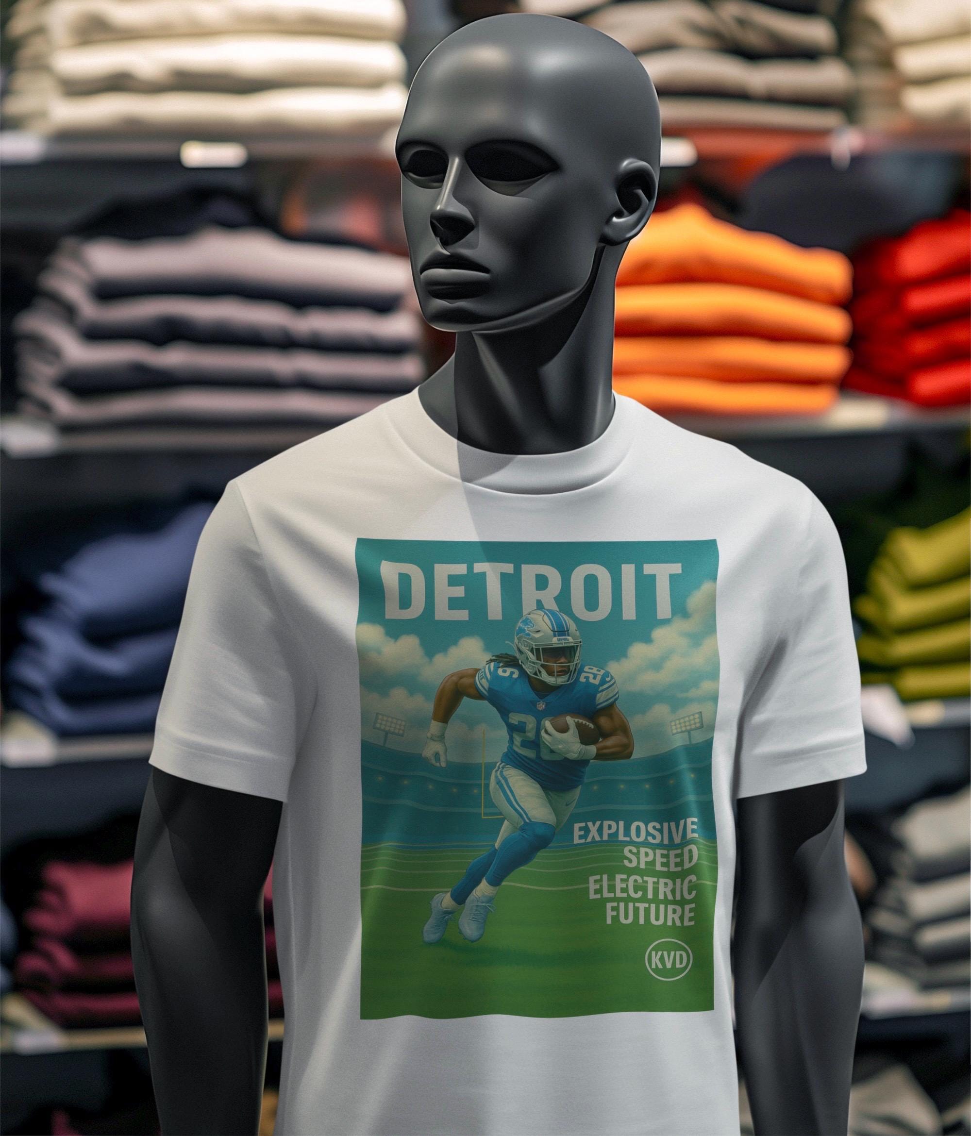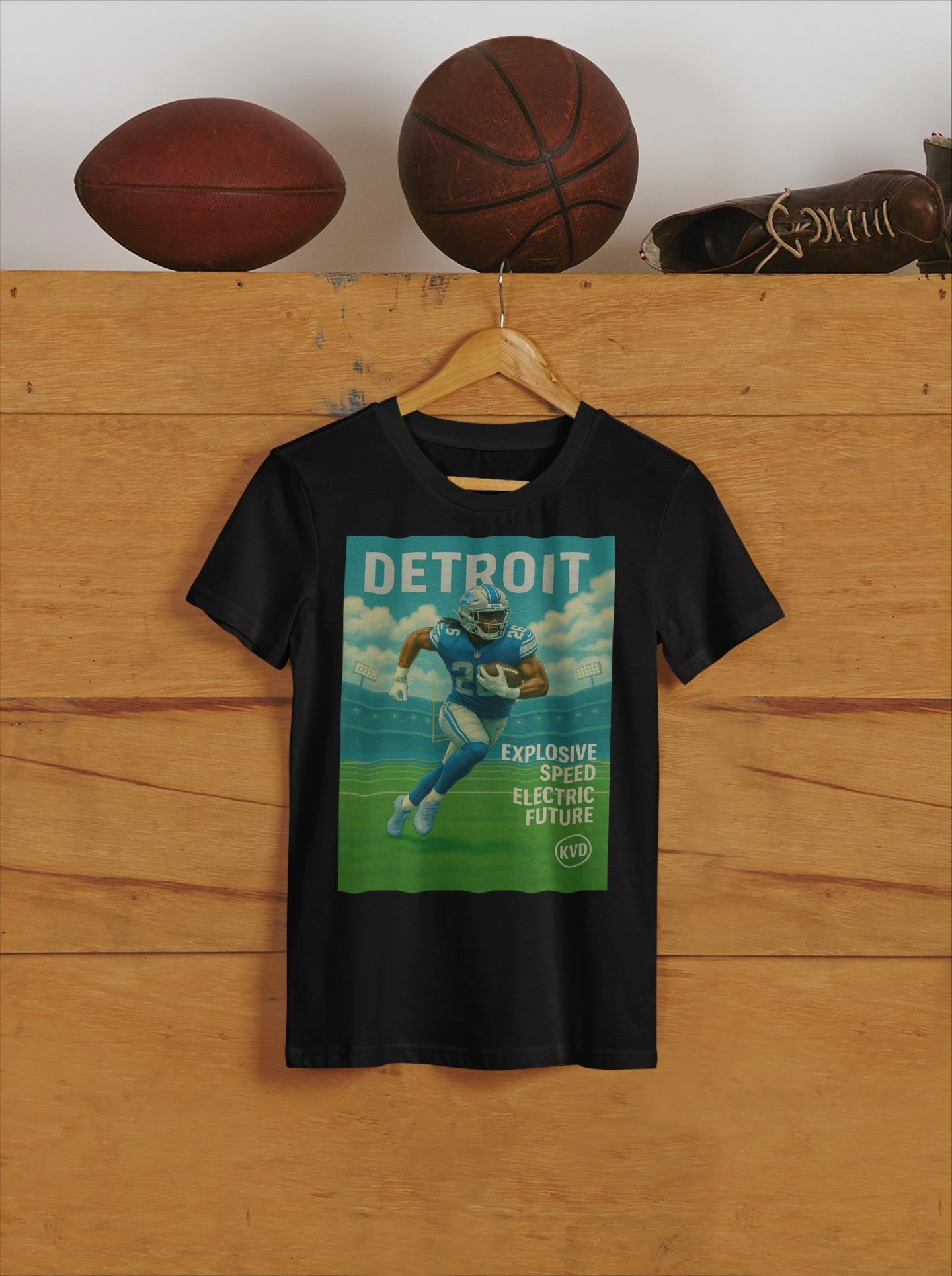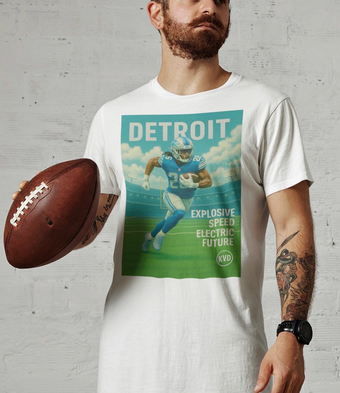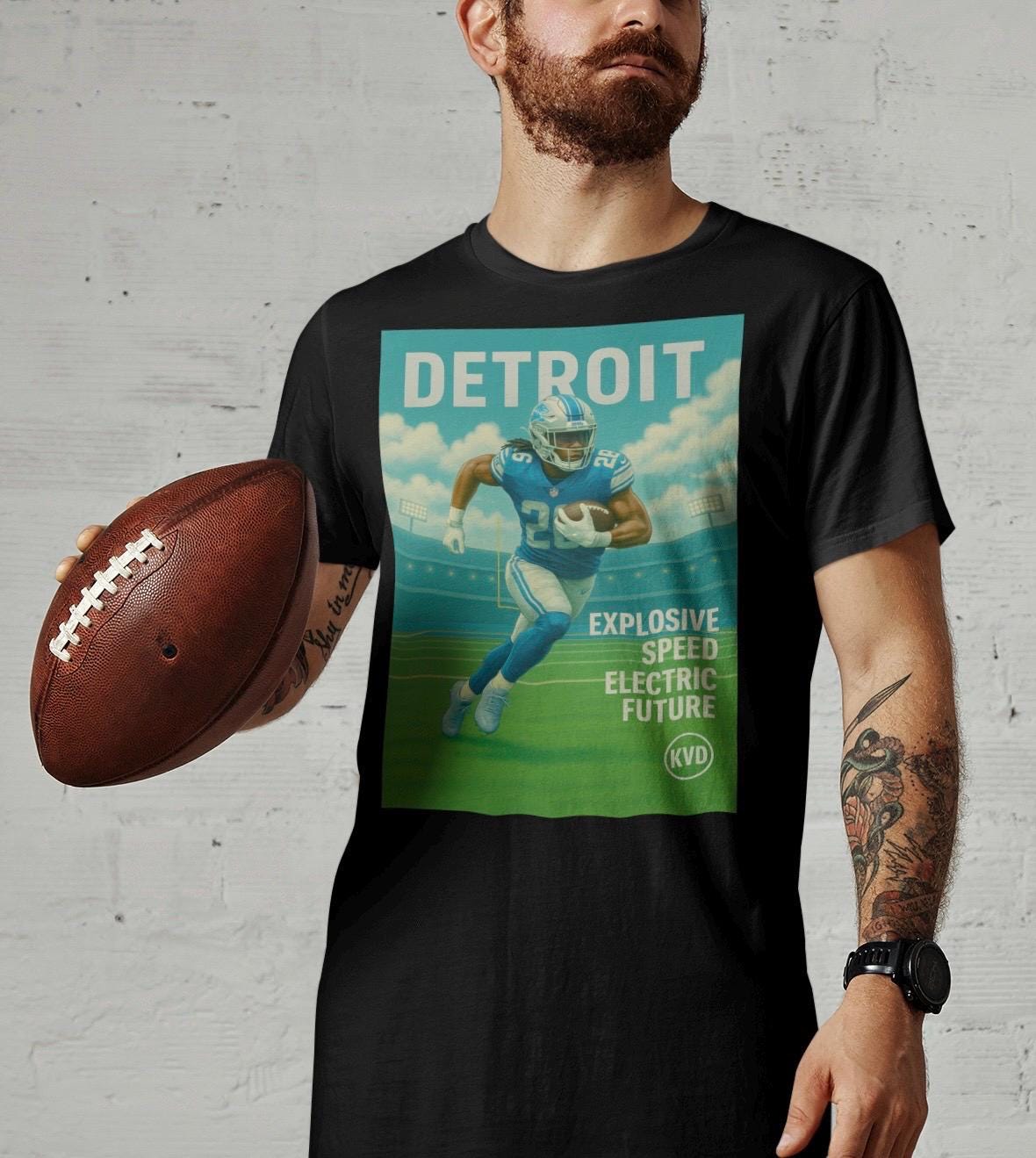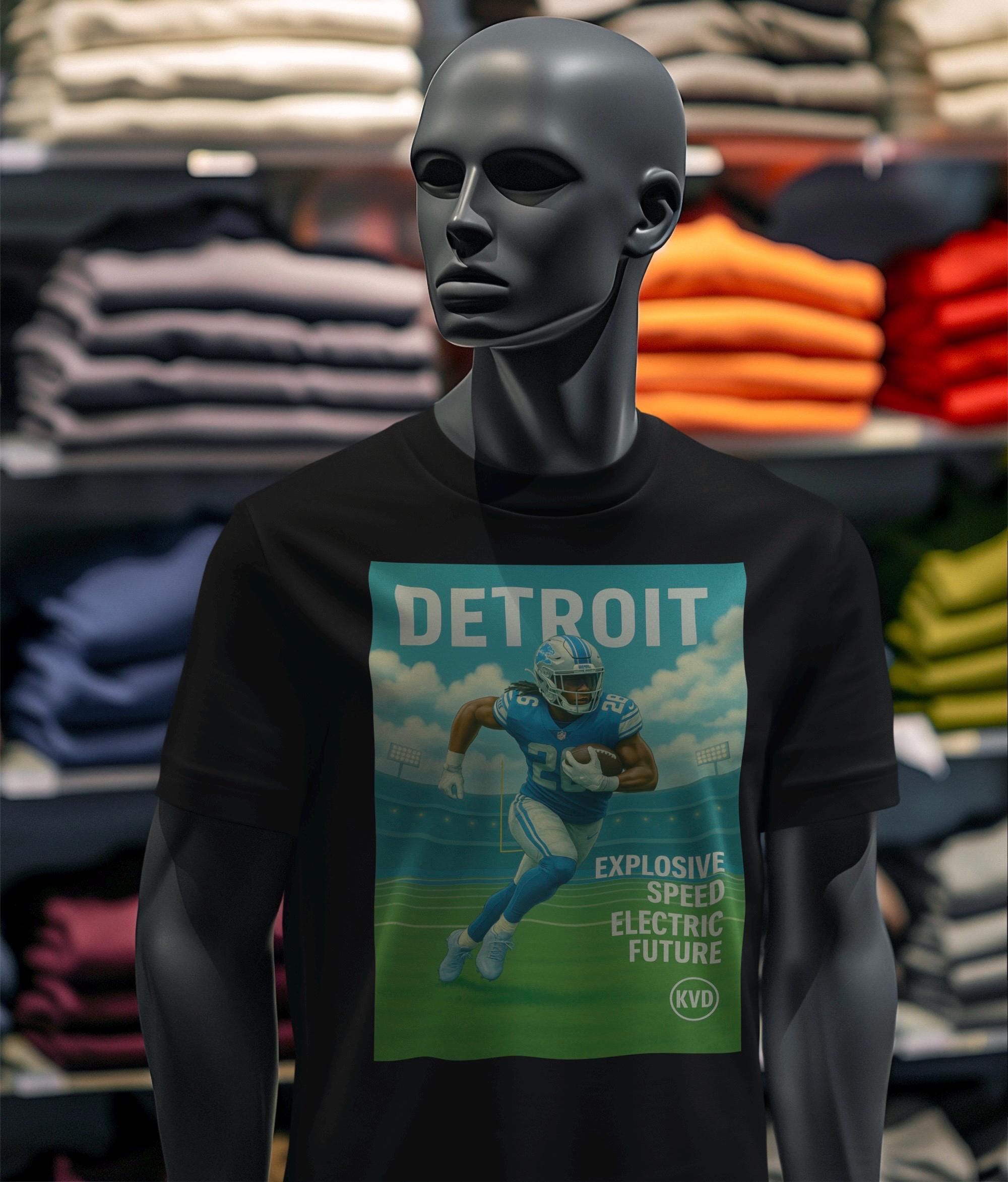 DET – Detroit Football Graphic Tee – “Explosive Speed. Electric Future.” – Pro Gridiron Streetwear T-Shirt • Urban Graphic Art • Sports Gift