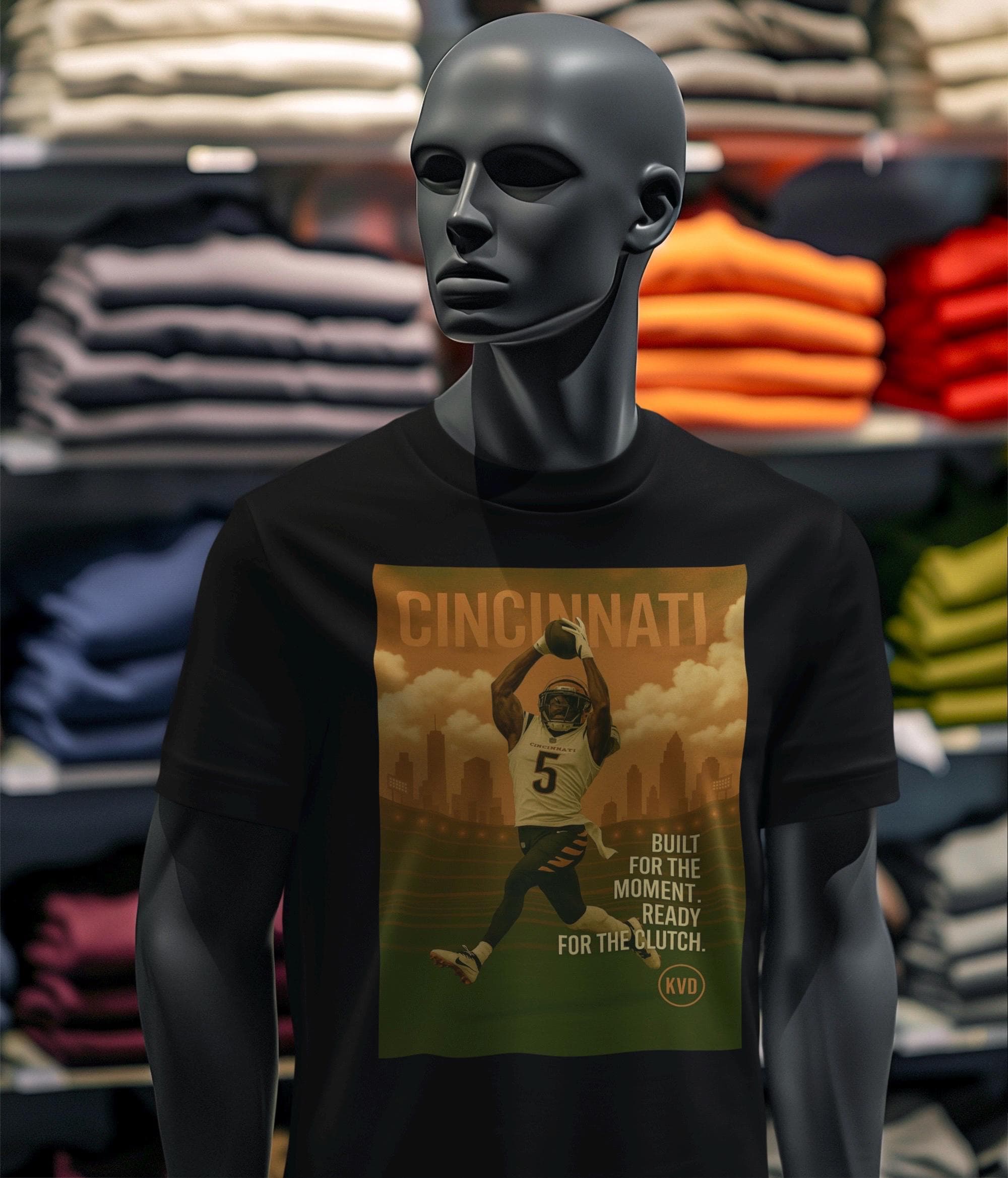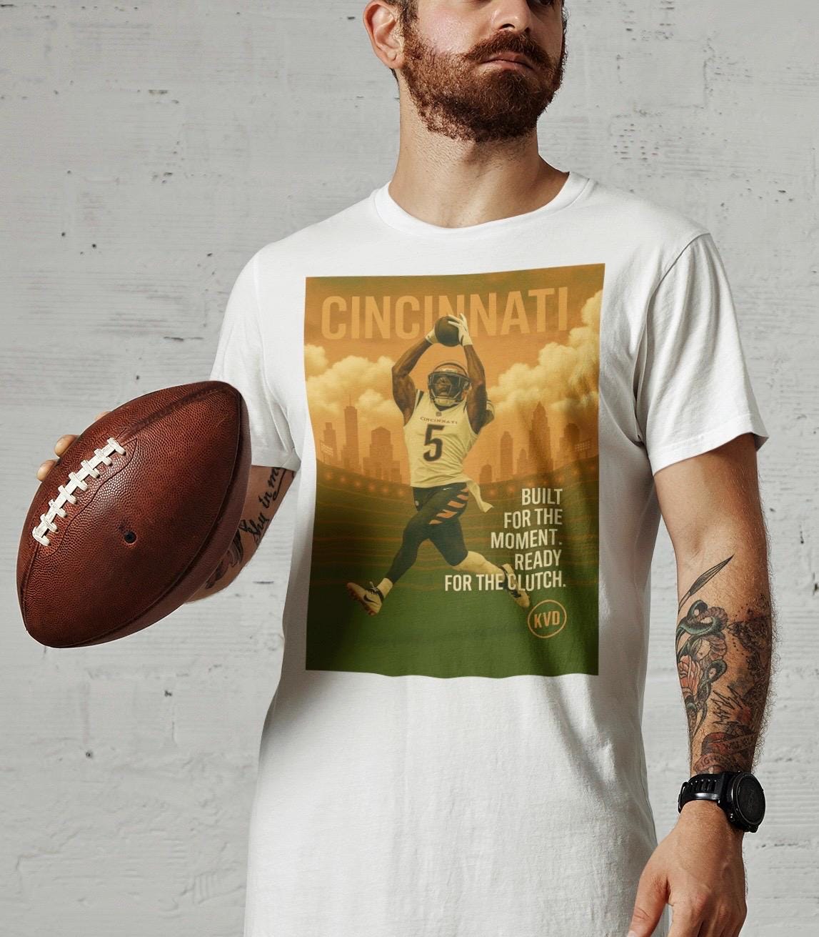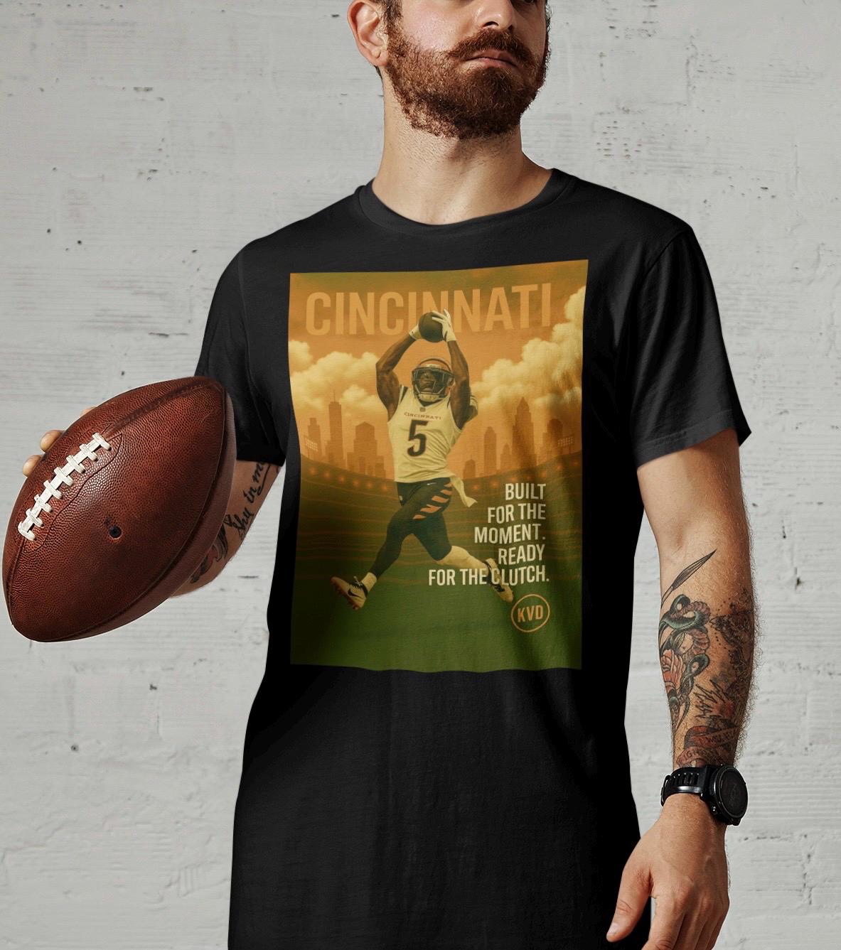 Cincinnati Football T-Shirt – “Built for the Moment. Ready for the Clutch.” | Pro Football Graphic Tee | Sports Fan Gift