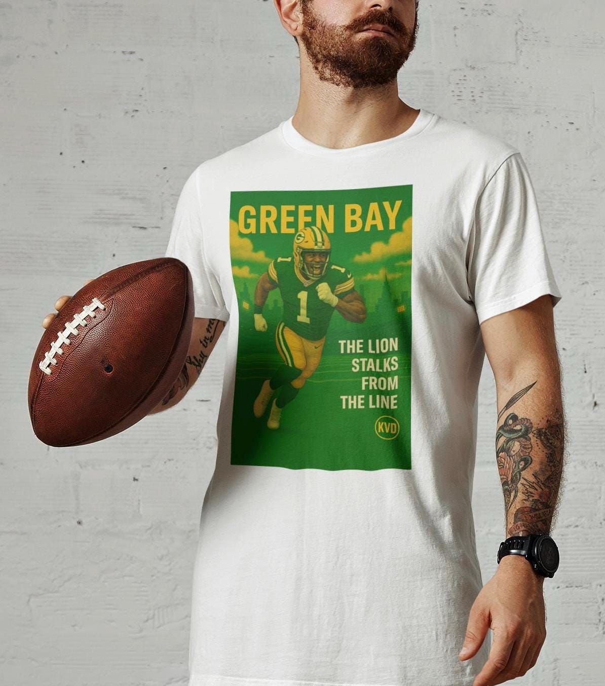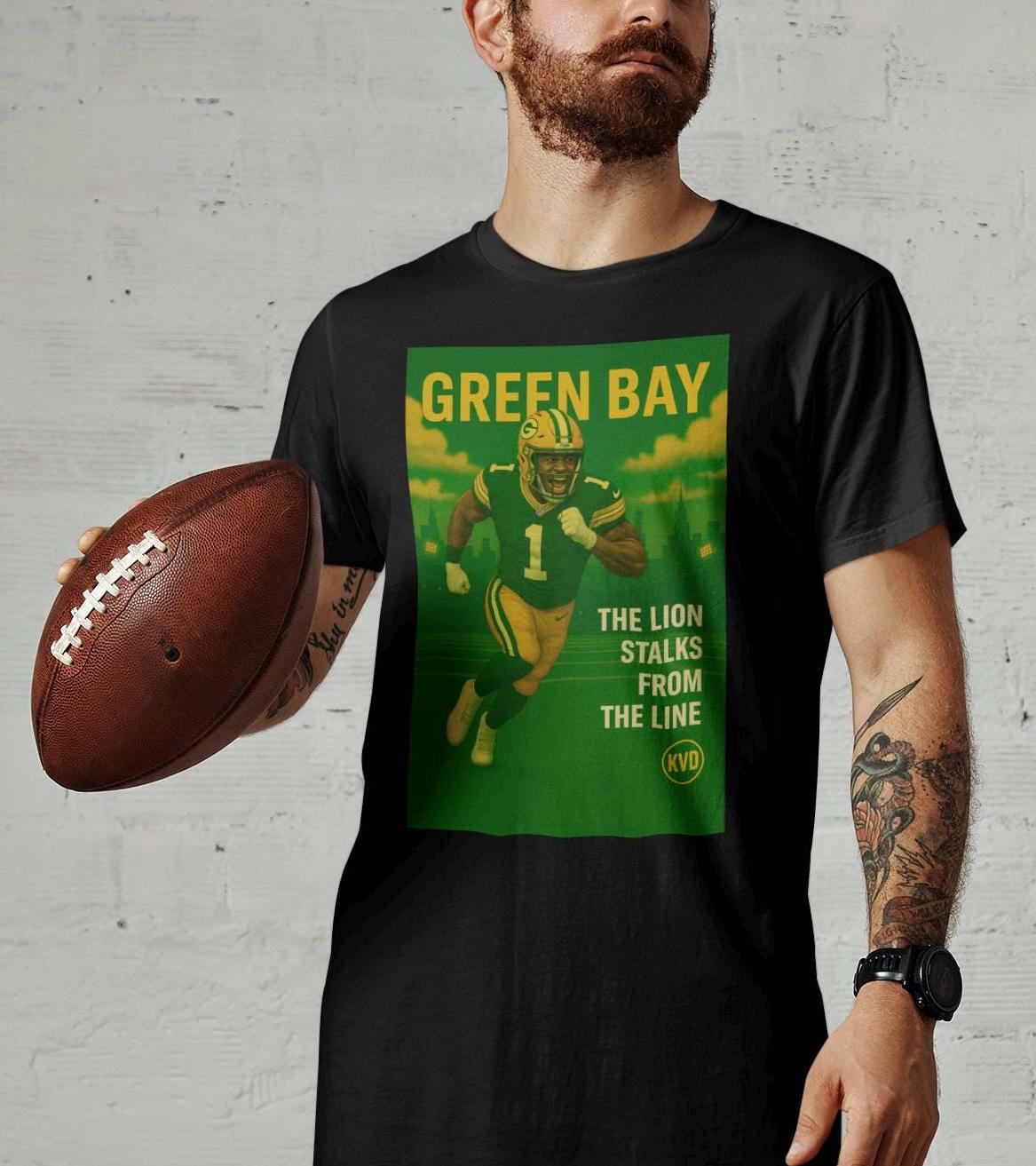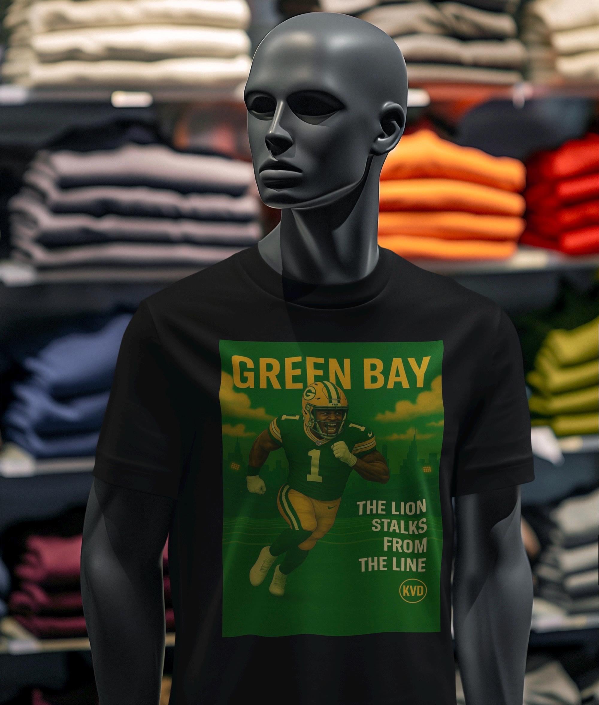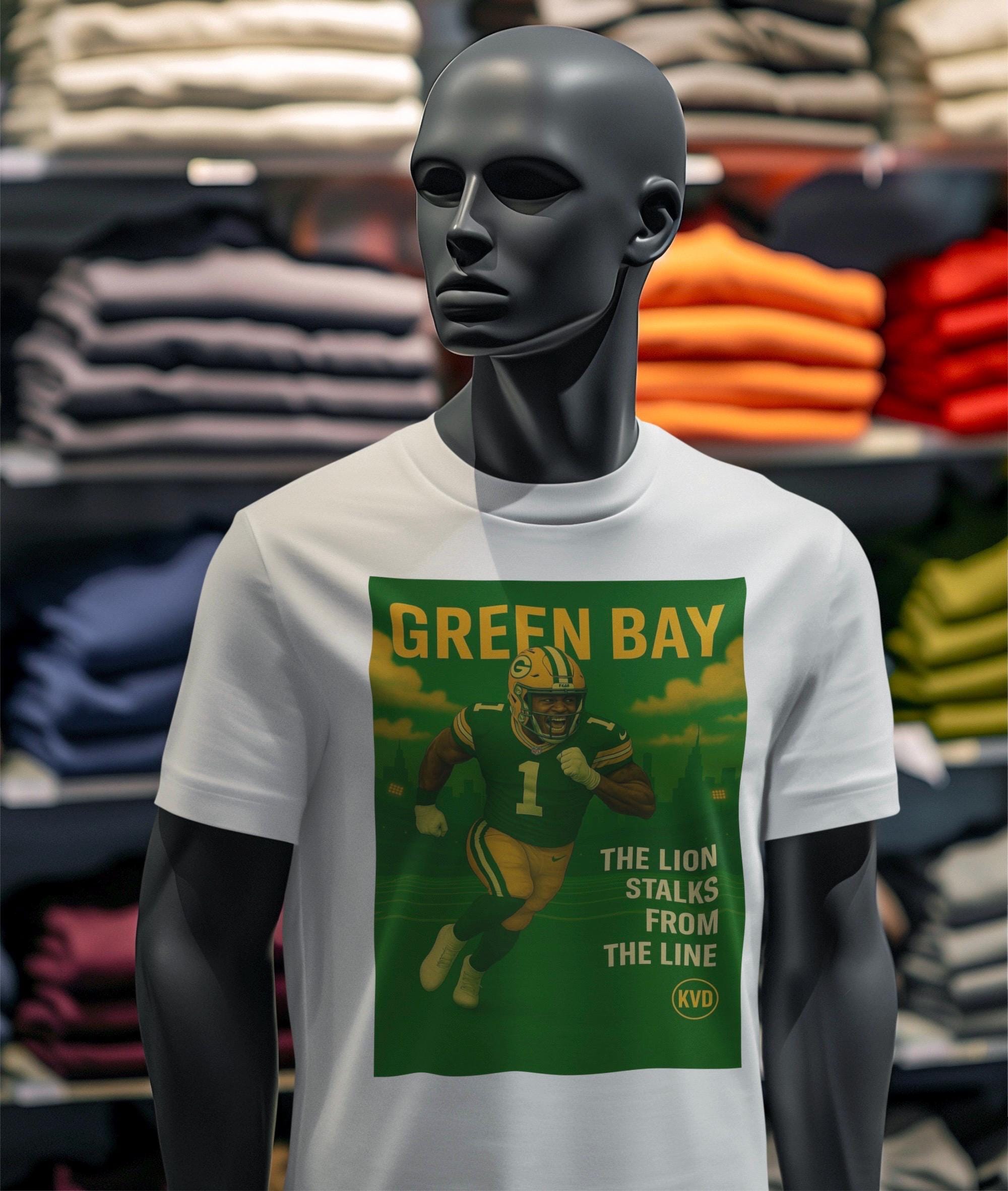 GB – Green Bay Football Graphic Tee – “The Lion Stalks the Line” – Pro Gridiron Streetwear T-Shirt • Urban Graphic Art • Sports Fan Gift