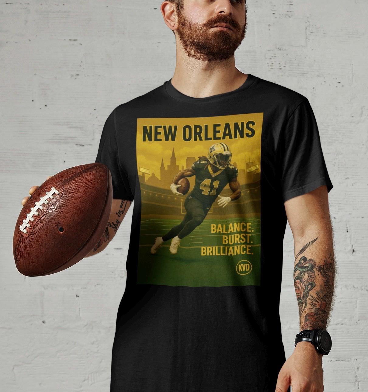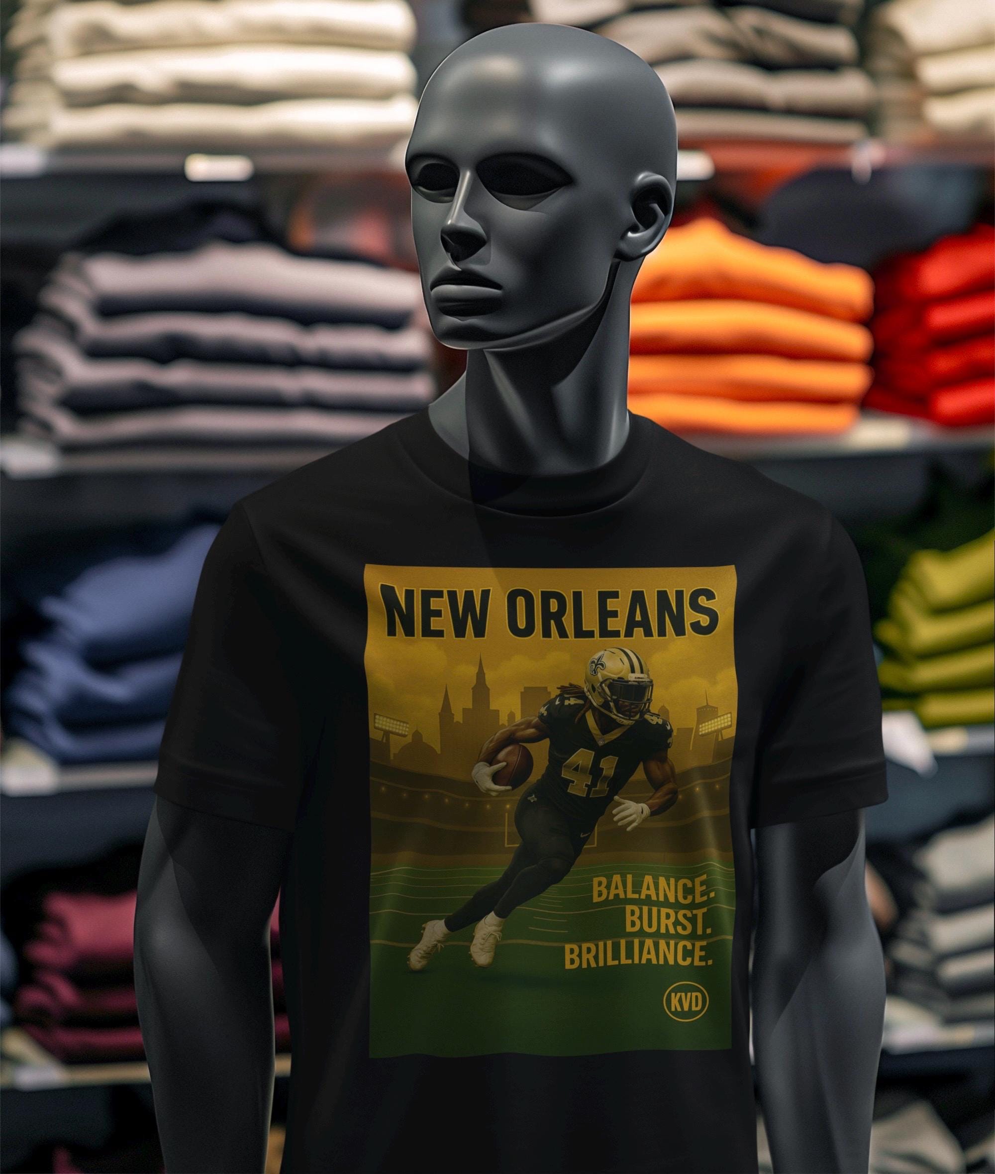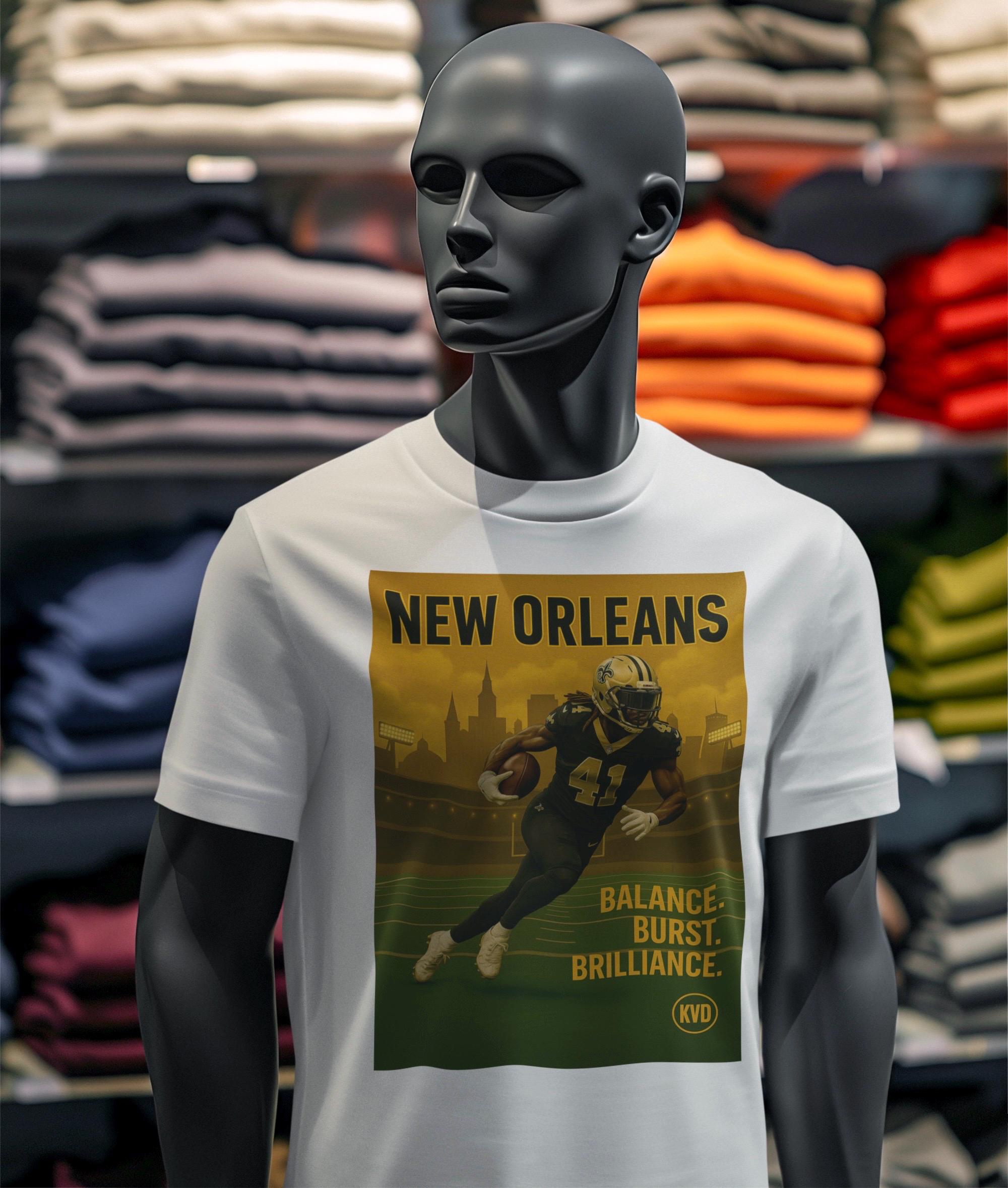 NOLA – New Orleans Football Graphic Tee – “Balance. Burst. Brilliance.” – Pro Gridiron Streetwear T-Shirt • Football Fan Gift