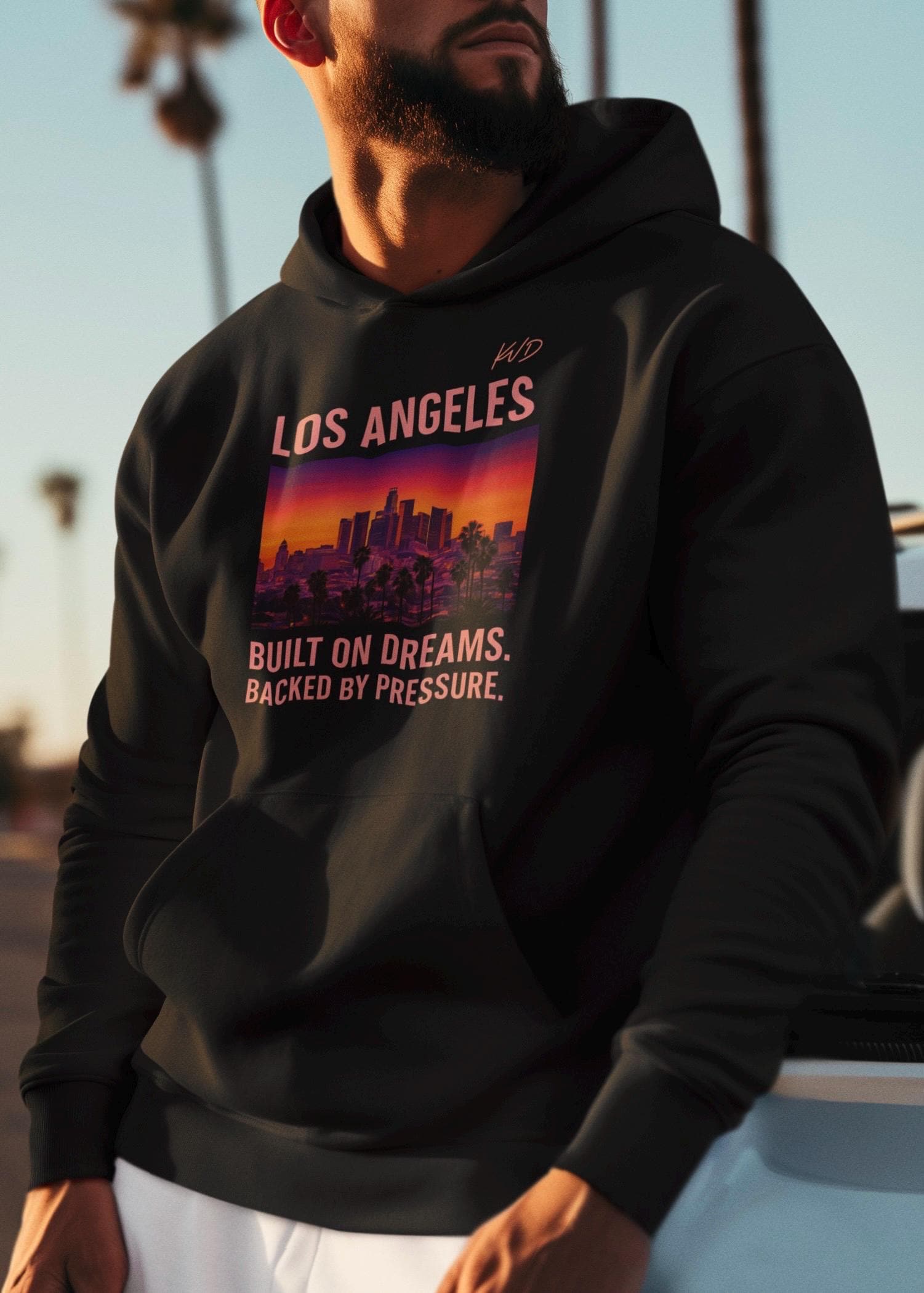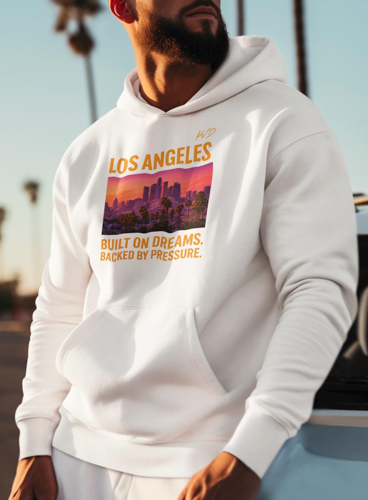 Los Angeles Hoodie – City Skyline sweatshirt – Urban Streetwear – “Built on Dreams. Backed by Pressure.”