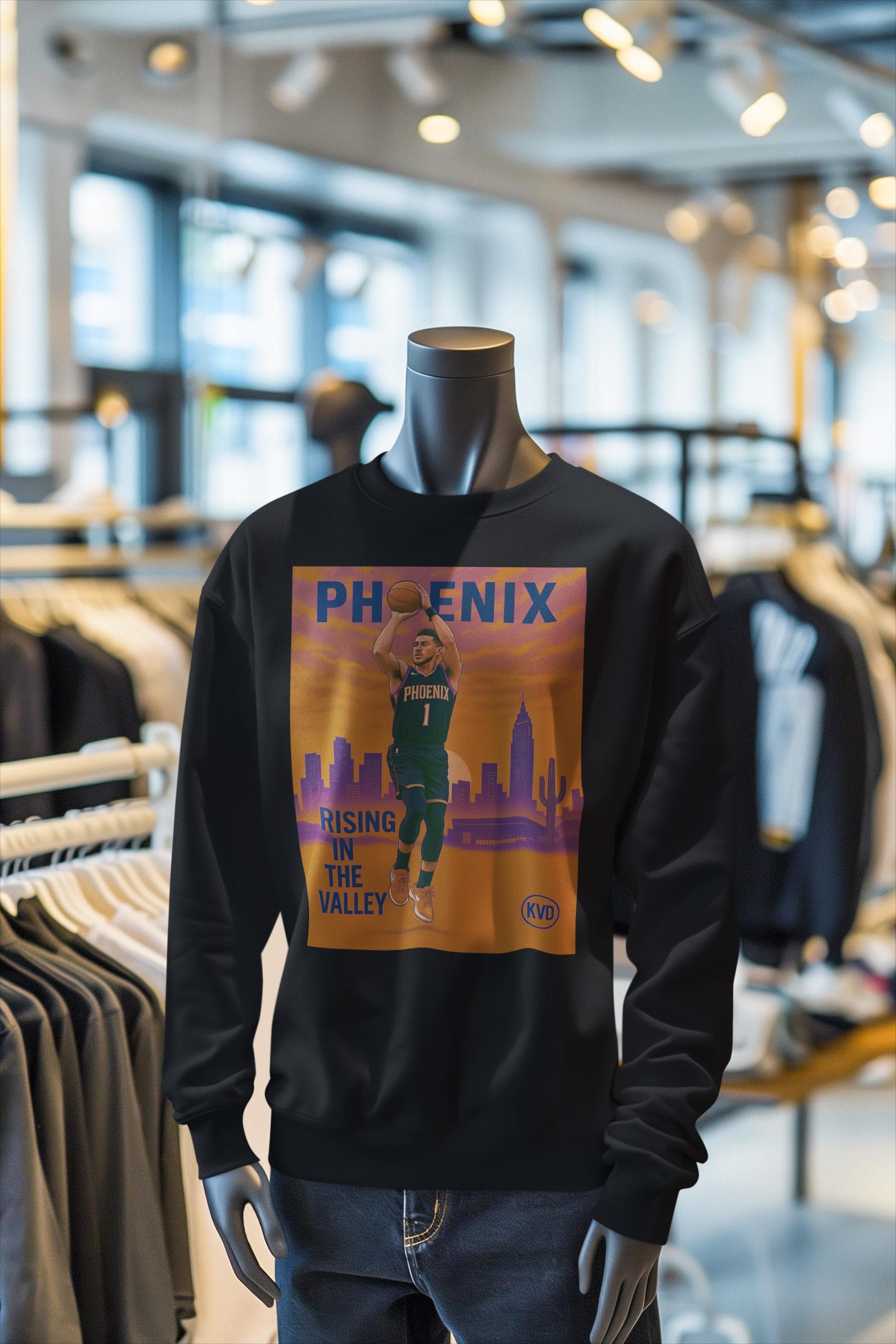 PHX – Phoenix Pro Basketball Sweatshirt “Rising in the Valley” | Pro Hoops Streetwear Crewneck | Sports Fan Gift | Modern Basketball Apparel