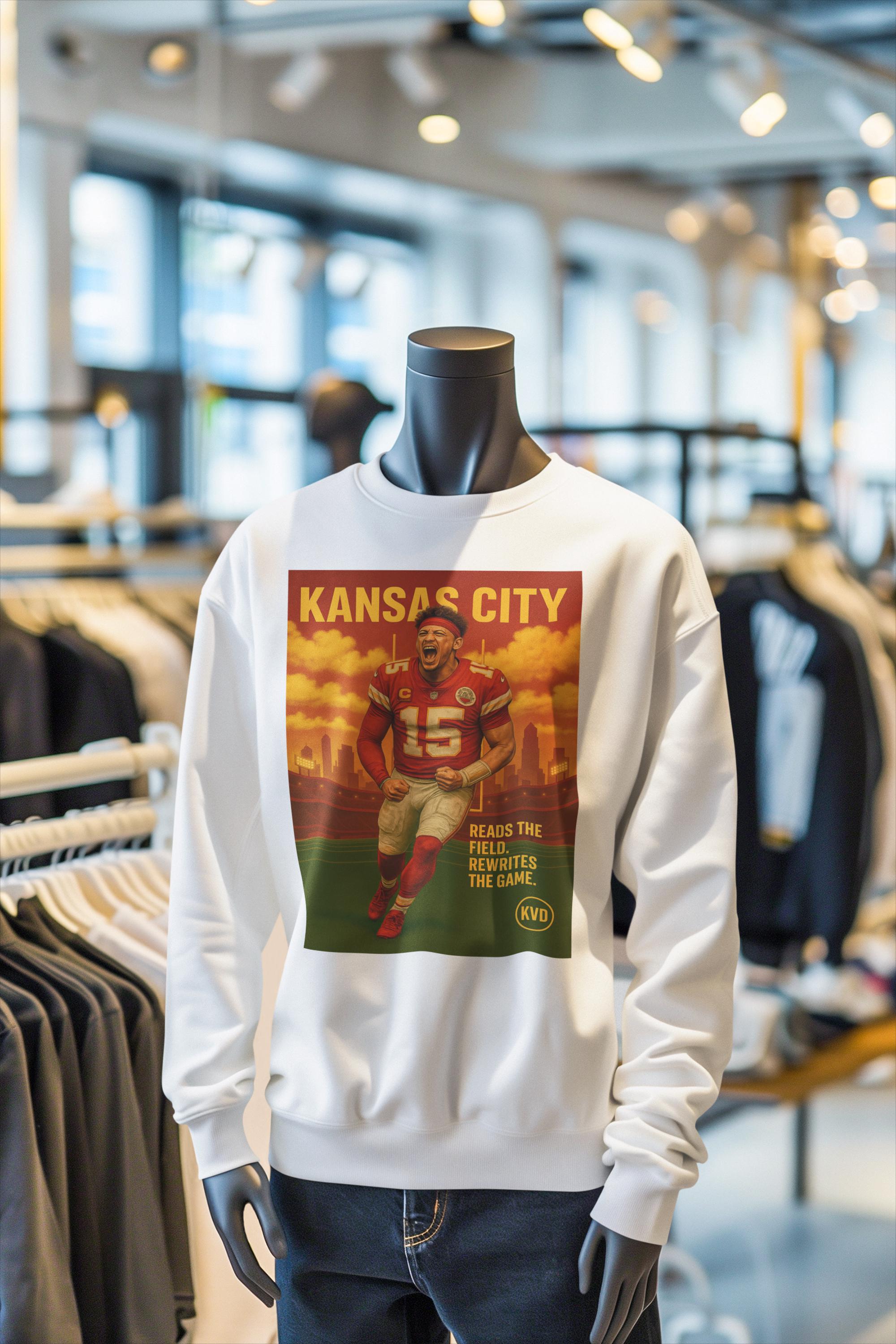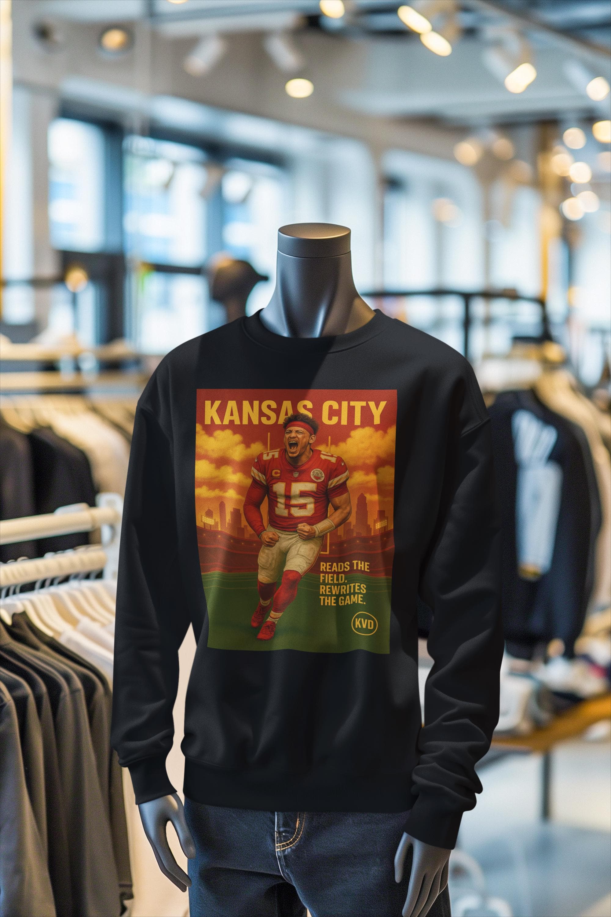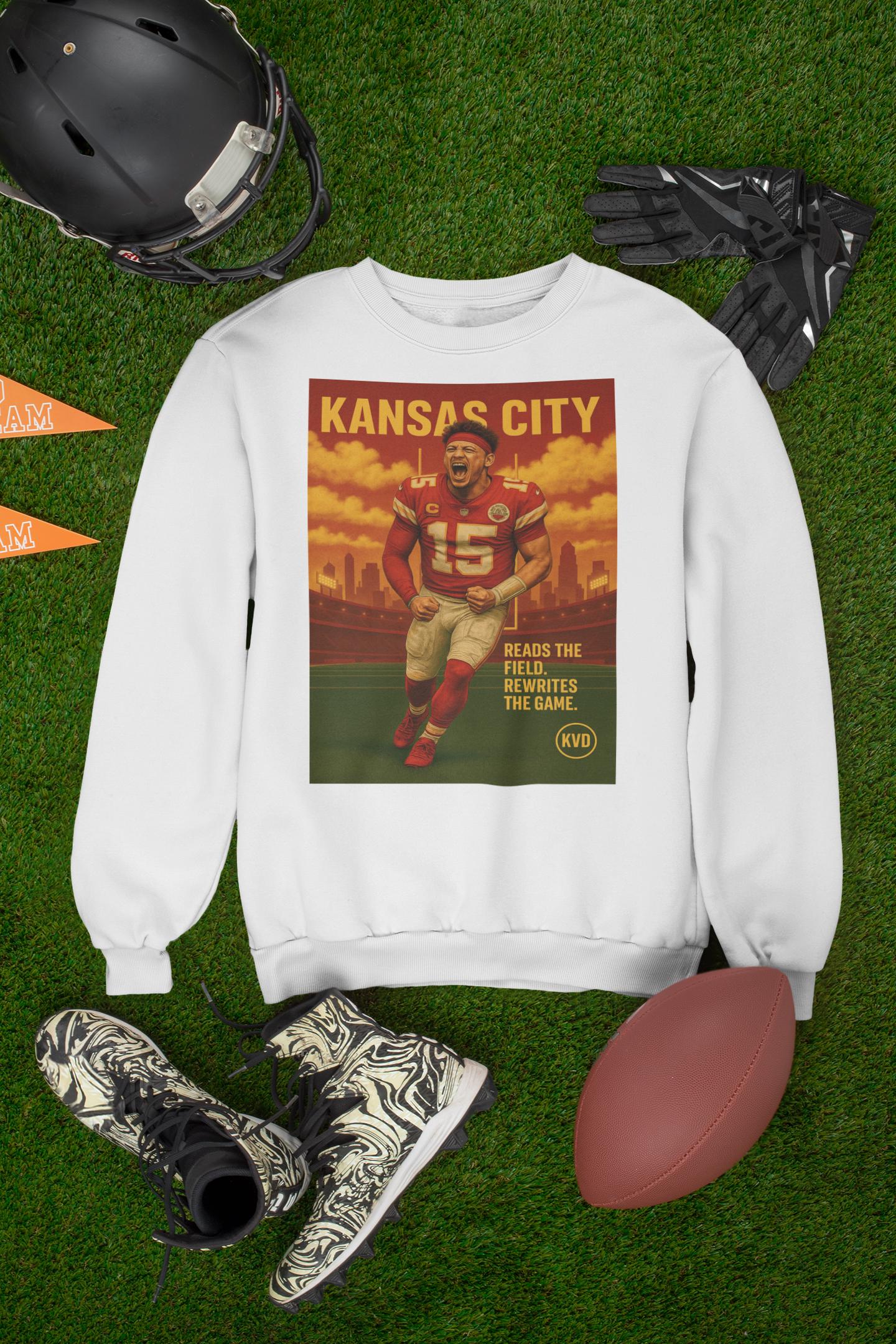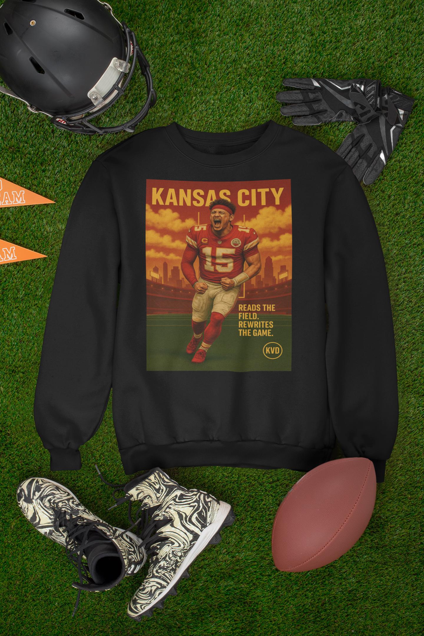Kansas City Football Sweatshirt – “Reads the Field. Rewrites the Game.” | Pro Football Graphic Crewneck, Sports Fan Gift