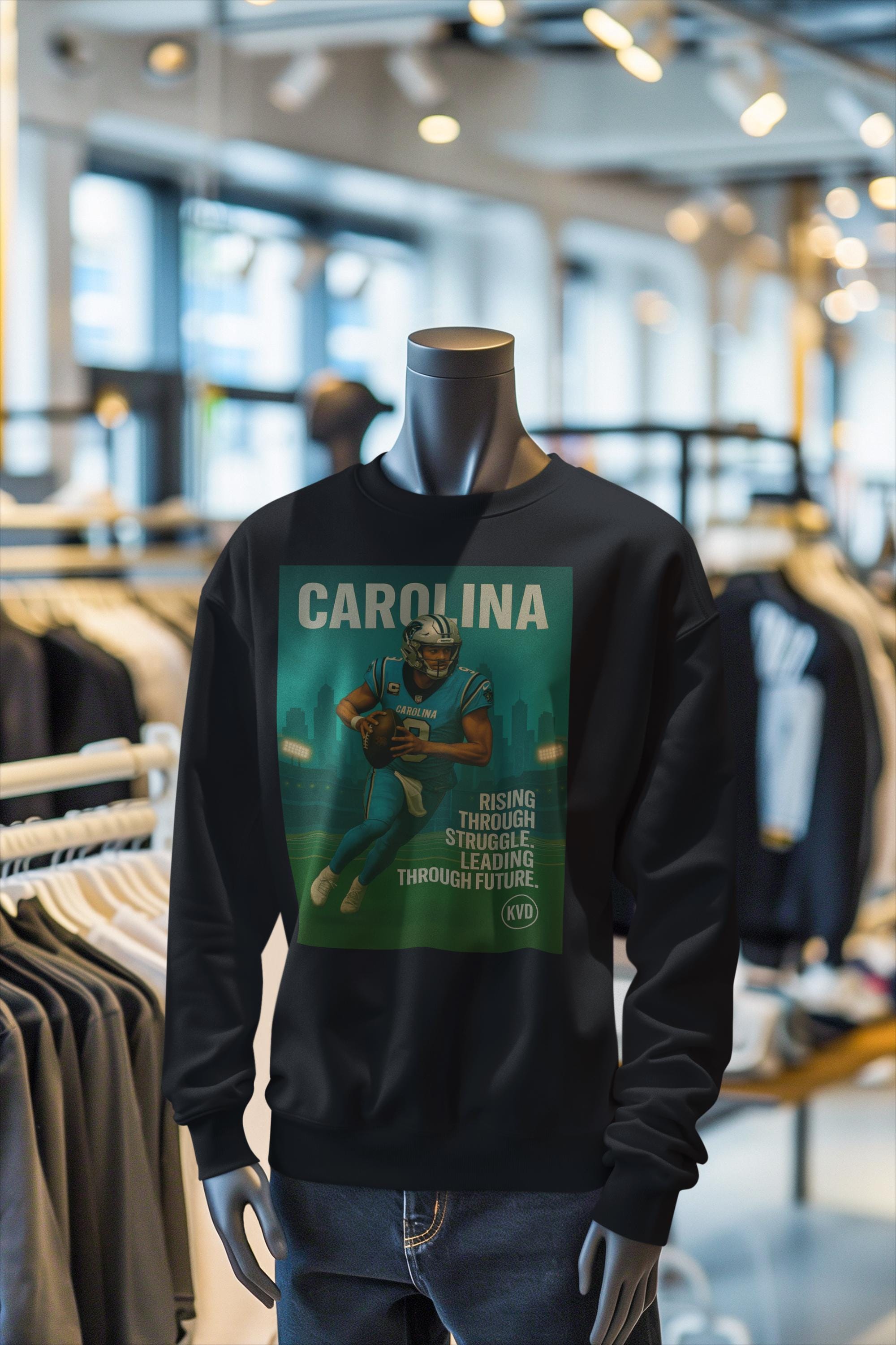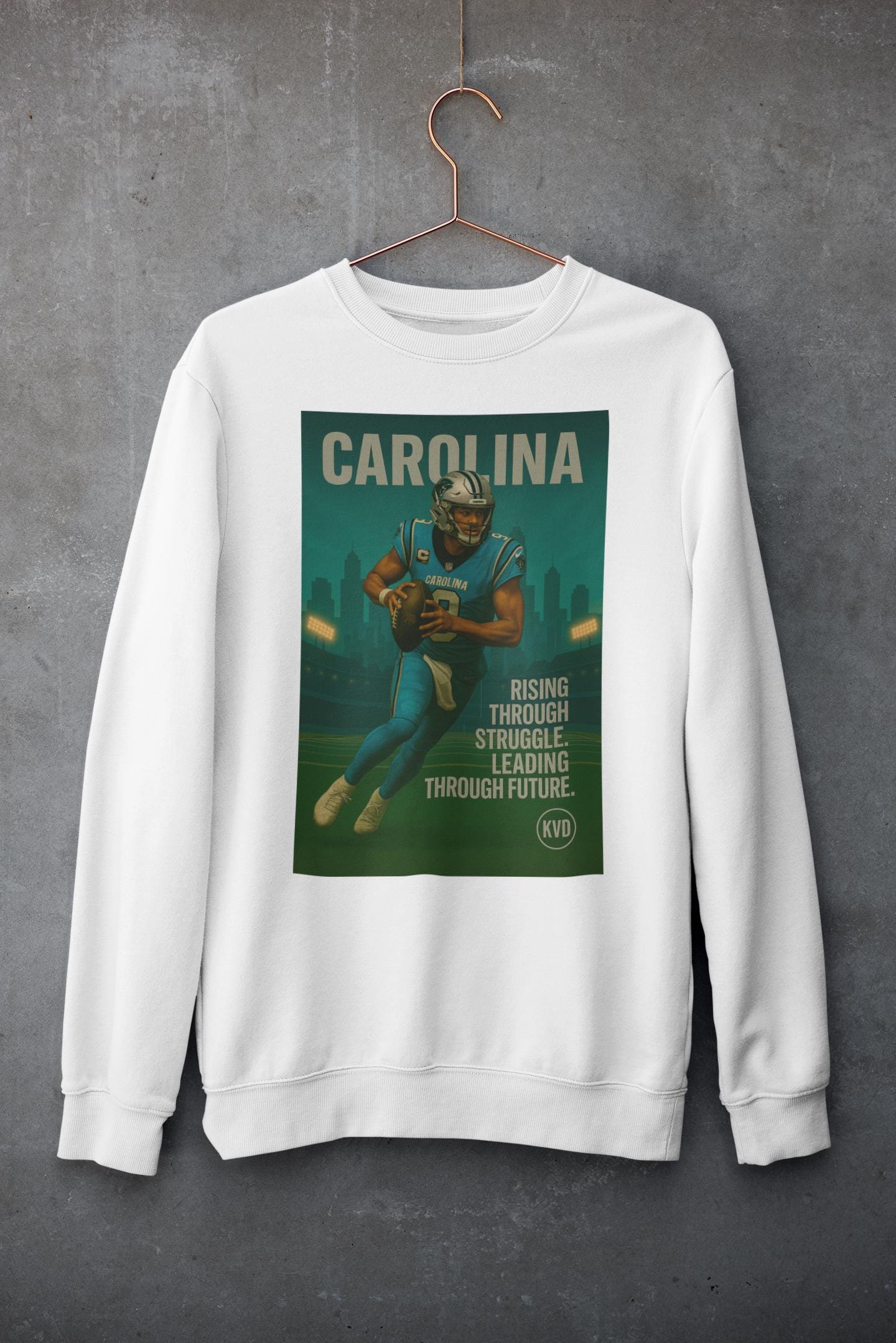Carolina Pro Football Sweatshirt – “Rising Through Struggle. Leading Through Future.” | Pro Football Graphic Crewneck, Sports Fan Gift