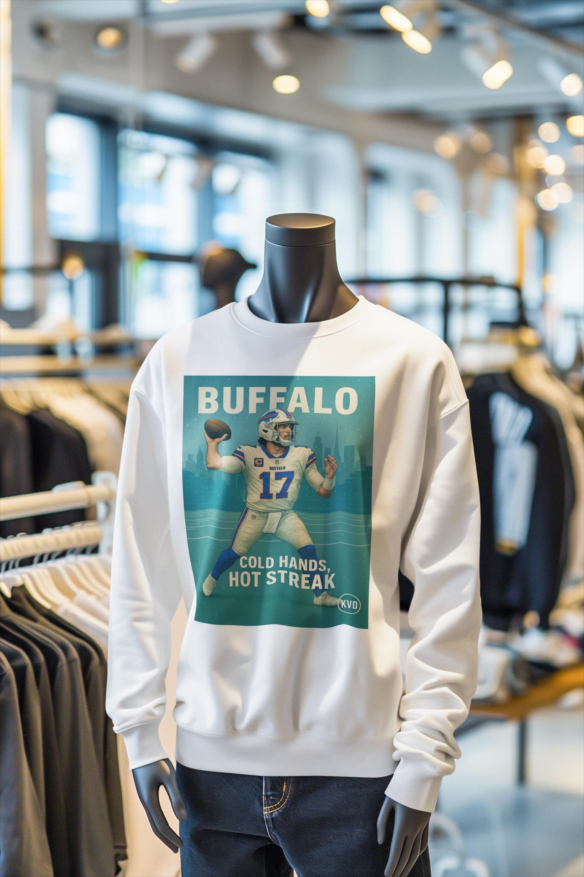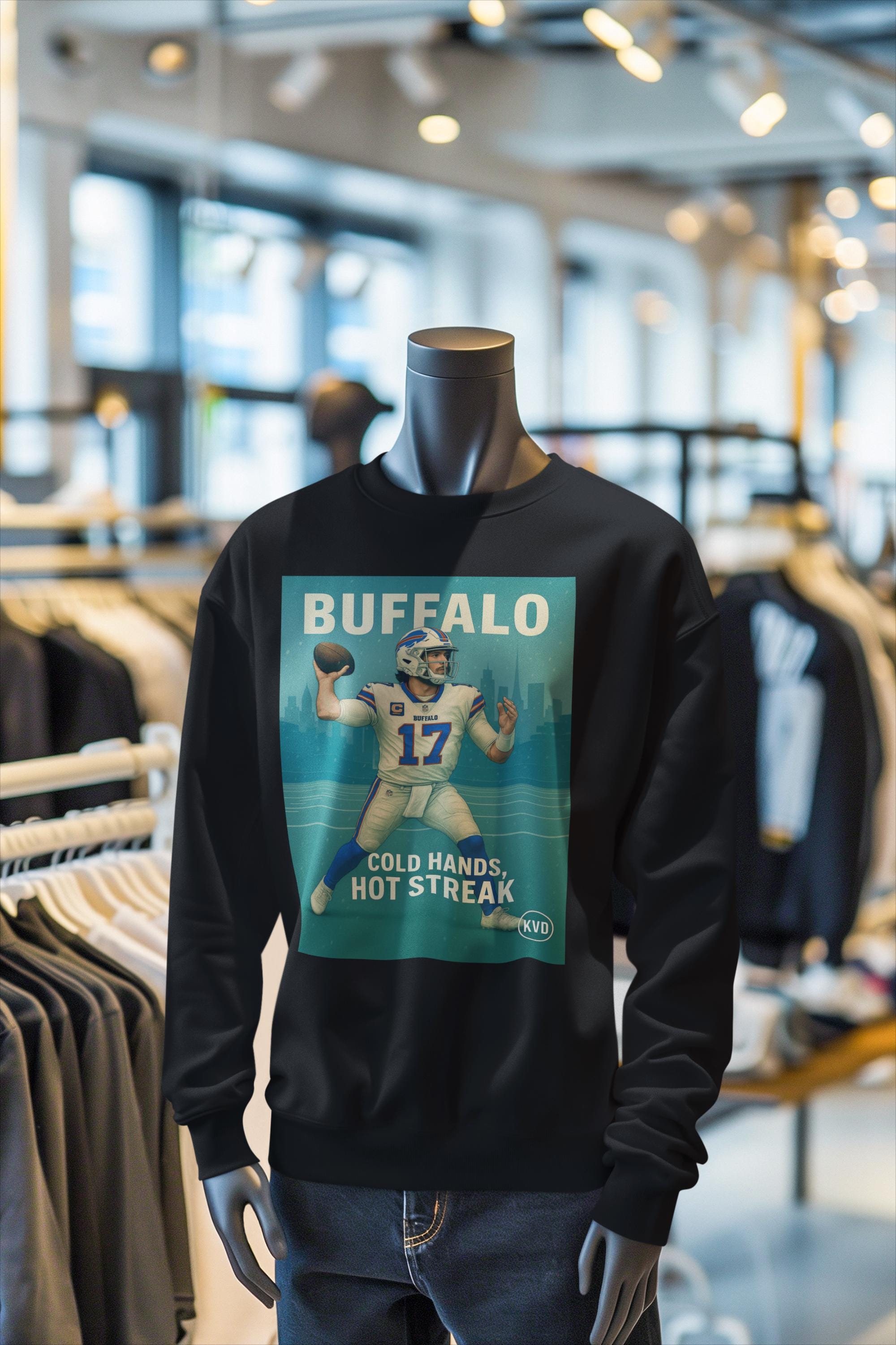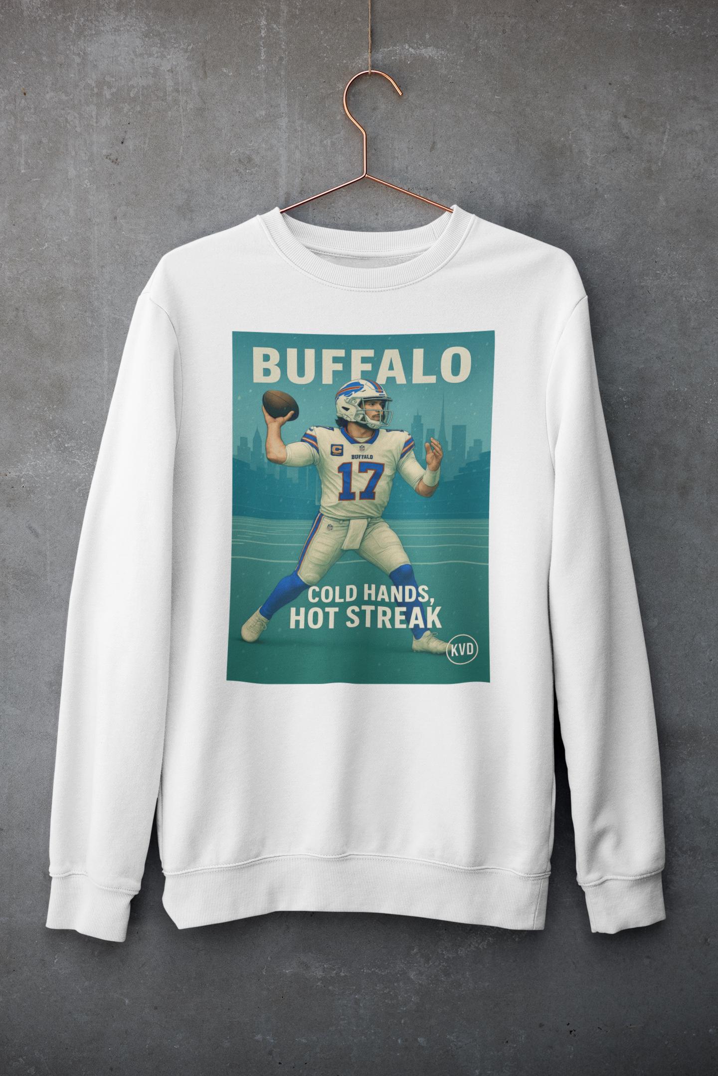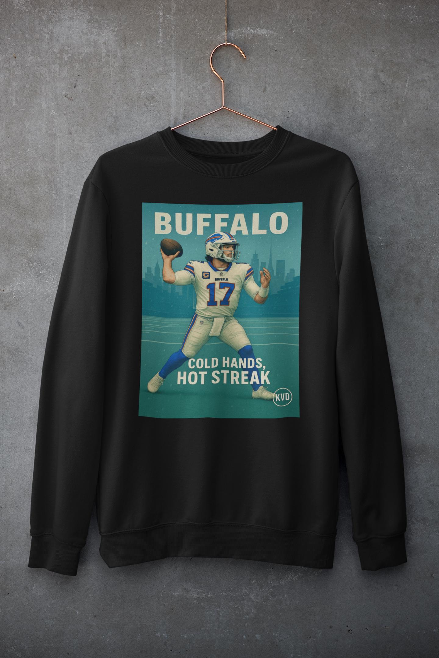 Buffalo Pro Football Sweatshirt – “Cold Hands, Hot Streak.” | Pro Football Graphic Crewneck, Sports Fan Gift