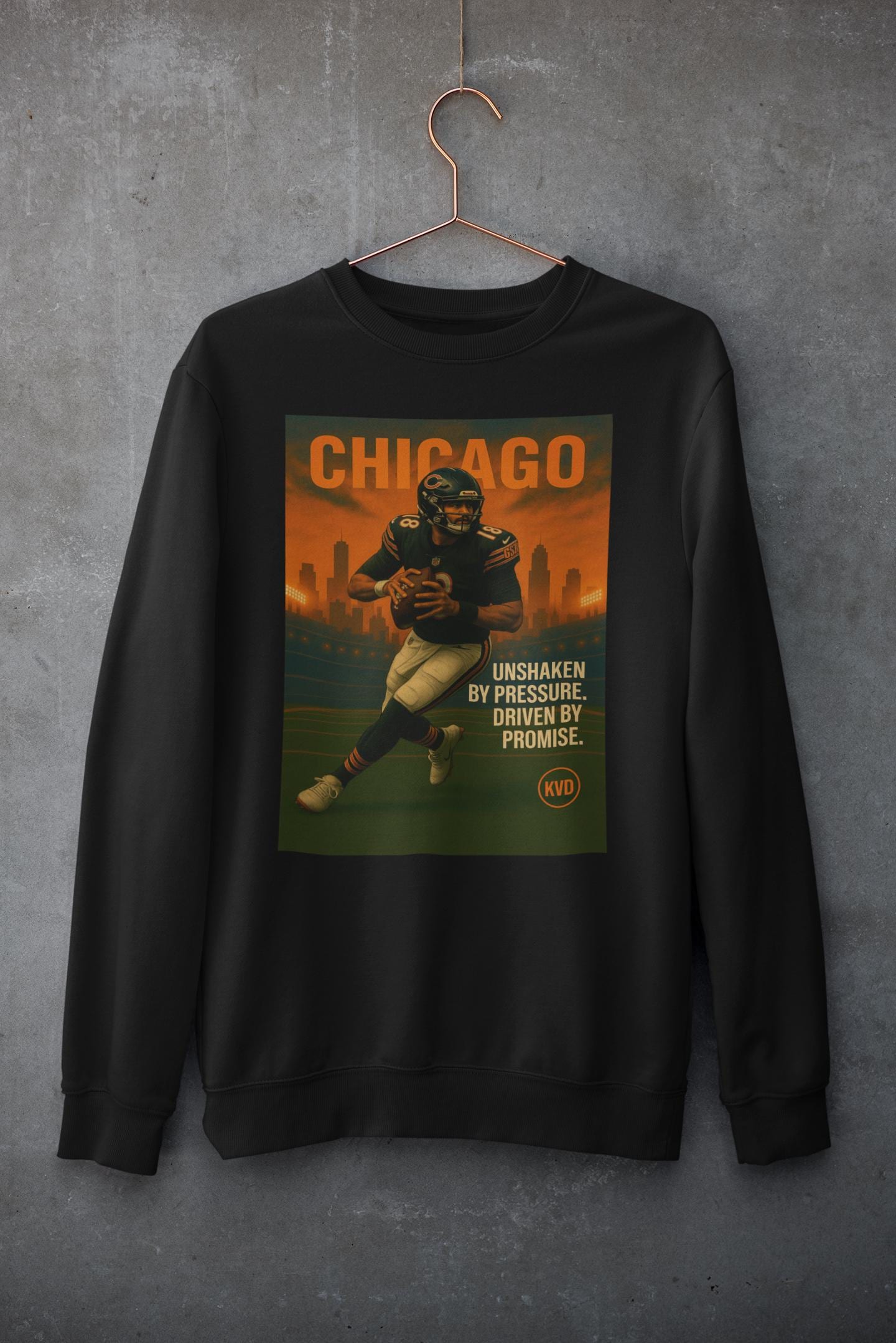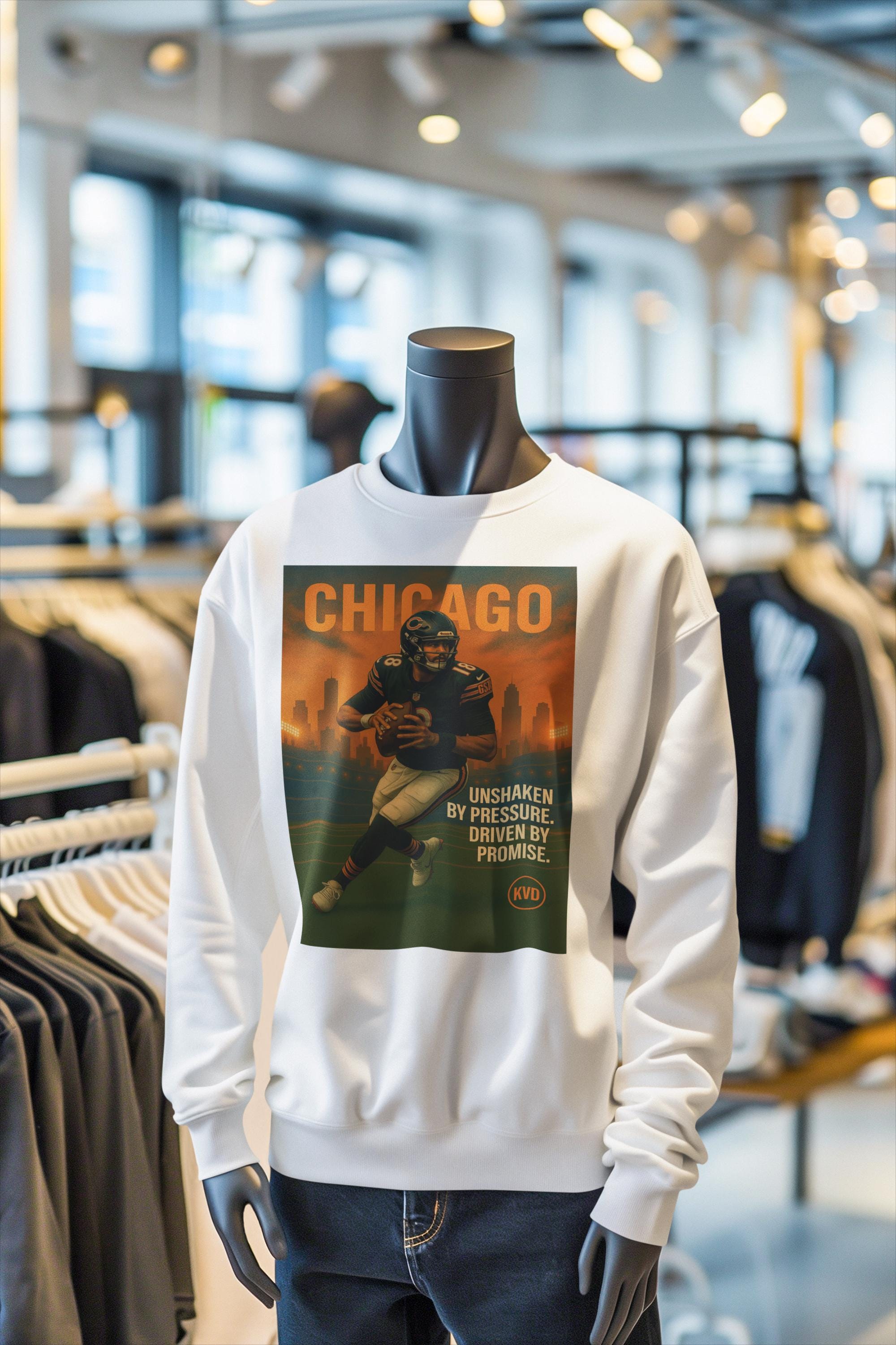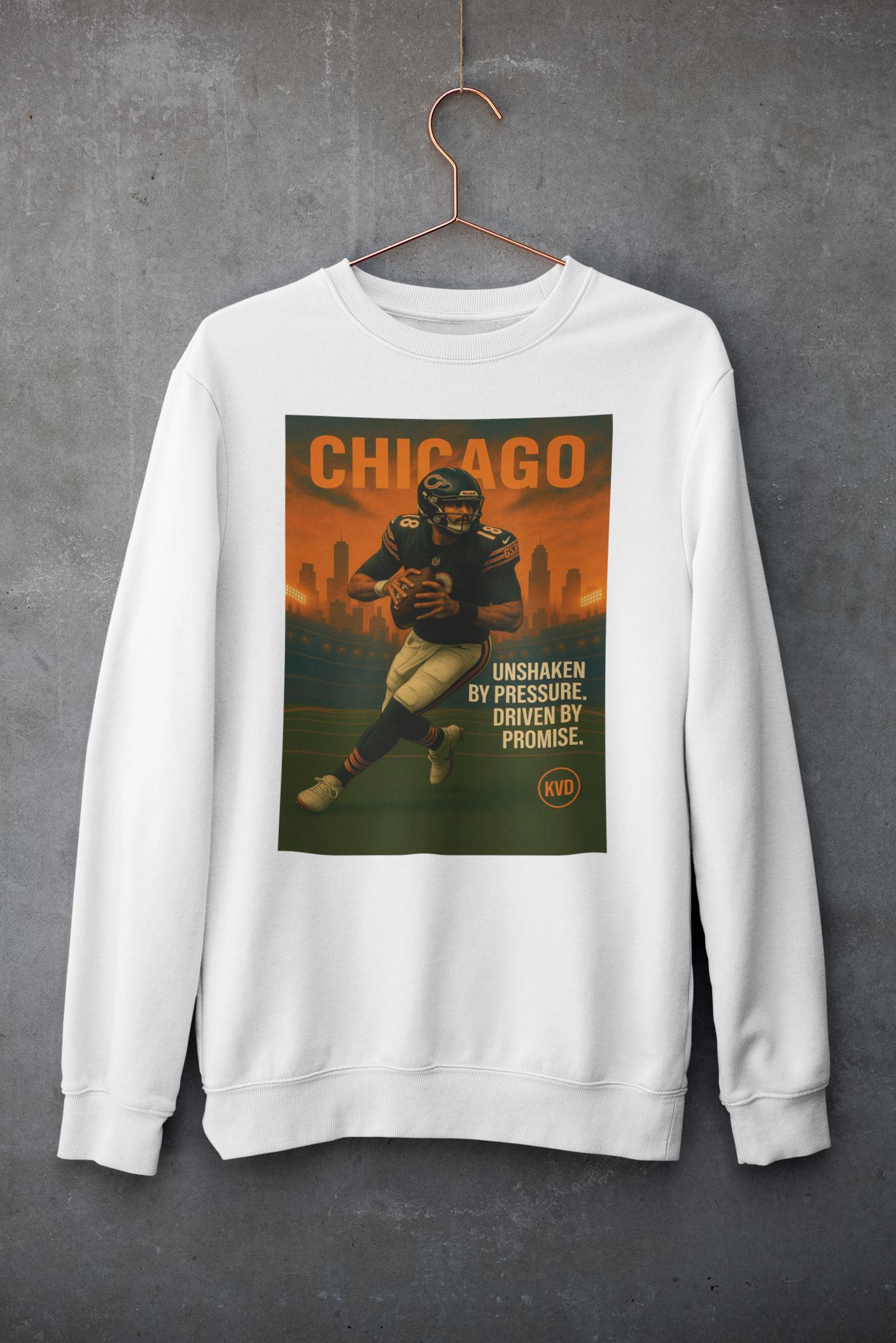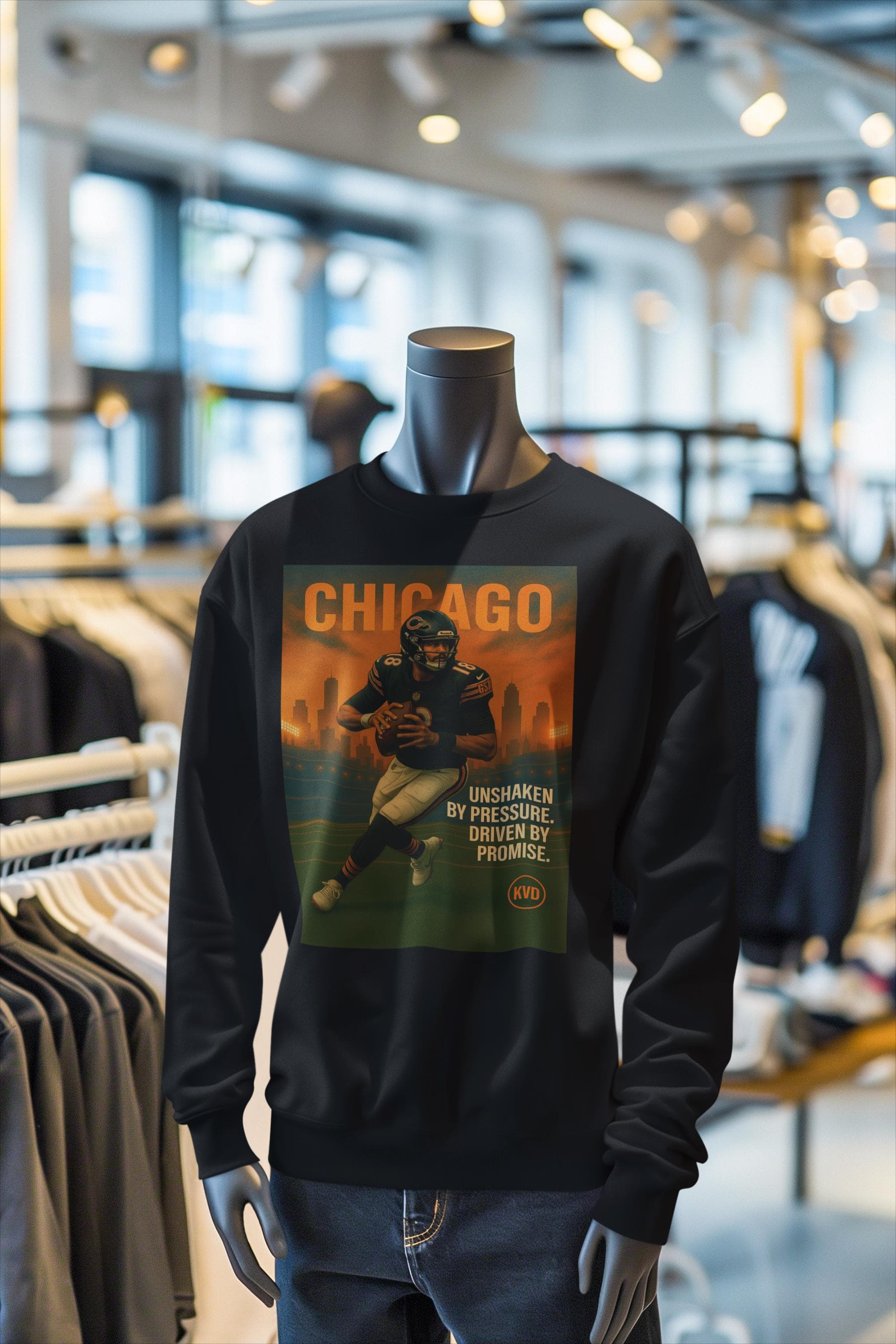 Chicago Pro Football Sweatshirt – “Unshaken By Pressure. Driven By Promise.” | Pro Football Graphic Crewneck, Sports Fan Gift