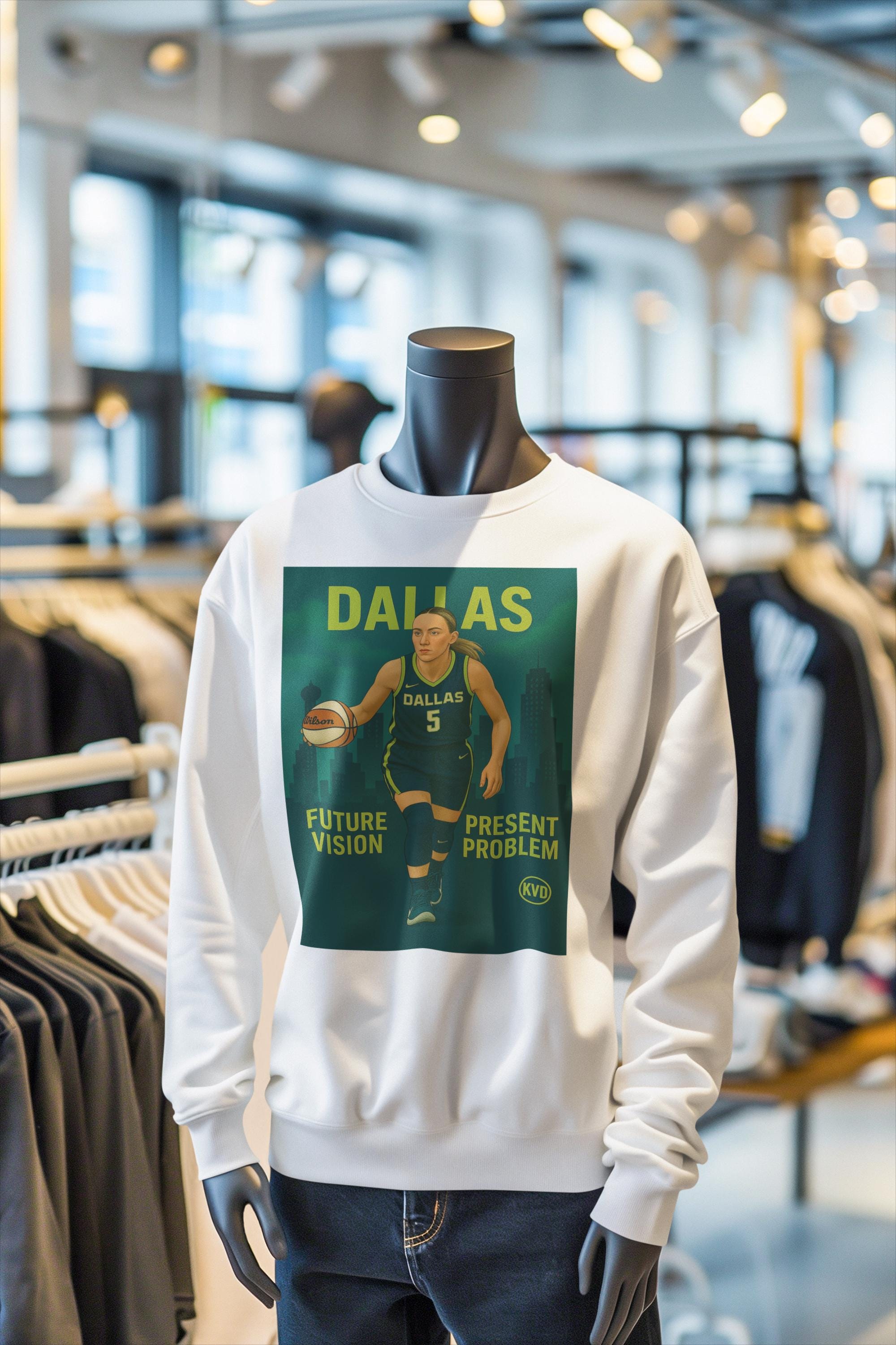 DAL – Dallas Women’s Pro Basketball Unisex Sweatshirt “Future Vision. Present Problem.” | Paige Bueckers Inspired Shirt | Sports Fan Gift
