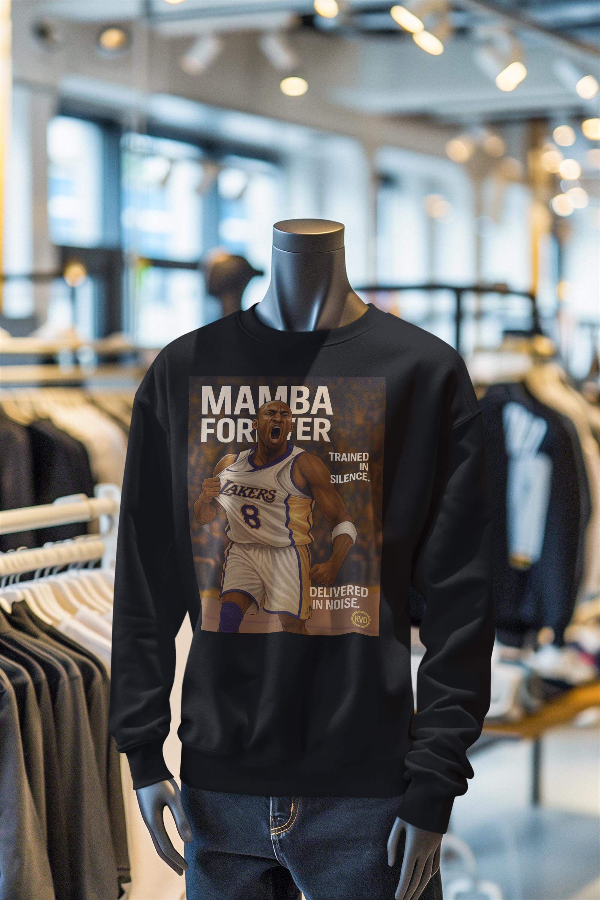 Mamba Forever Unisex Sweatshirt – “Trained in Silence. Delivered in Noise.” – Kobe Bryant Inspired Shirt • Sports Fan Gift